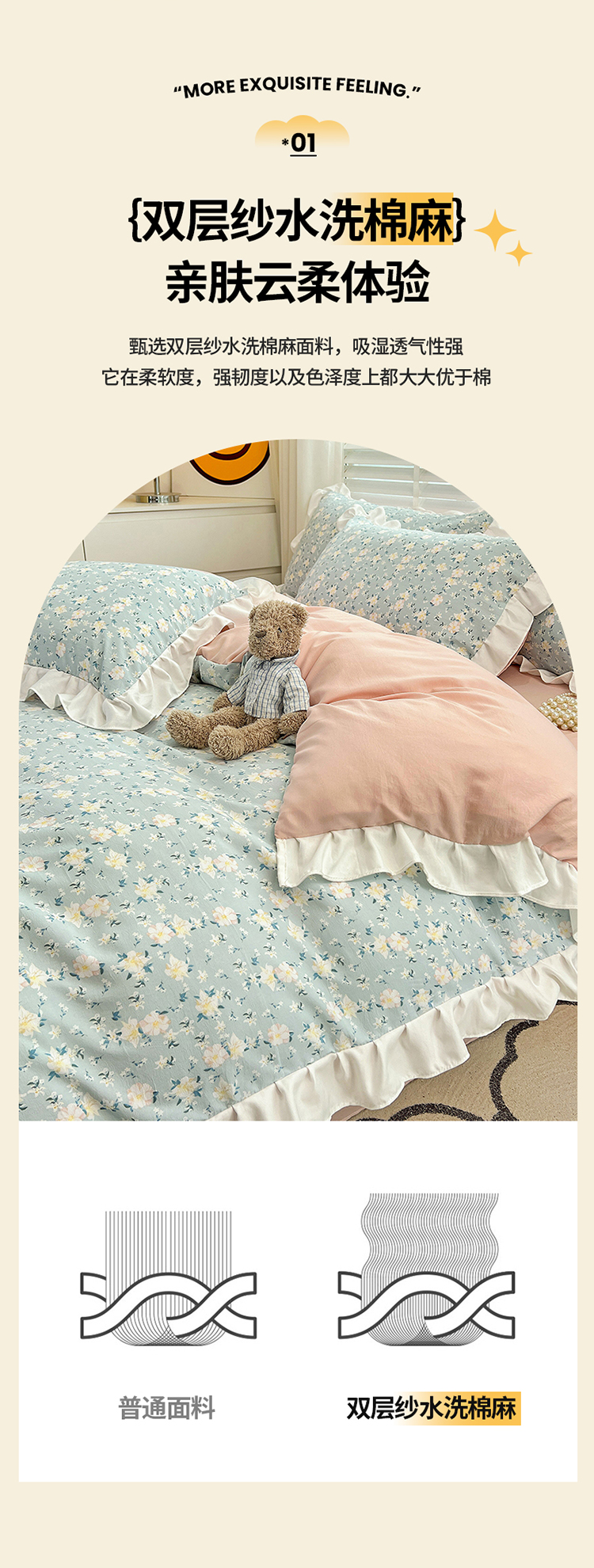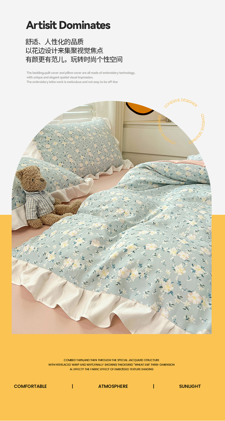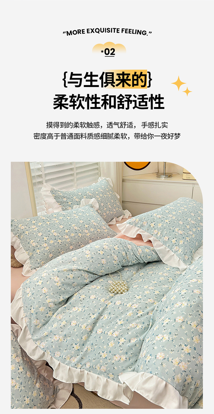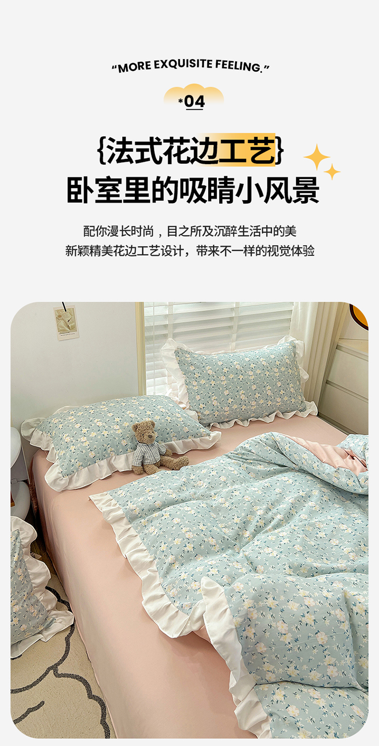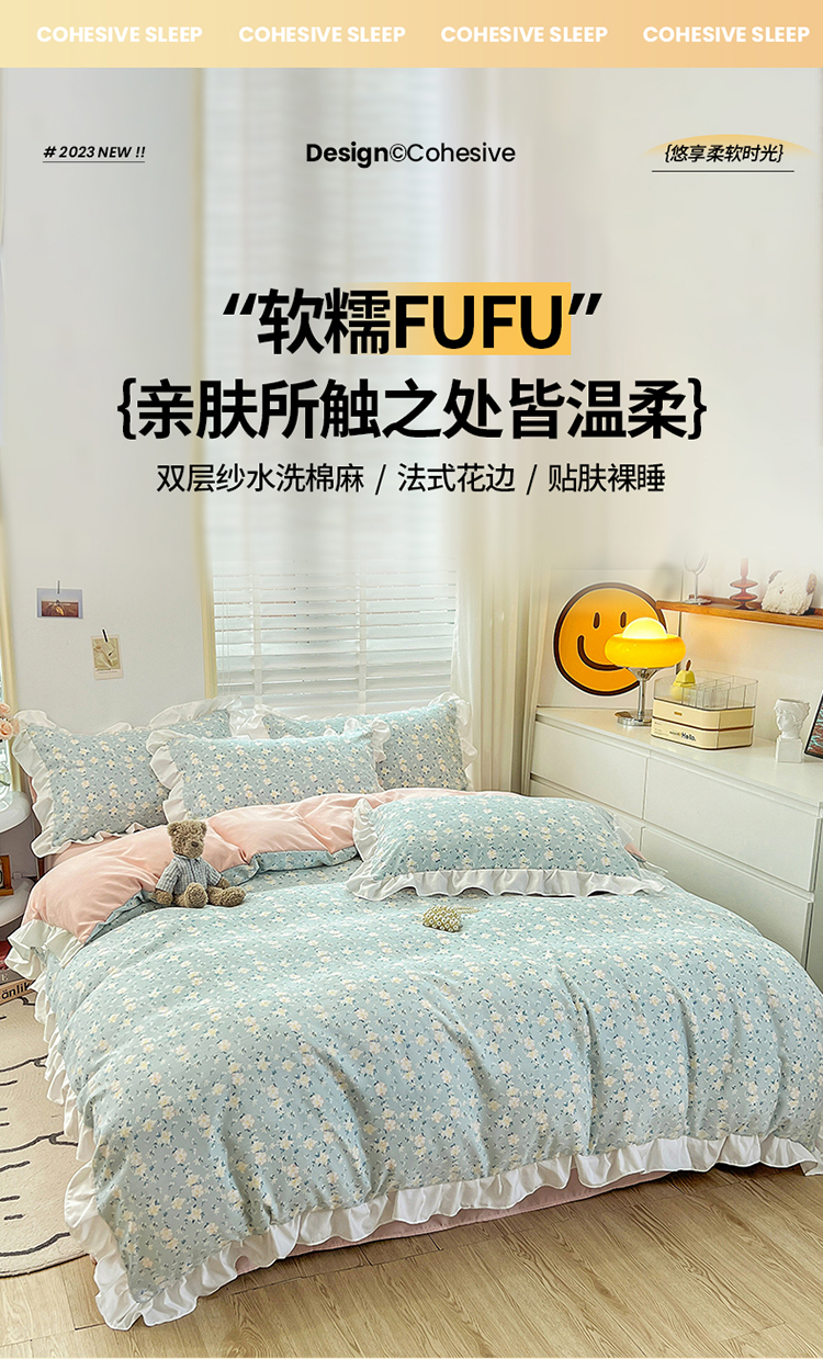 商品名称:澳梵 2023新款【怦然心动】系列-水洗棉麻双层纱四件套 朵拉