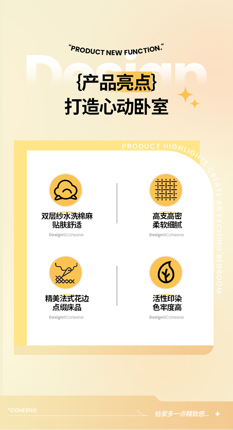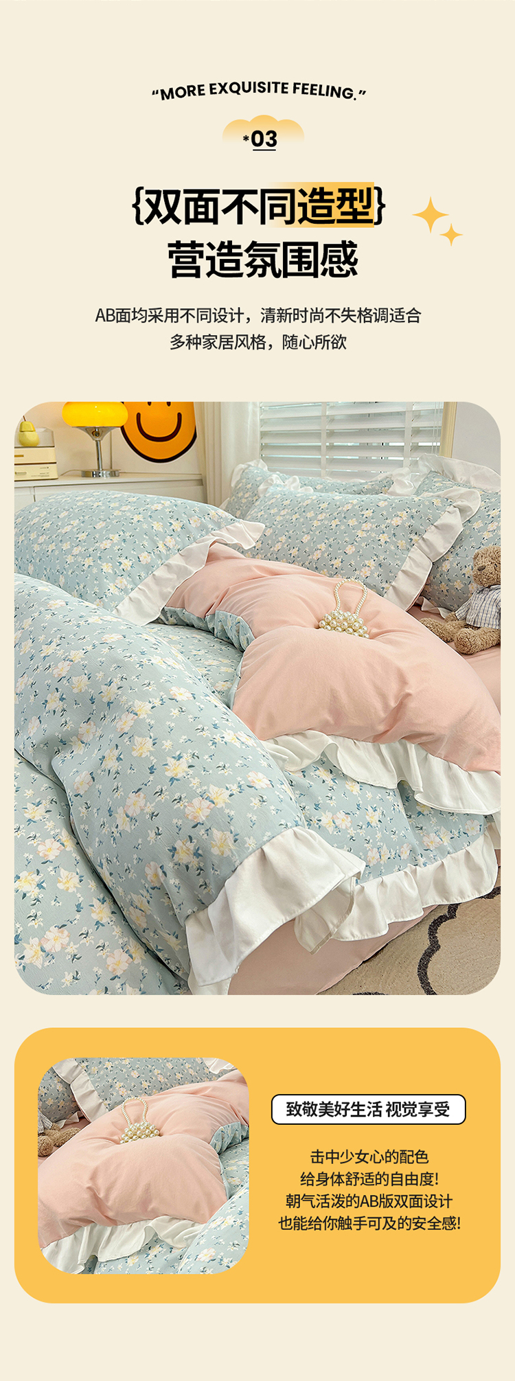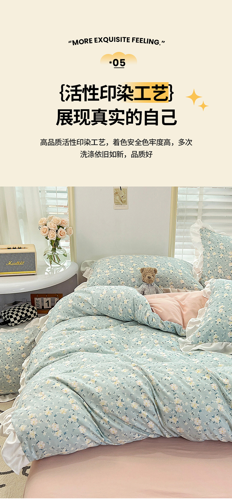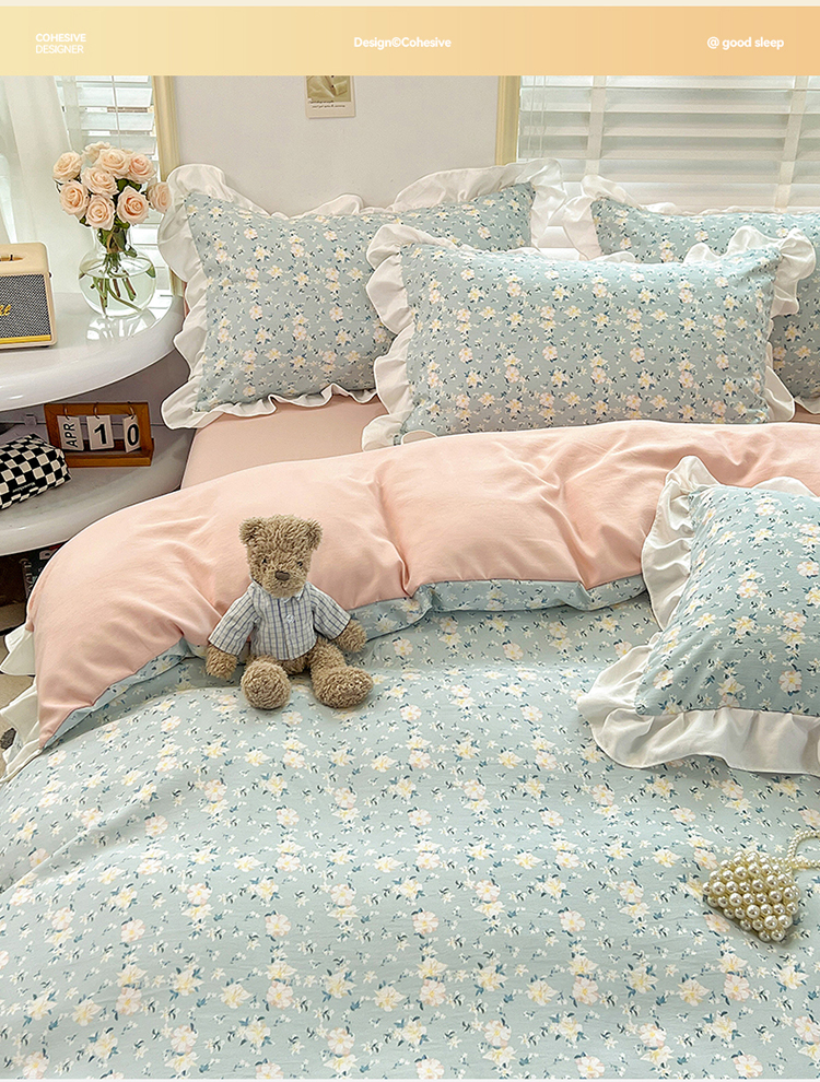 商品名称:澳梵 2023新款【怦然心动】系列-水洗棉麻双层纱四件套 朵拉