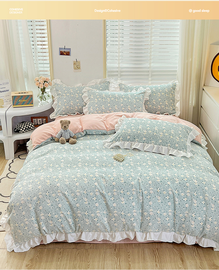 (总)澳梵家居 2025新款雕花牛奶绒韩版四件套-竹影柔柔,竹影柔柔,灰绿蝴蝶结,灰绿樱桃,卡其叶影,绿色叶影,漫调花语-粉,漫调花语-绿,玫瑰蝶语-蓝,玫瑰蝶语-绿,奶芙蝴蝶结,糖霜玫瑰-卡其