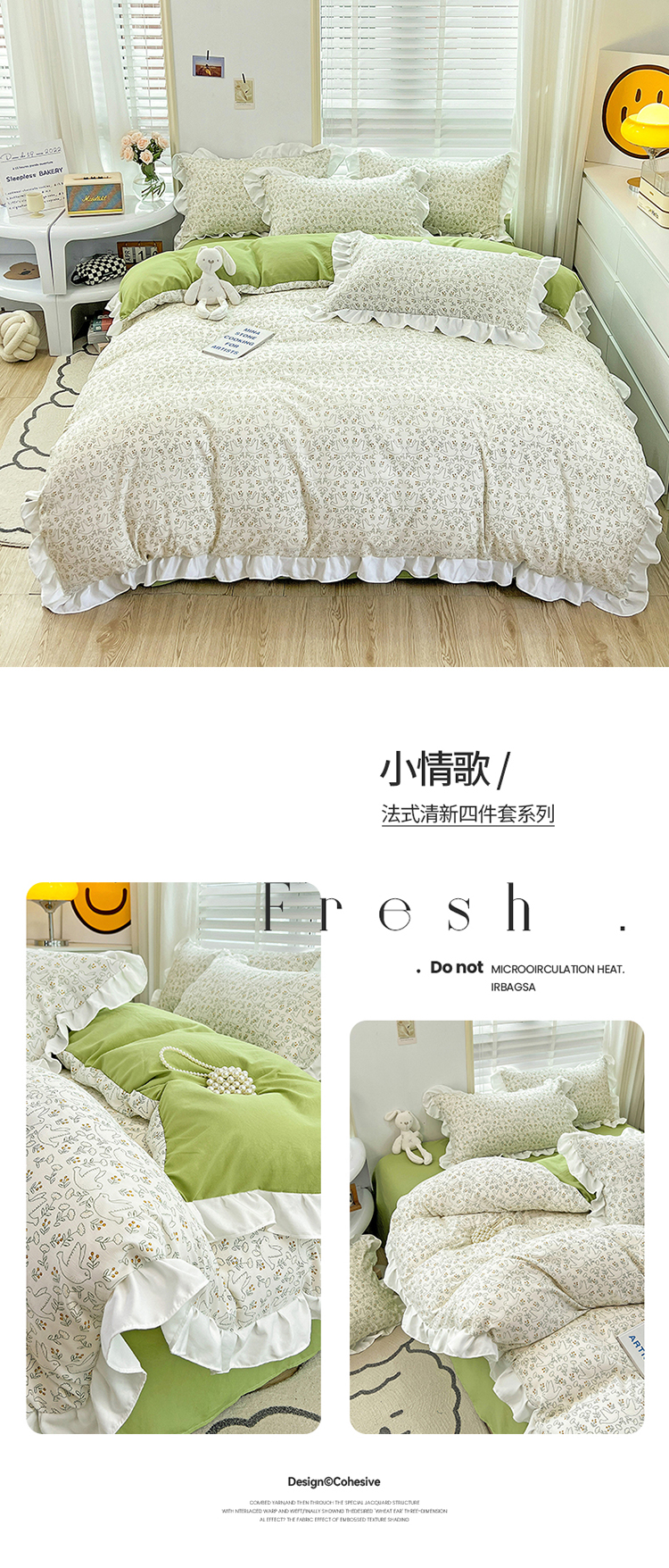 商品名称:澳梵 2023新款【怦然心动】系列-水洗棉麻双层纱四件套 小情歌