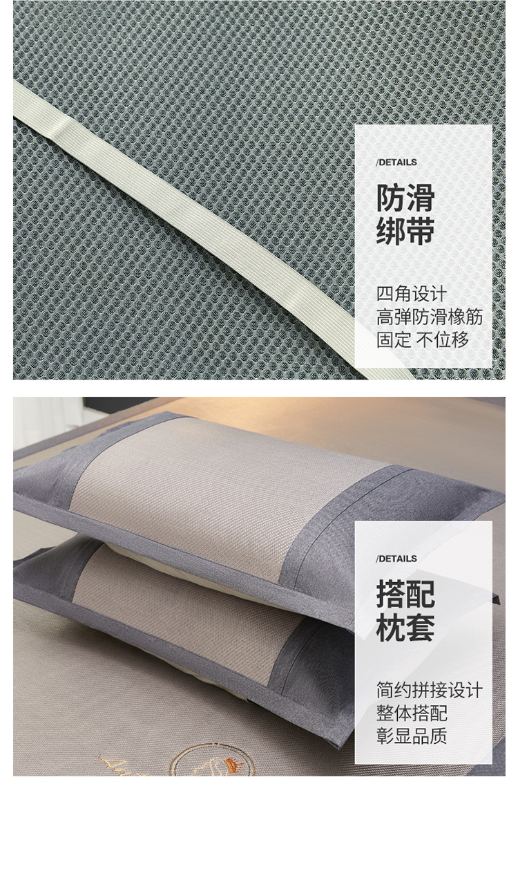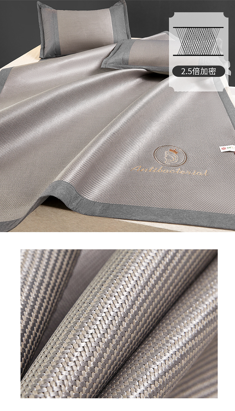 伊被源2023新款女王款刺绣冰藤席1200D可机洗可折叠冰丝席-戴菲 戴菲 月光银