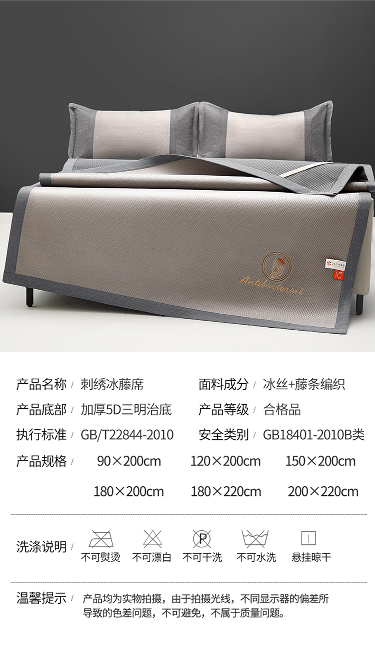 商品名称:伊被源2023新款女王款刺绣冰藤席1200D可机洗可折叠冰丝席-戴菲 戴菲 月光银