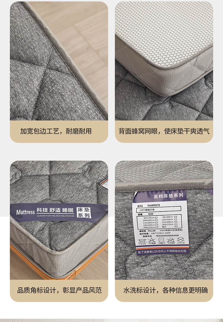 当前位置: 91家纺网 > 商品网购 > 床垫/床褥/床护垫 > 普通床垫 > 欣罗兰 2023新款针织棉立体纯色床垫系列-大床款 棉花-灰