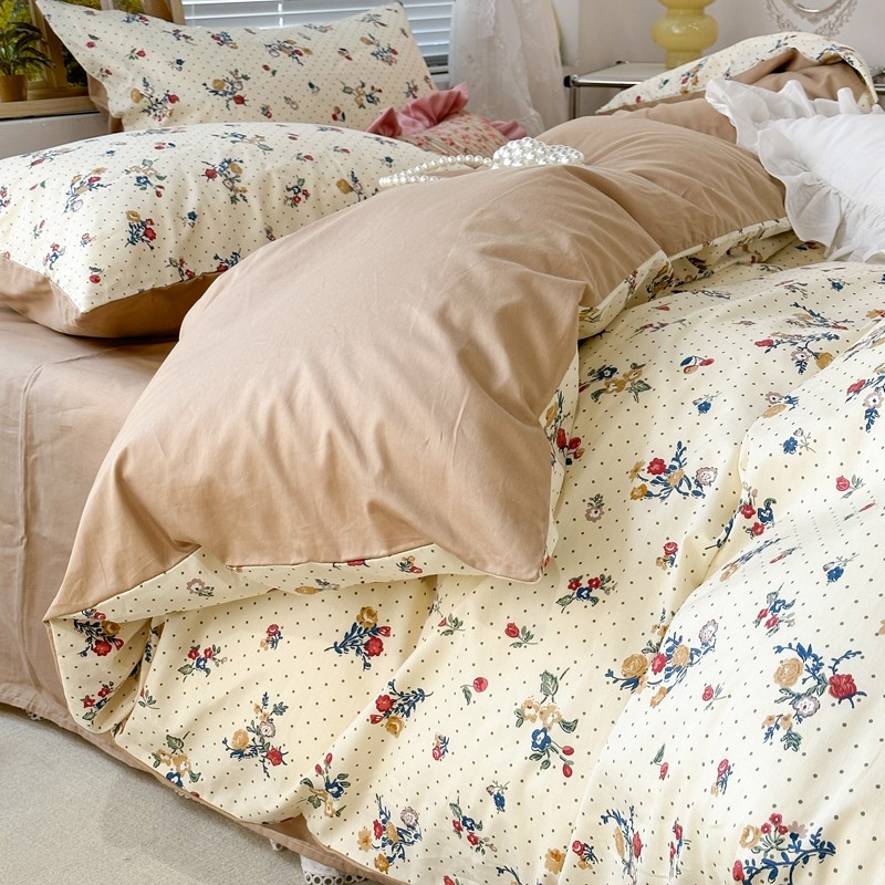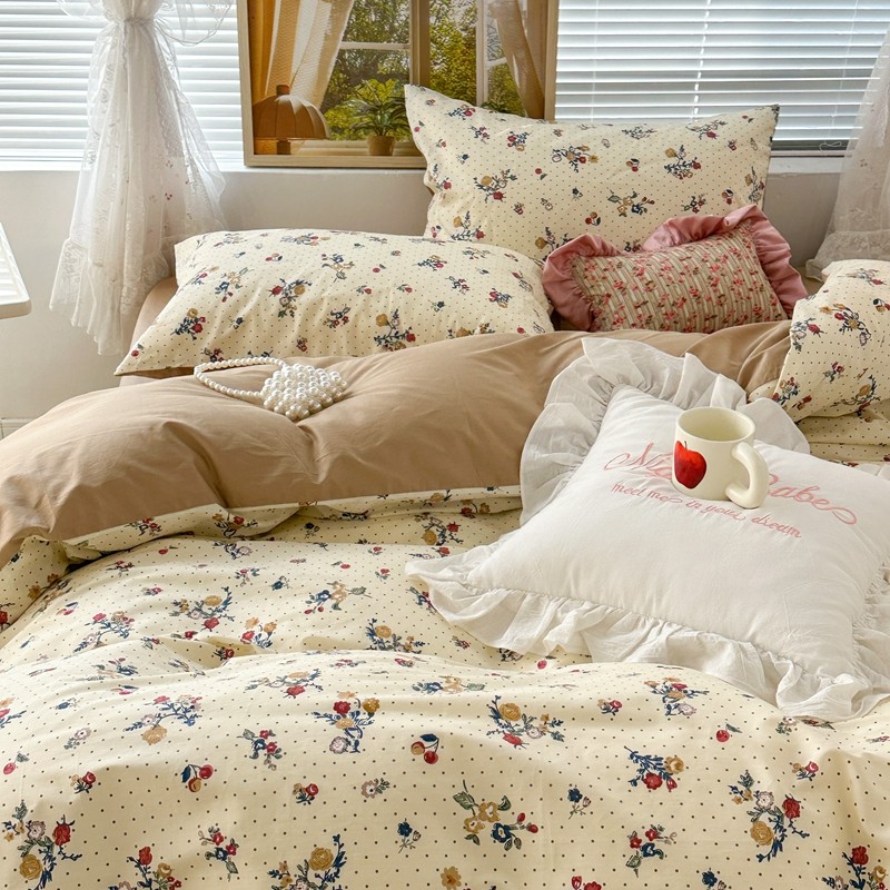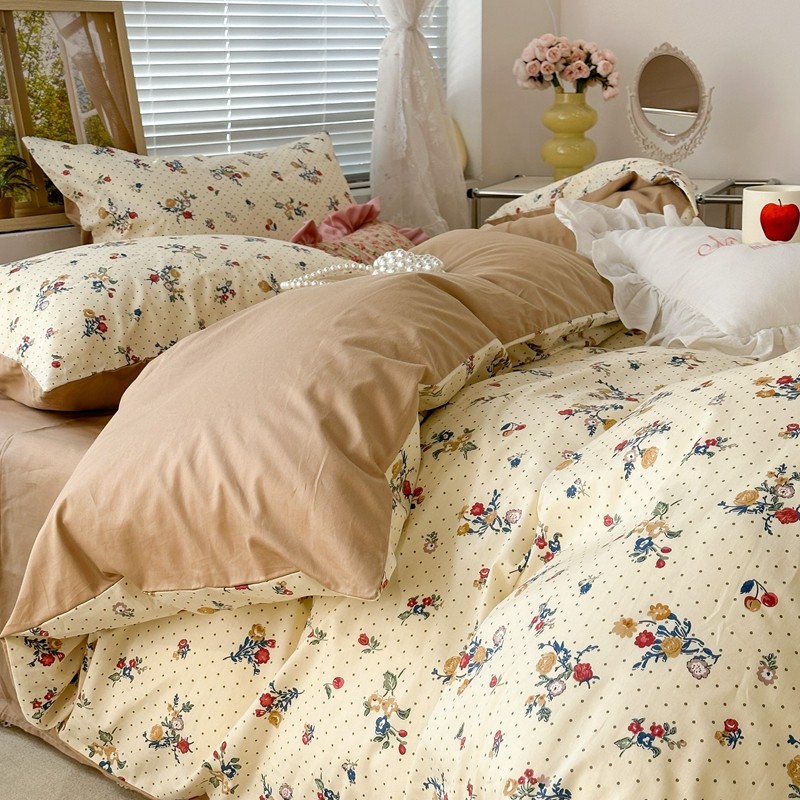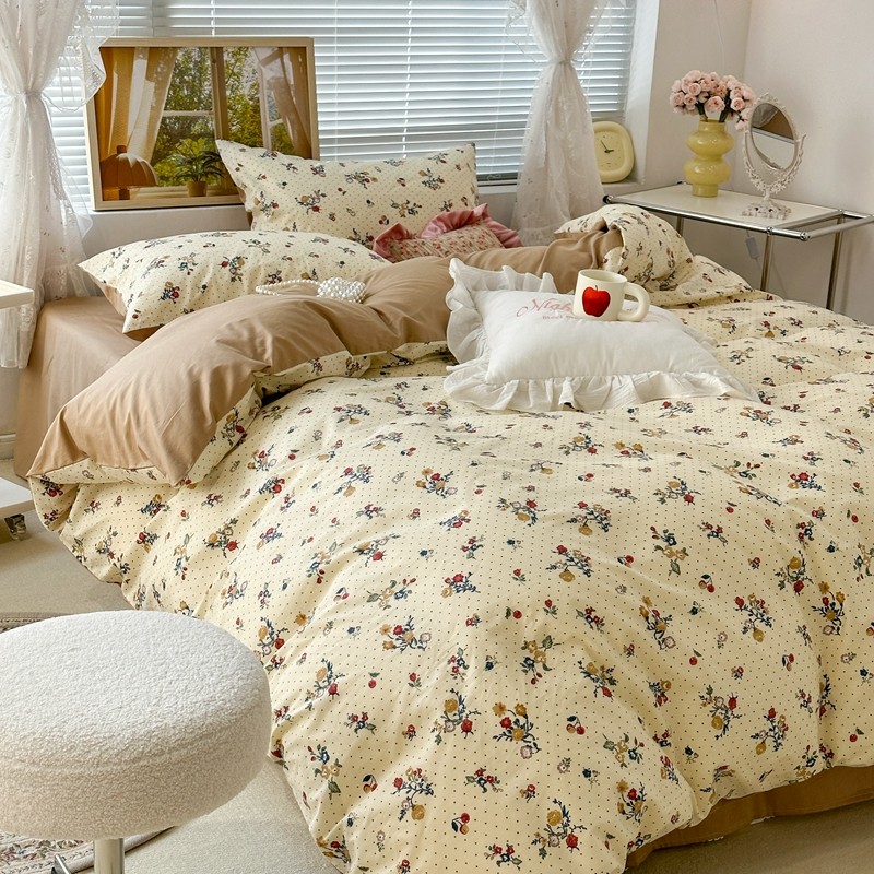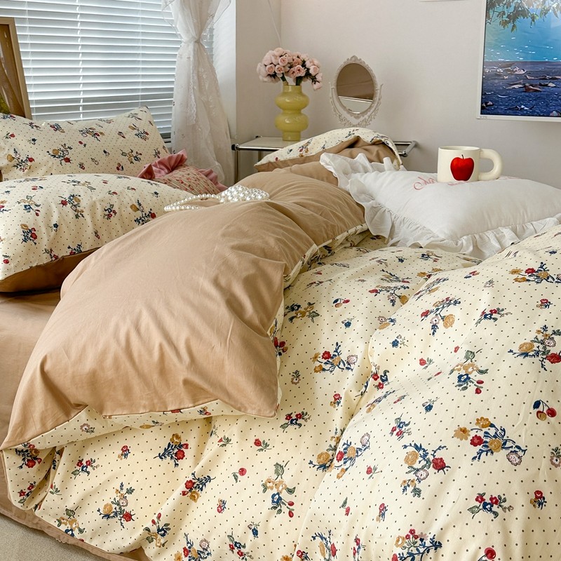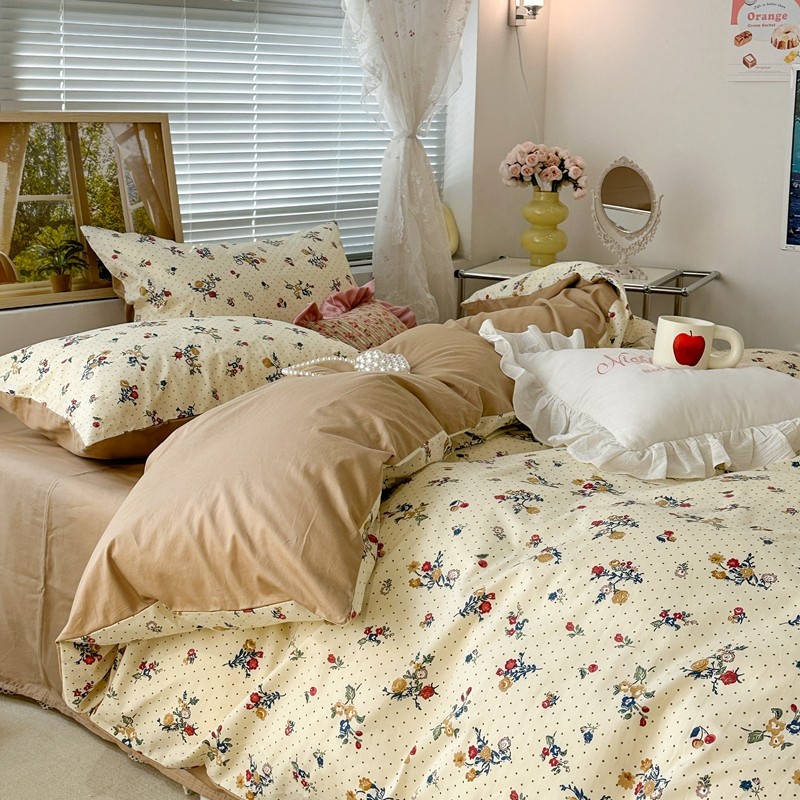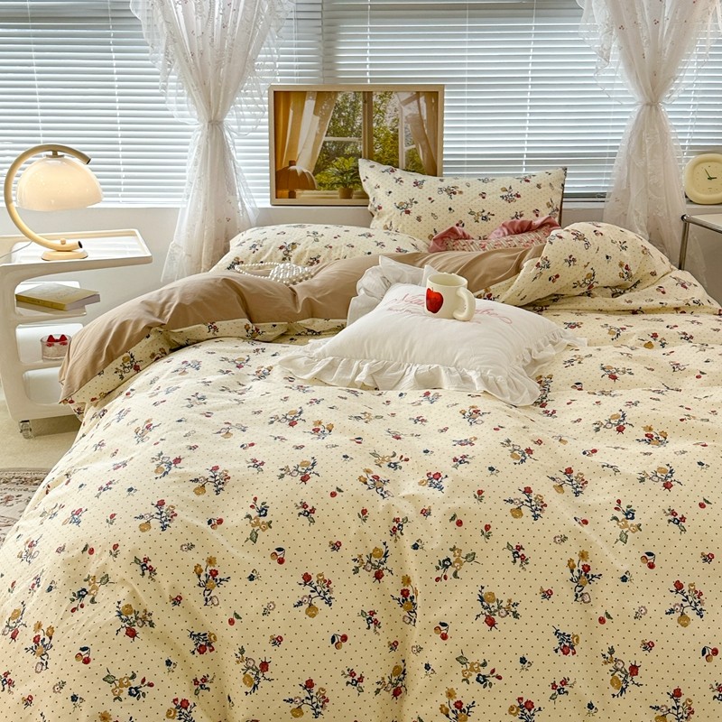 (总)昔可家纺 2023新款全棉小花系列四件套,柏林少女,小小的樱桃,紫色葡萄