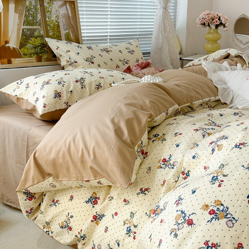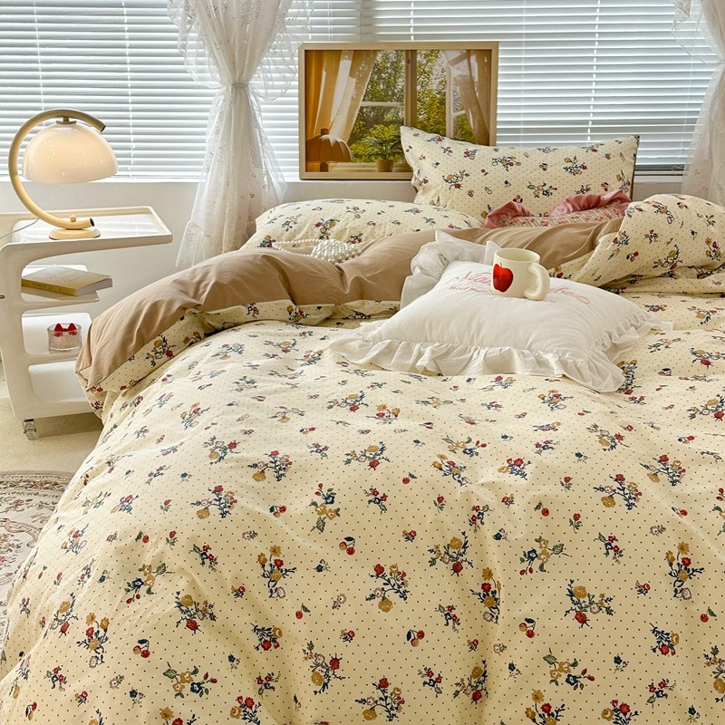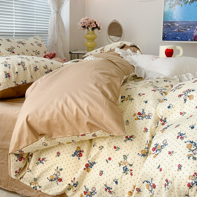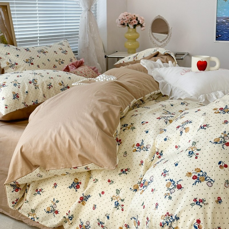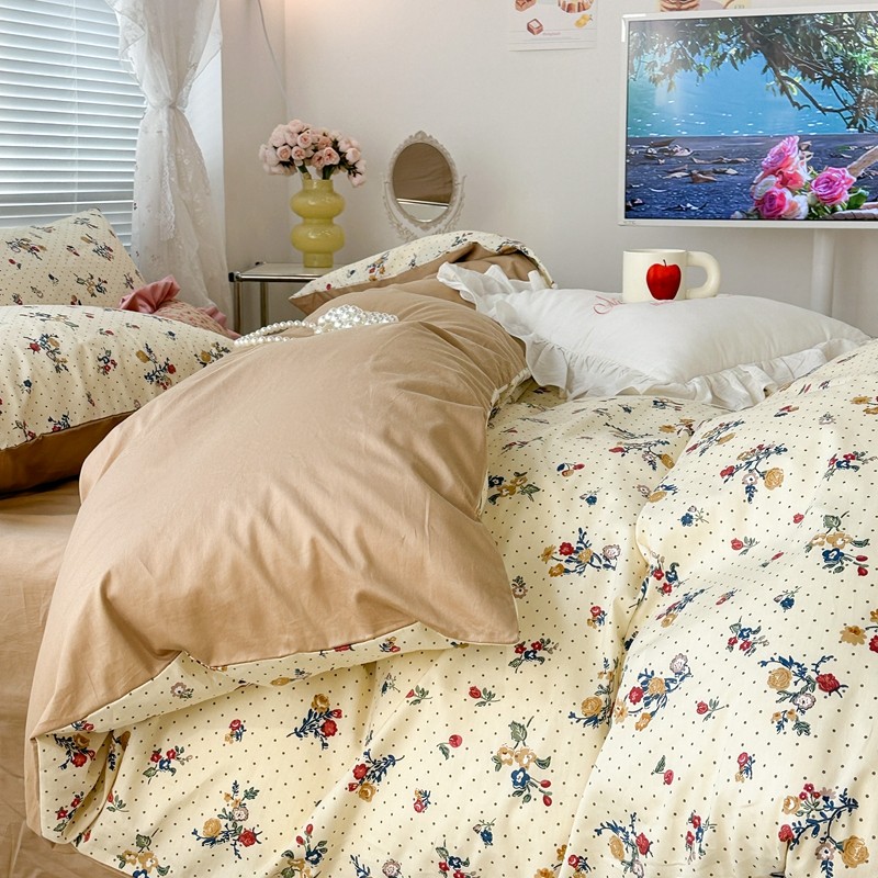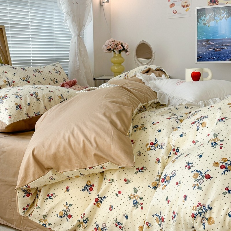 (总)昔可家纺 2023新款全棉小花系列四件套,柏林少女,小小的樱桃,紫色葡萄