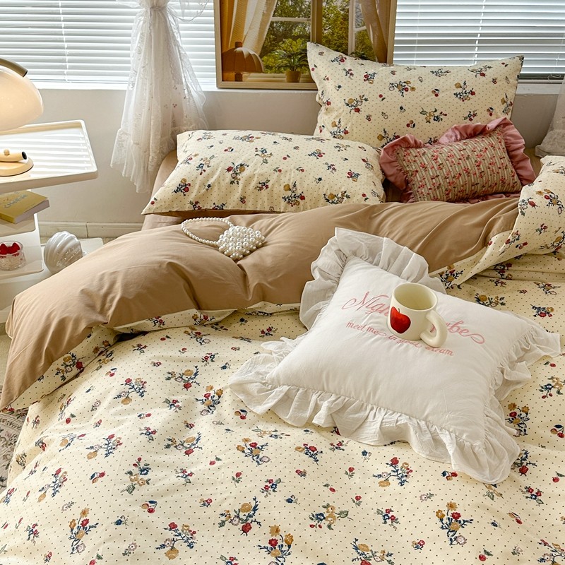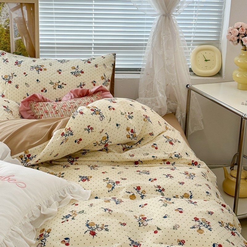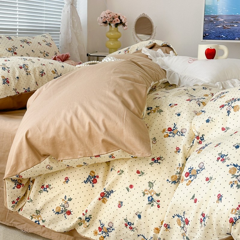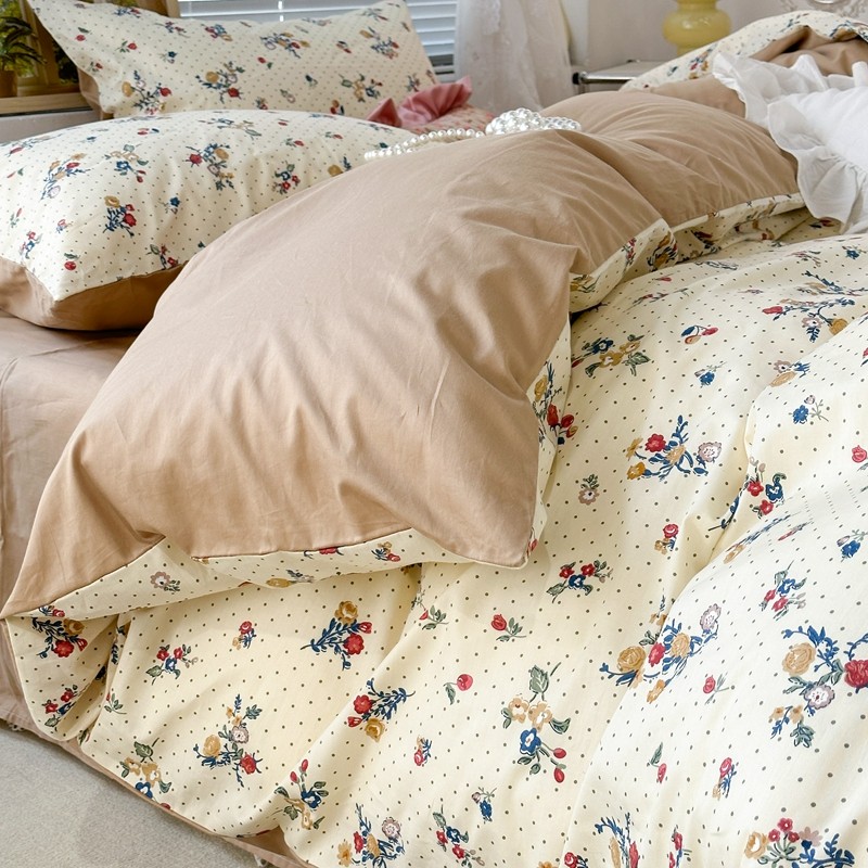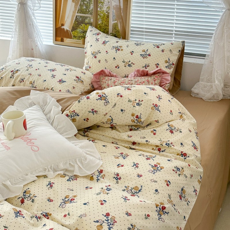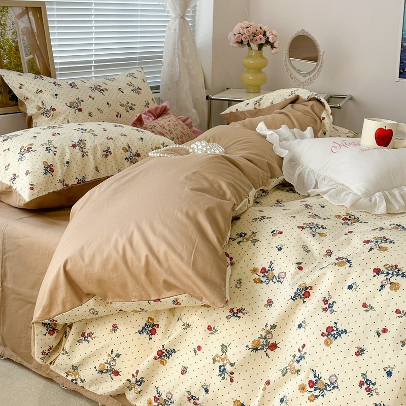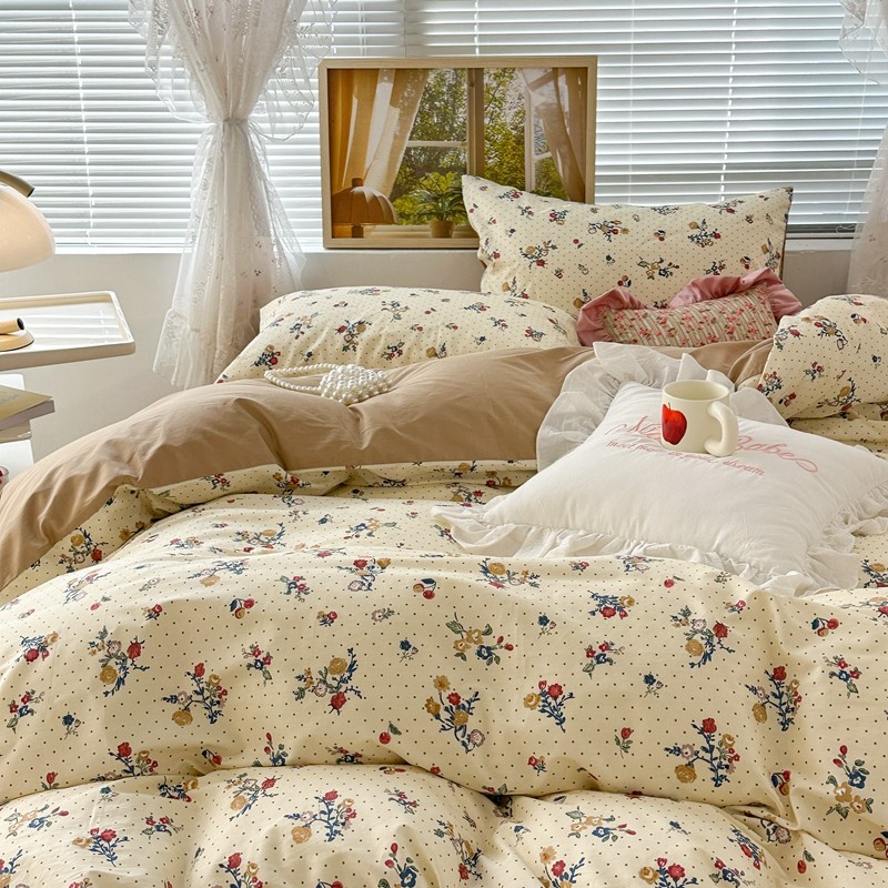 (总)昔可家纺 2023新款全棉小花系列四件套,柏林少女,小小的樱桃,紫色葡萄