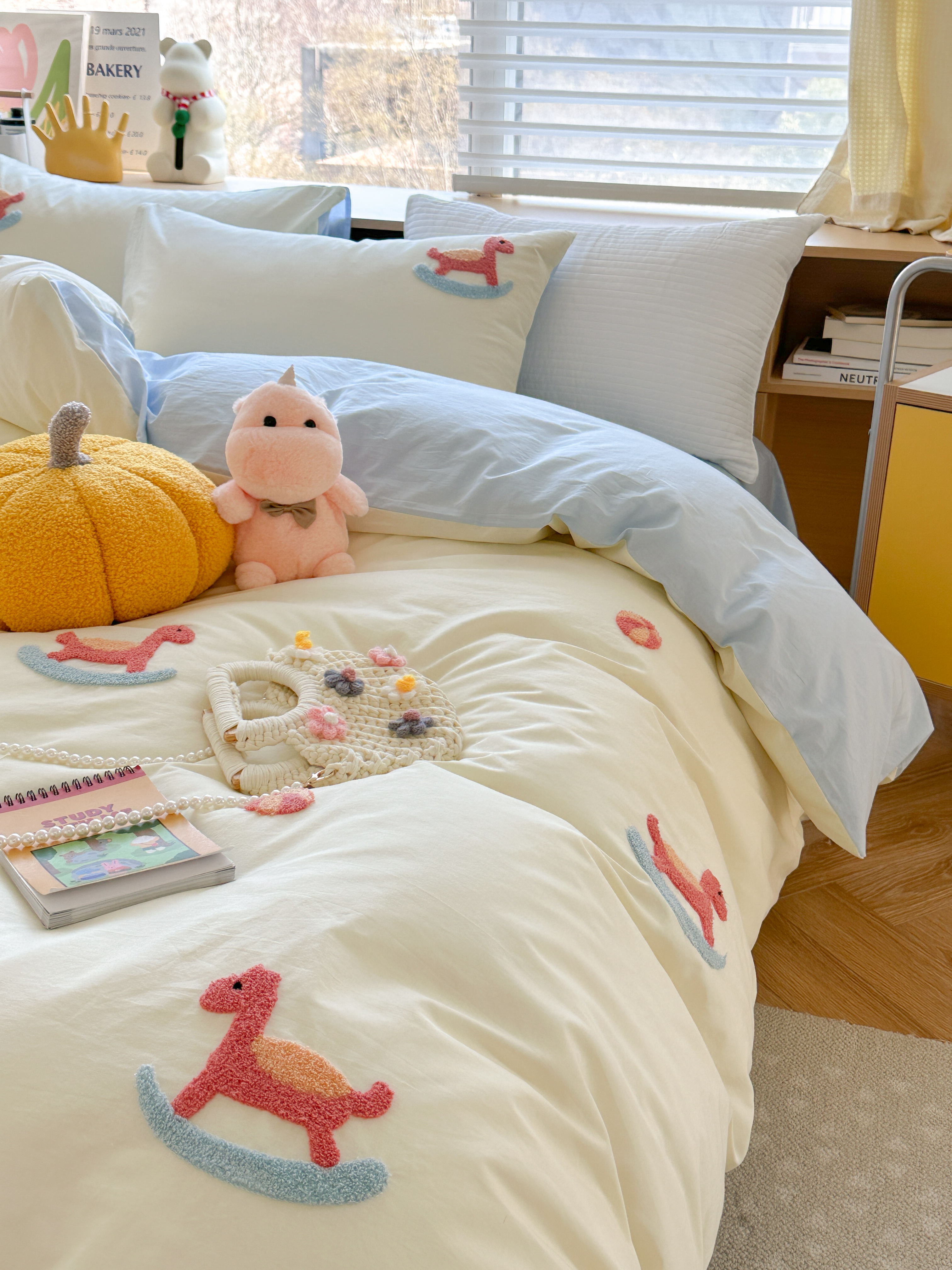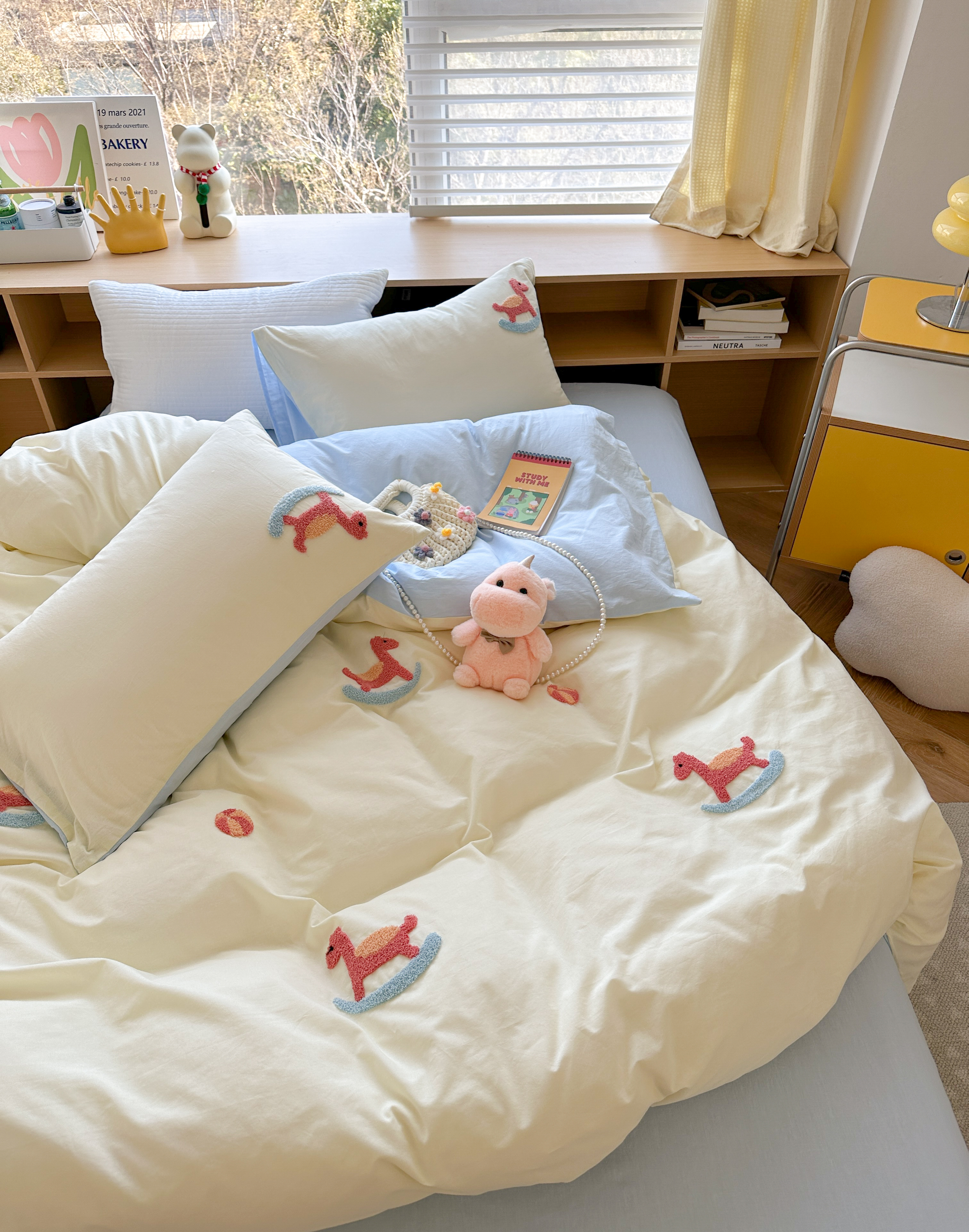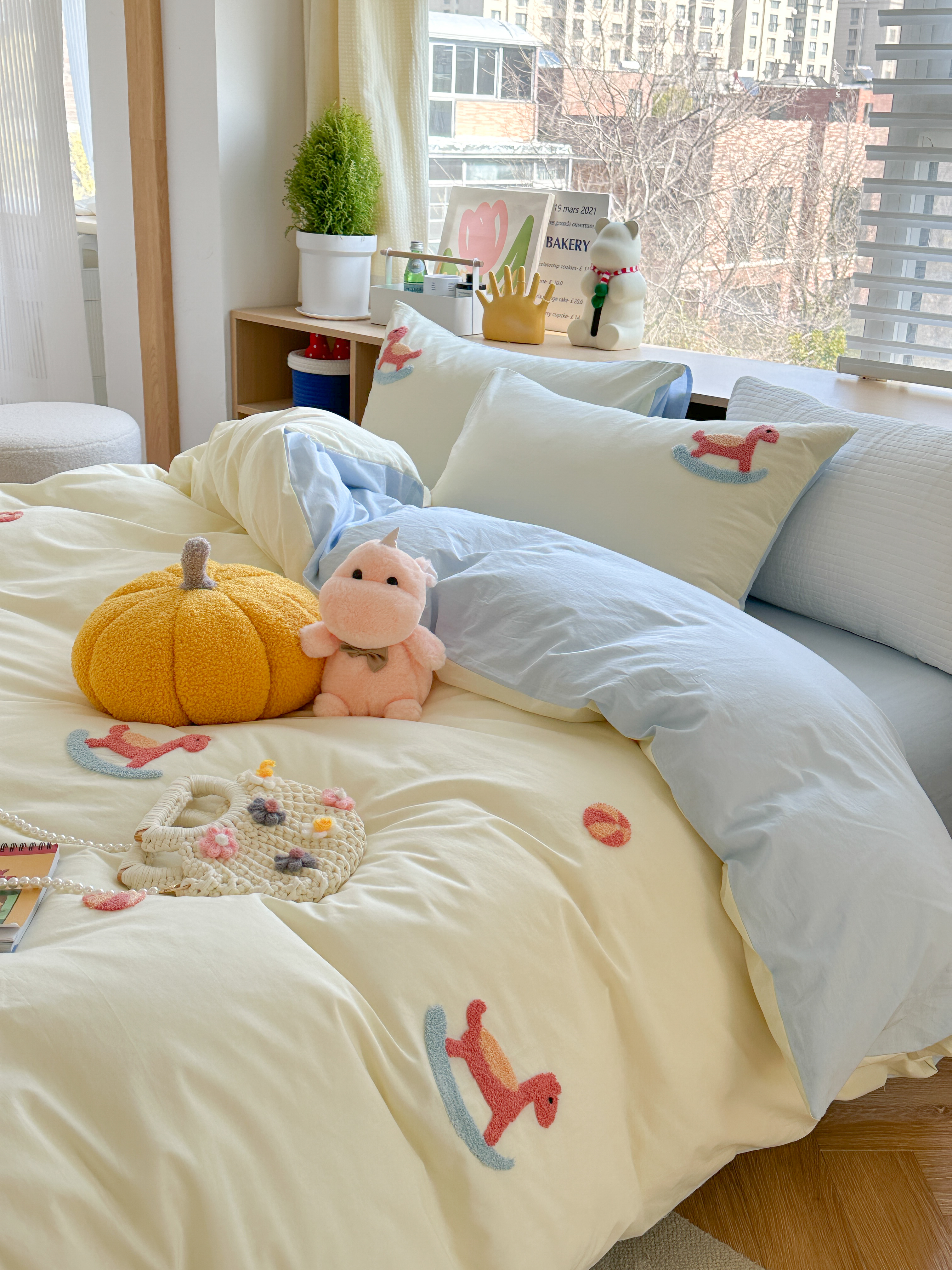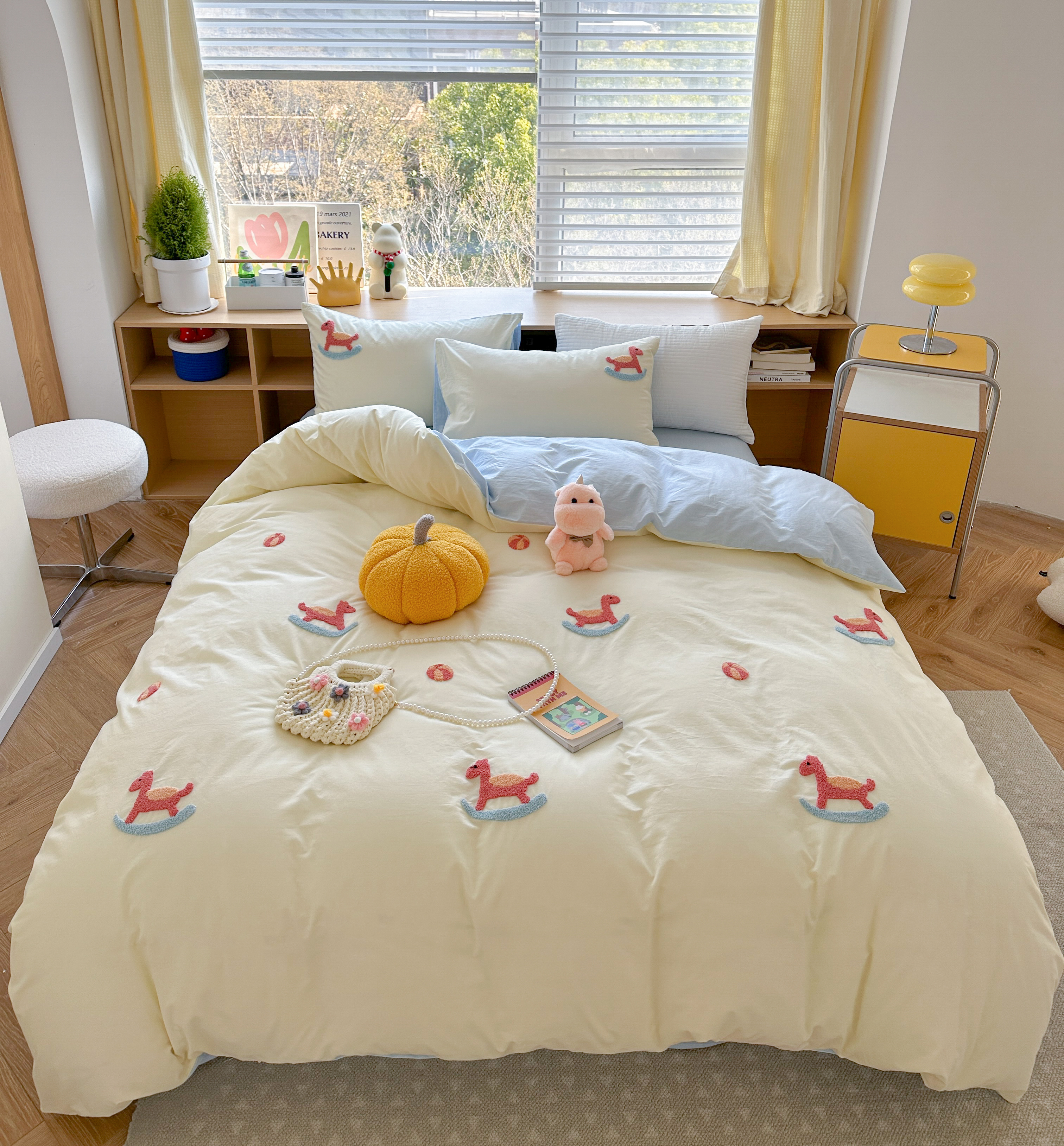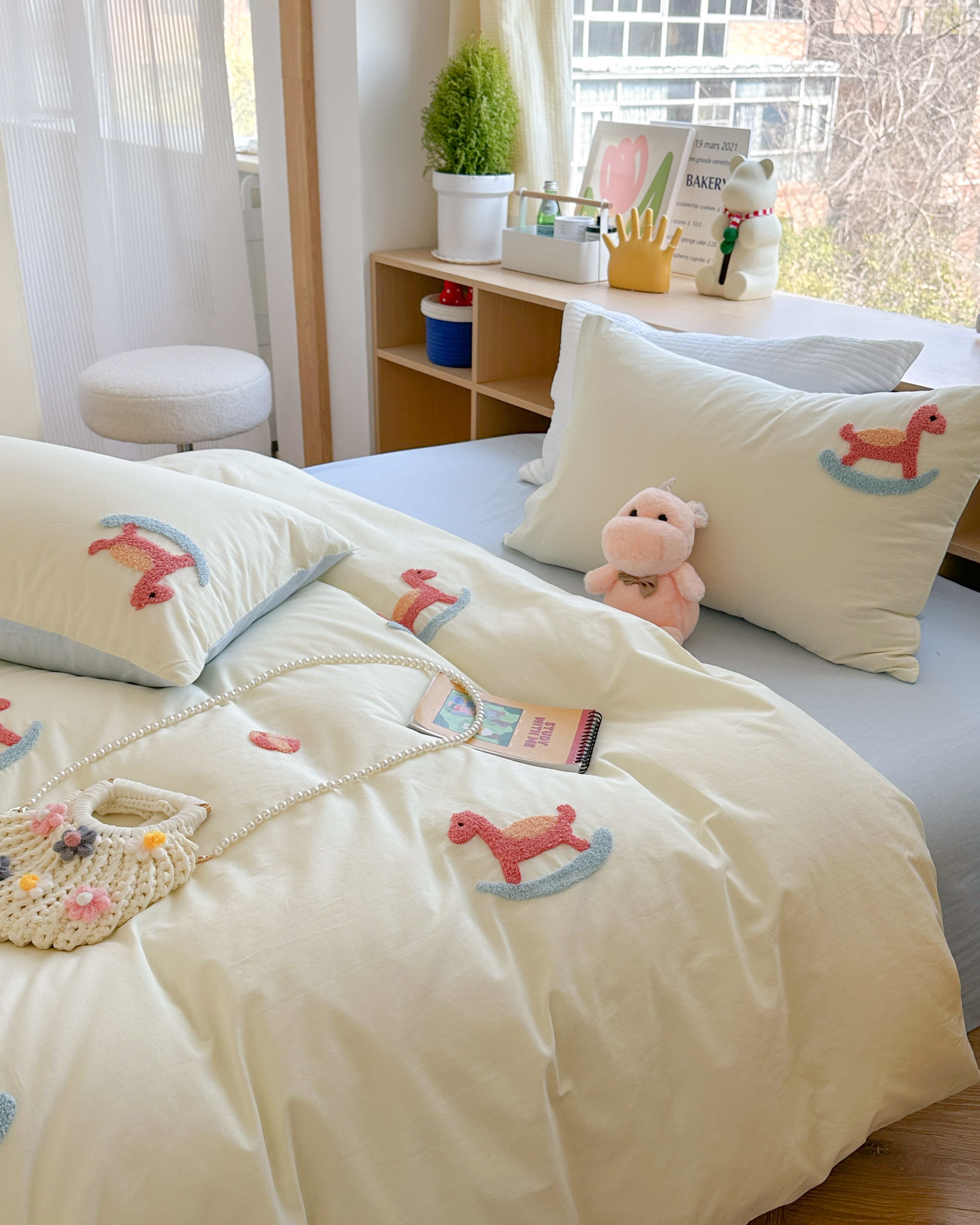 当前位置: 91家纺网 > 商品网购 > 床品套件 > 四件套 > 水洗棉四件套 > 柚子 2023新款全棉水洗棉刺绣套件 水洗棉-木马