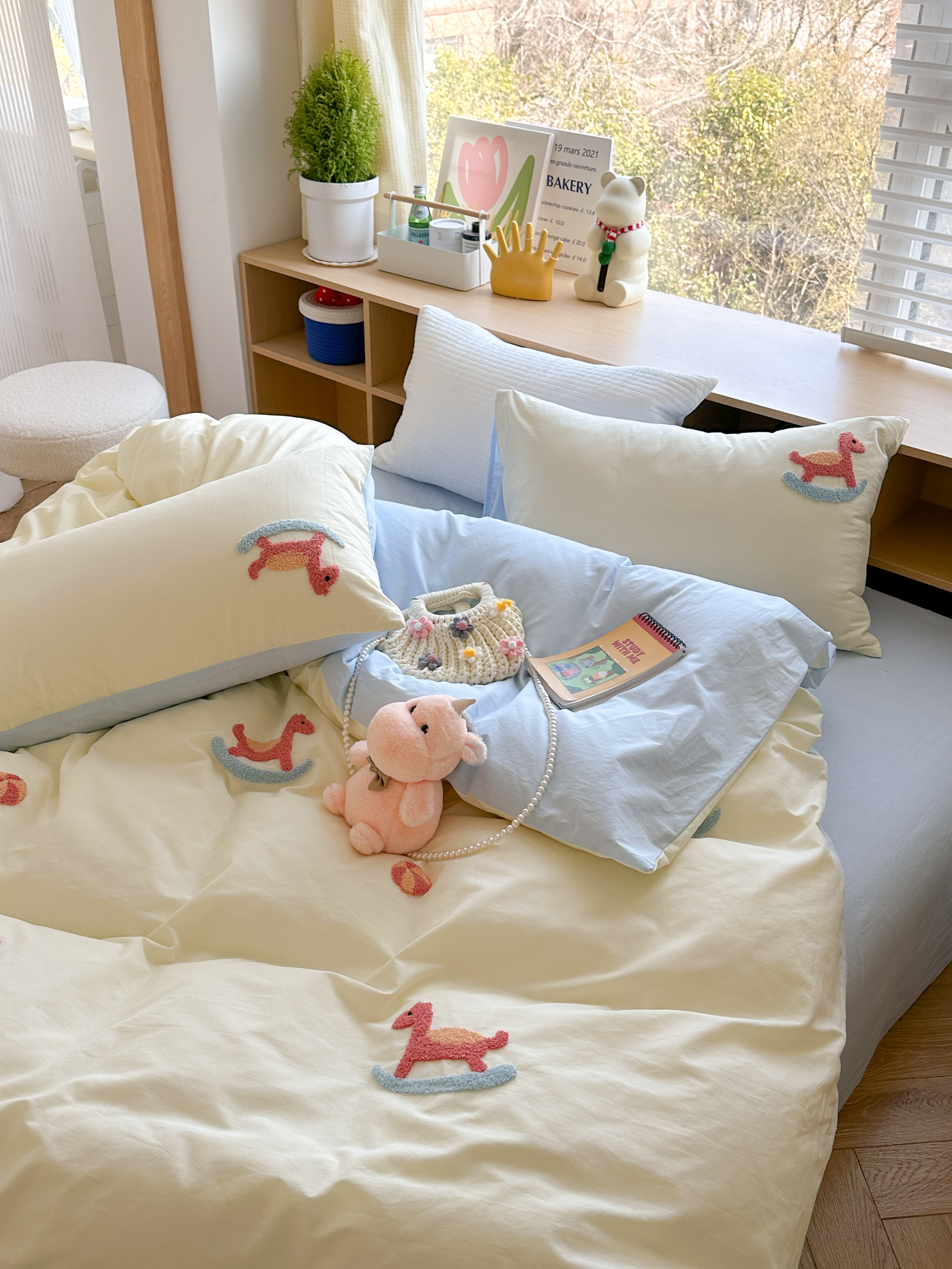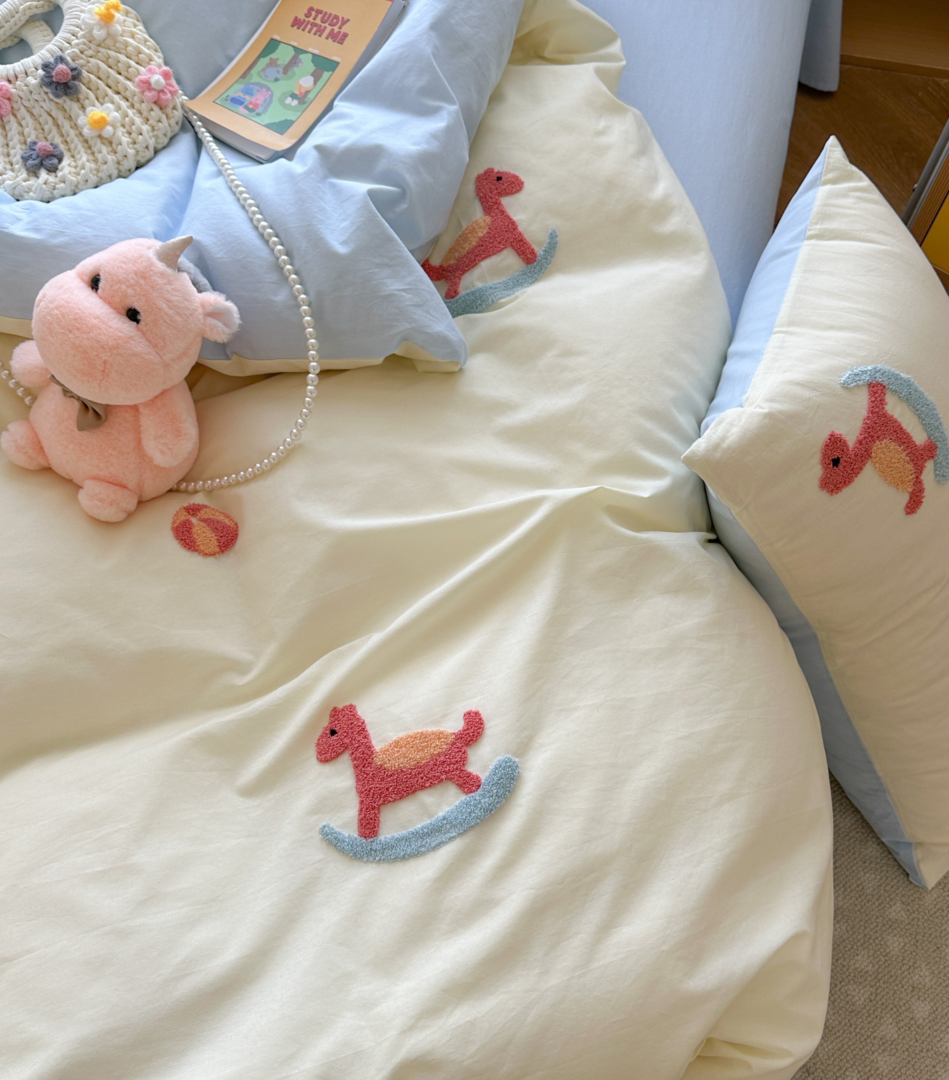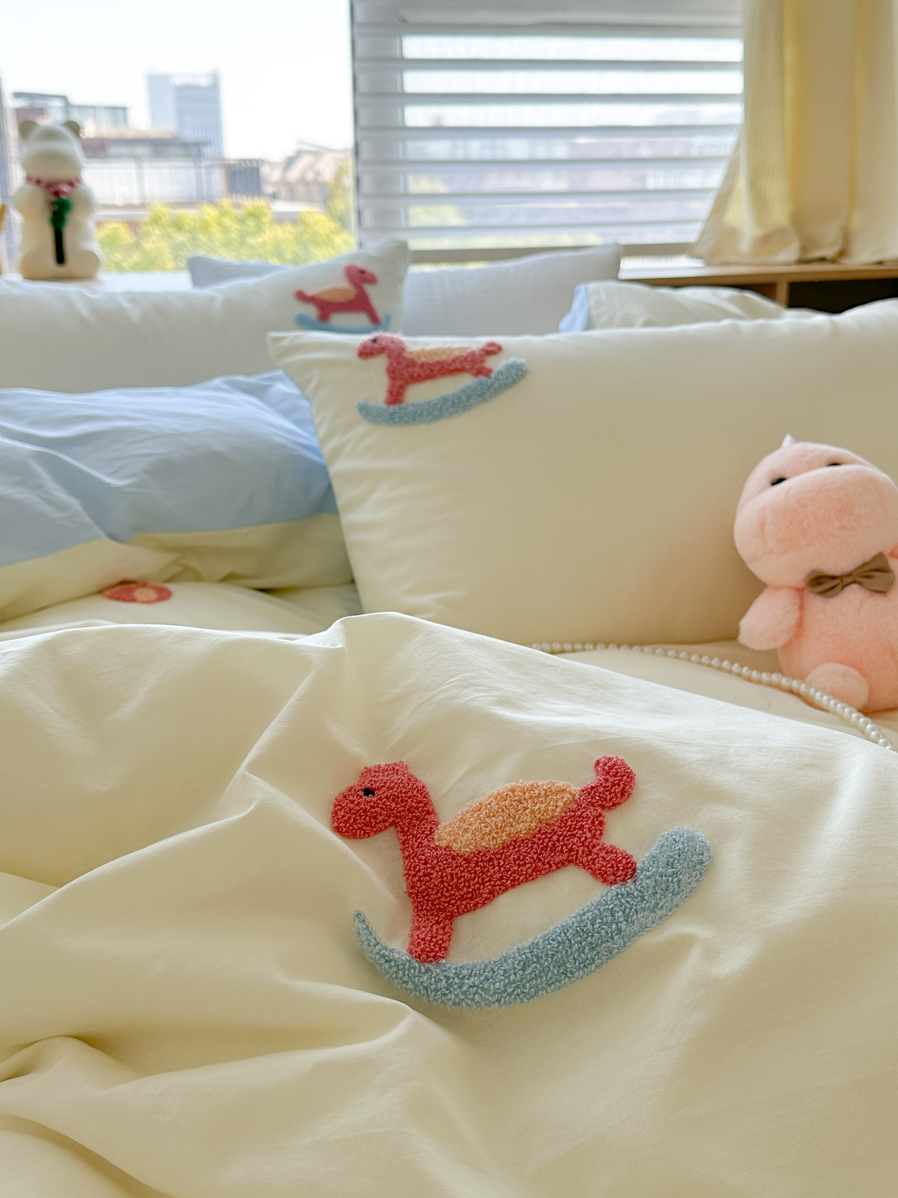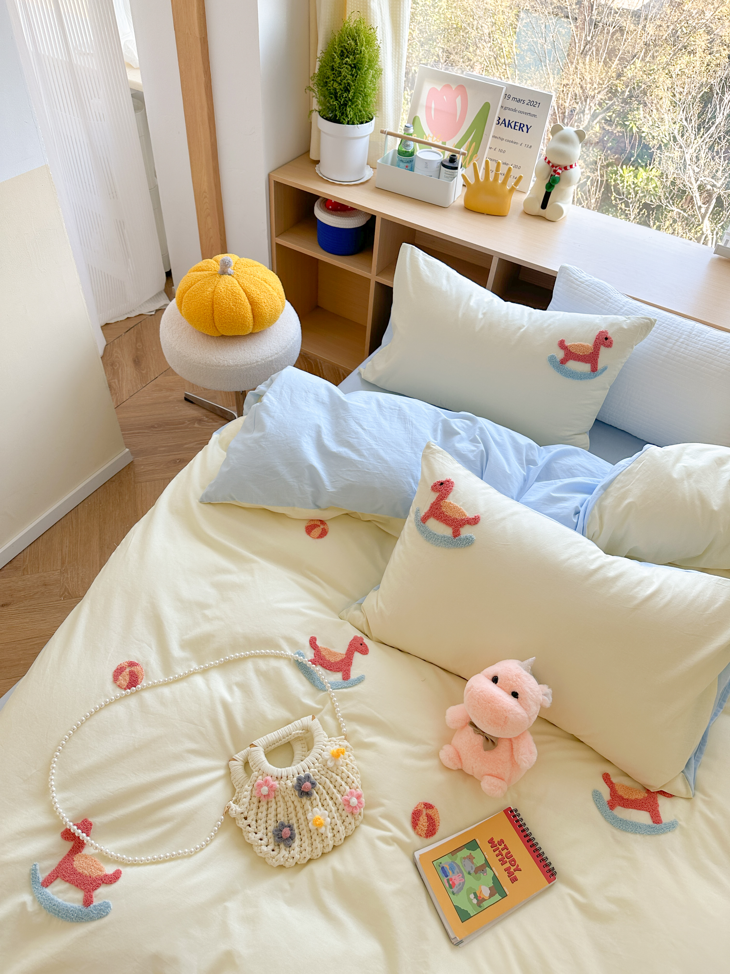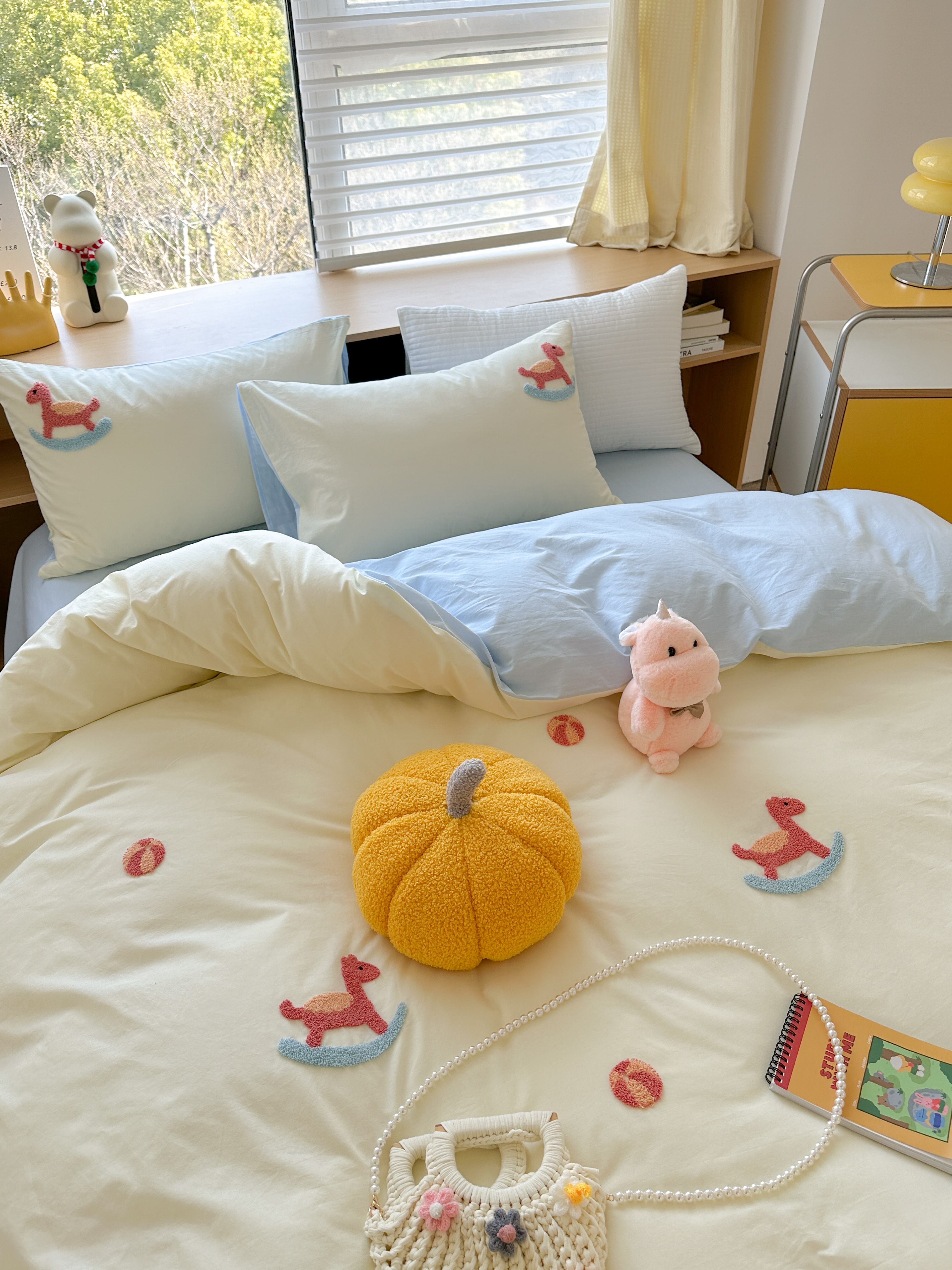 当前位置: 91家纺网 > 商品网购 > 床品套件 > 四件套 > 水洗棉四件套 > 柚子 2023新款全棉水洗棉刺绣套件 水洗棉-木马