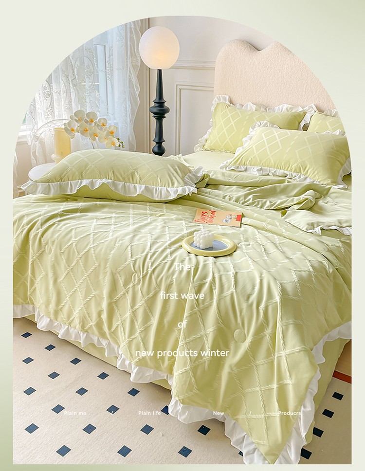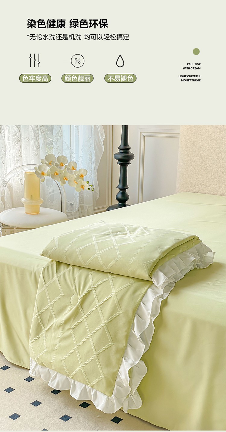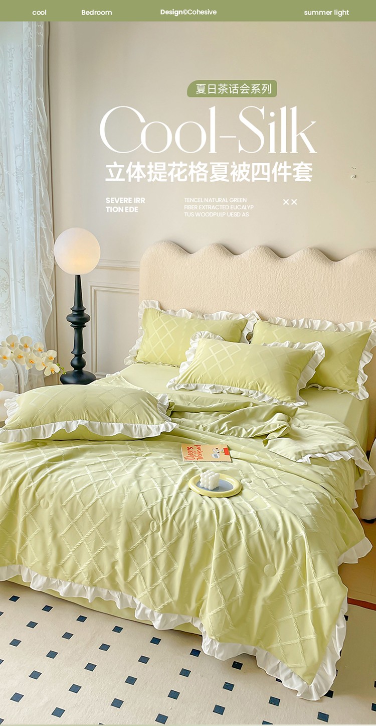 当前位置: 91家纺网 > 商品网购 > 床品套件 > 四件套 > 夏被四件套 > 澳梵2023新款【夏日茶话会】系列-立体提花格夏被四件套 夏日午后-绿