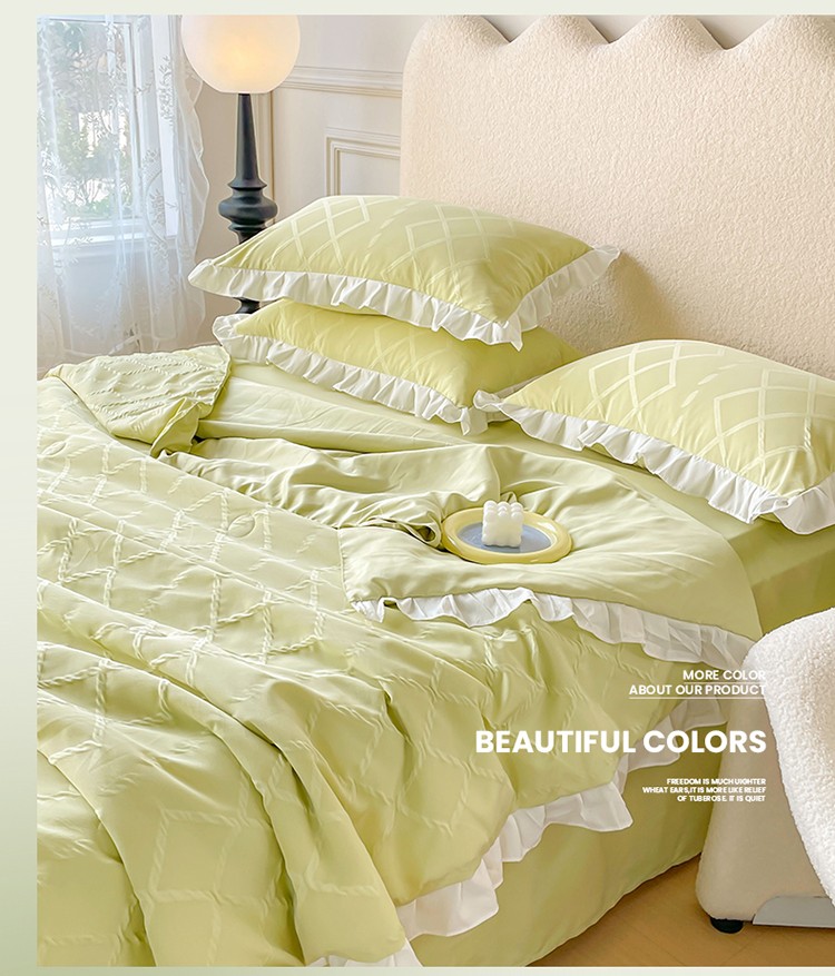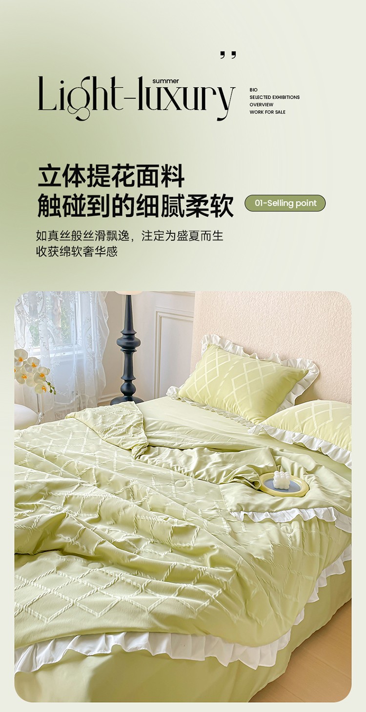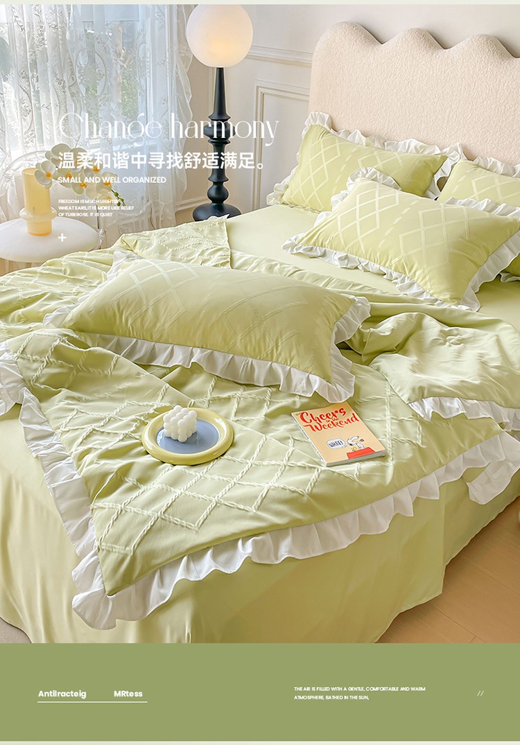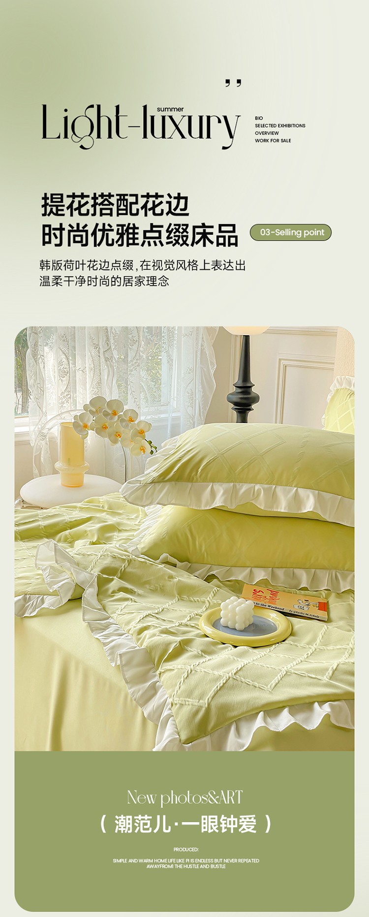 当前位置: 91家纺网 > 商品网购 > 床品套件 > 四件套 > 夏被四件套 > 澳梵2023新款【夏日茶话会】系列-立体提花格夏被四件套 夏日午后-绿