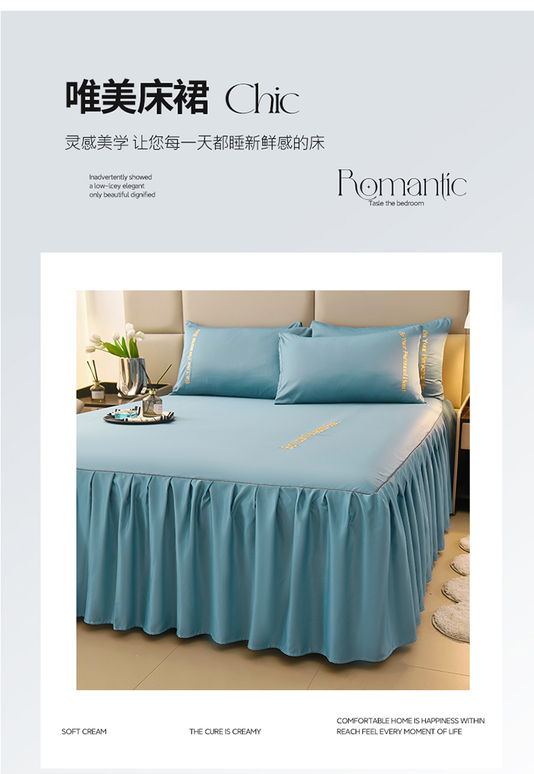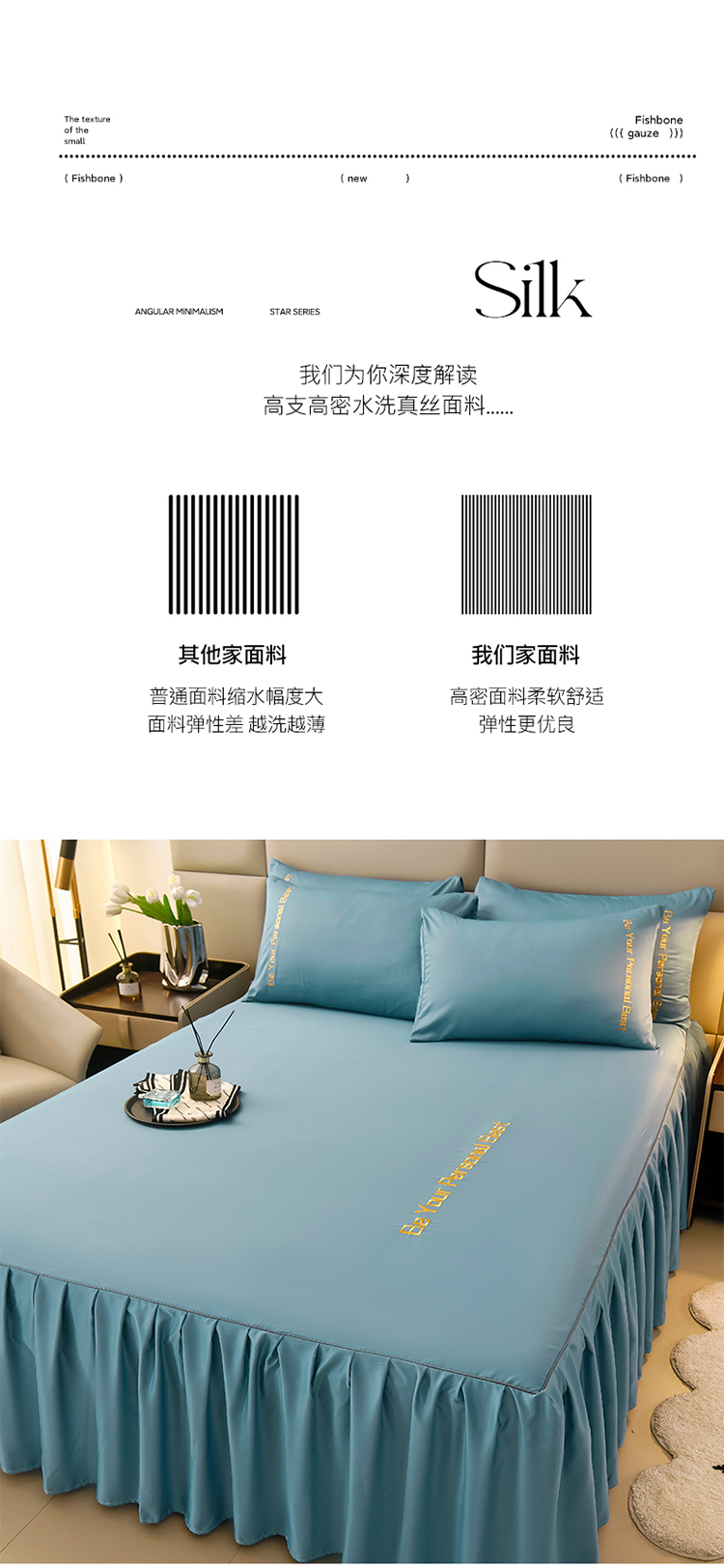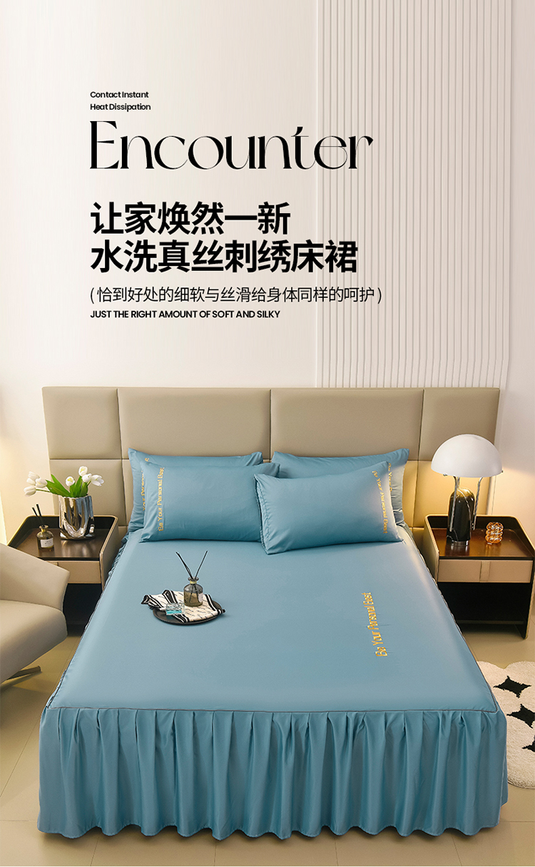 • 91家纺网 家纺一手货源 找家纺 七仙女家纺 2025新款水洗真丝天丝系列单床裙 晴空蓝