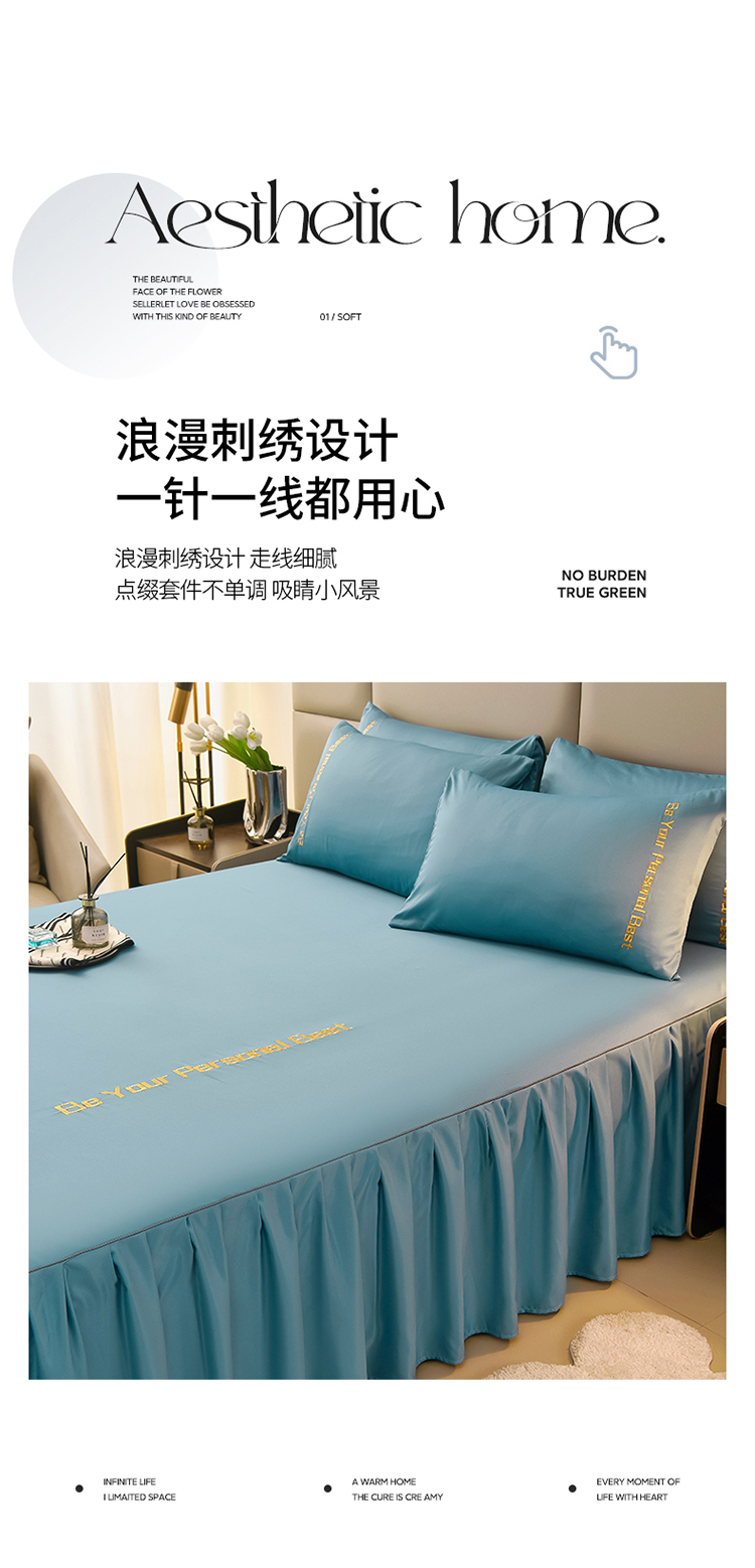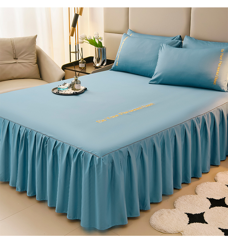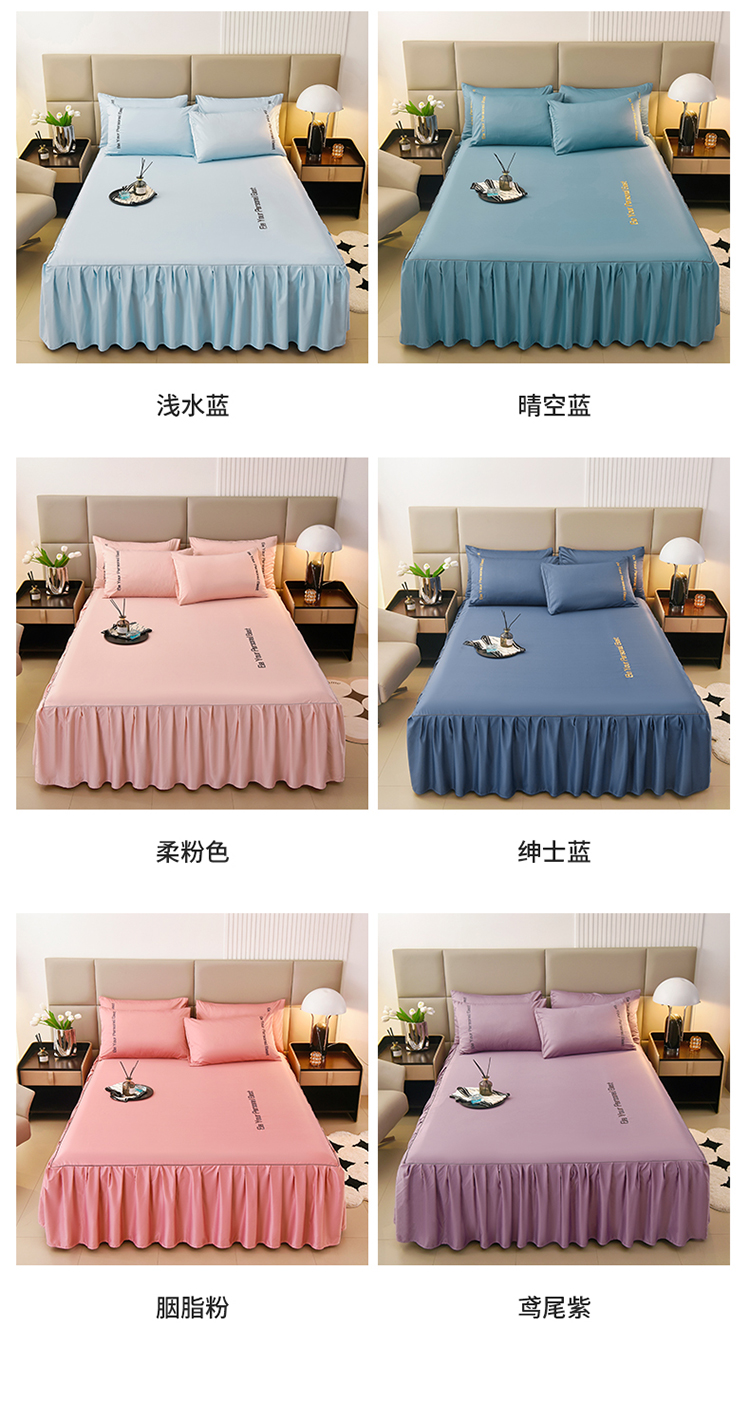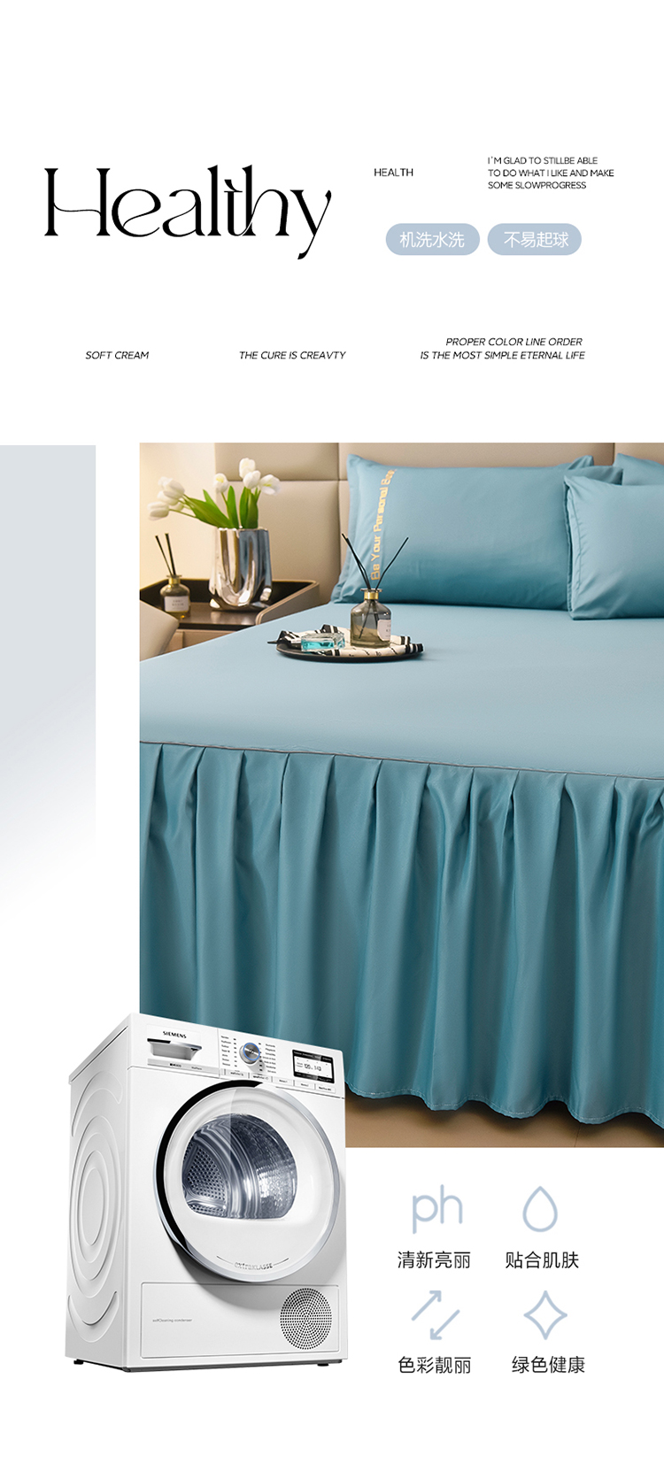 • 91家纺网 家纺一手货源 找家纺 七仙女家纺 2025新款水洗真丝天丝系列单床裙 晴空蓝
