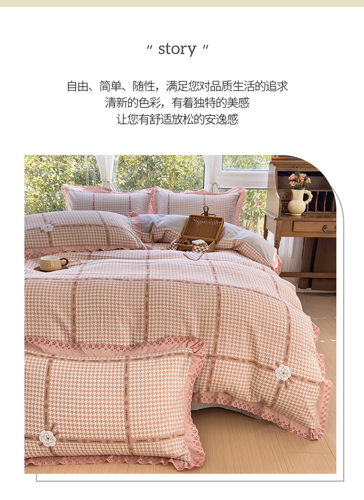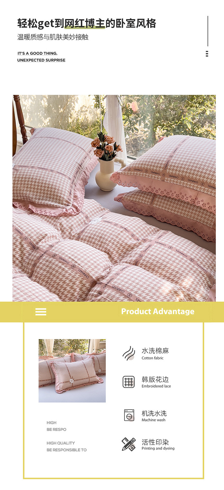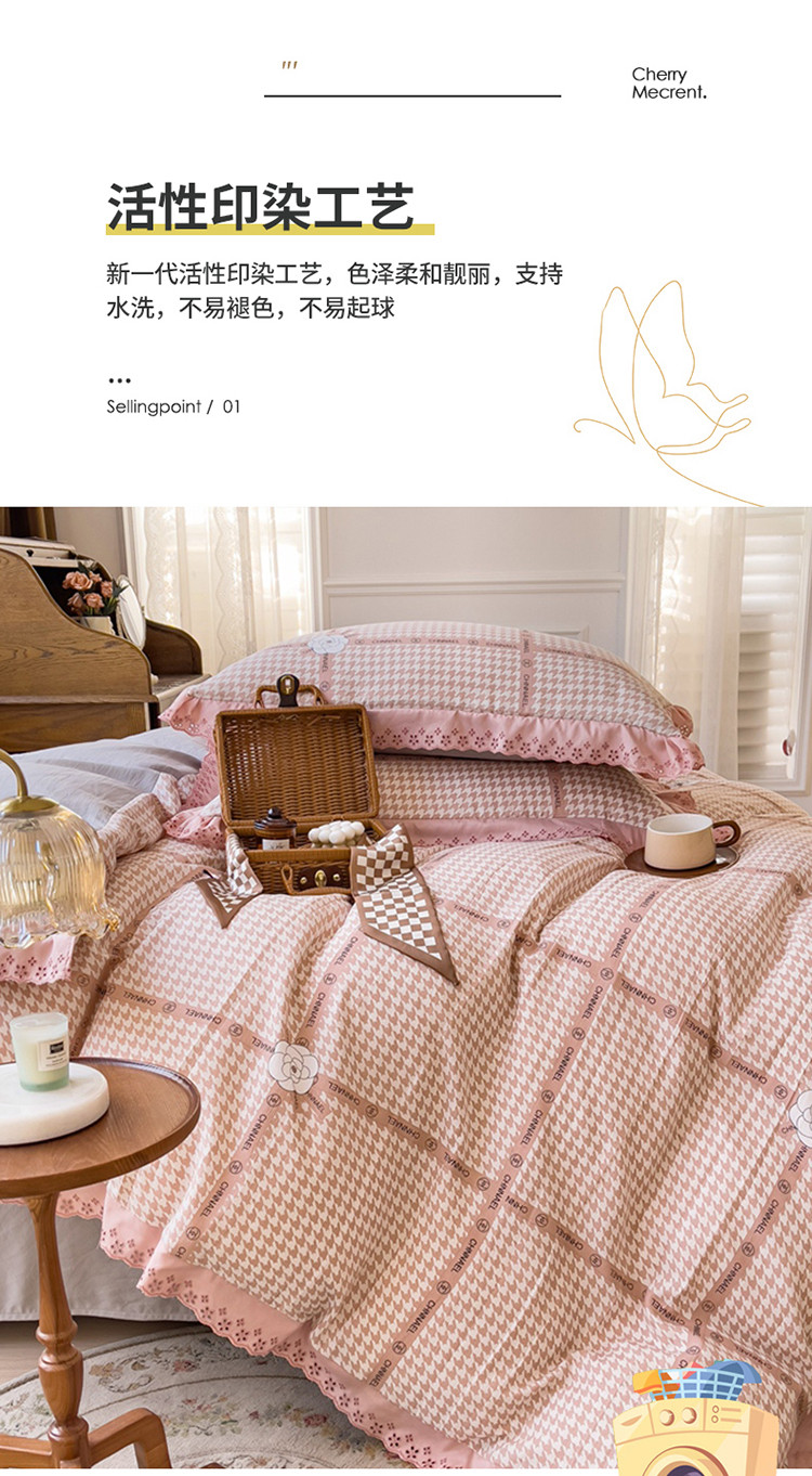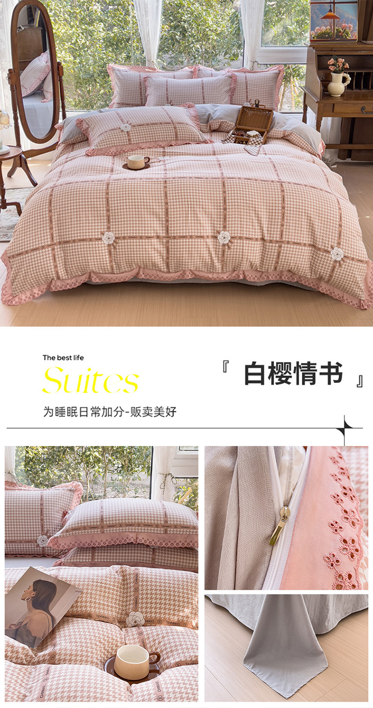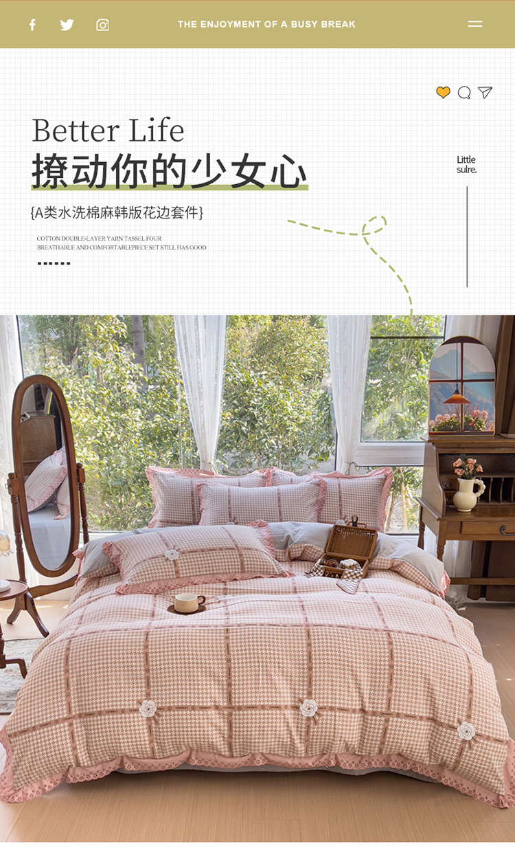 当前位置: 91家纺网 > 商品网购 > 床品套件 > 四件套 > 水洗棉四件套 > 大米 2023新款复古花边A类印花水洗棉麻四件套 白樱情书