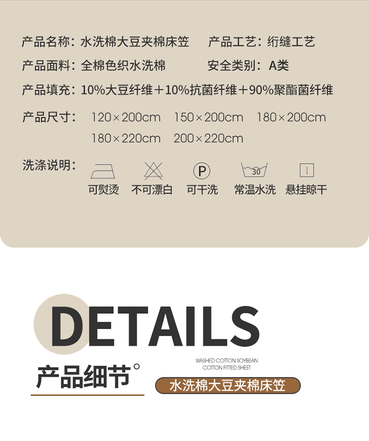 商品名称:(总)纤雅 2024新款 纯棉水洗棉刺绣大豆床笠