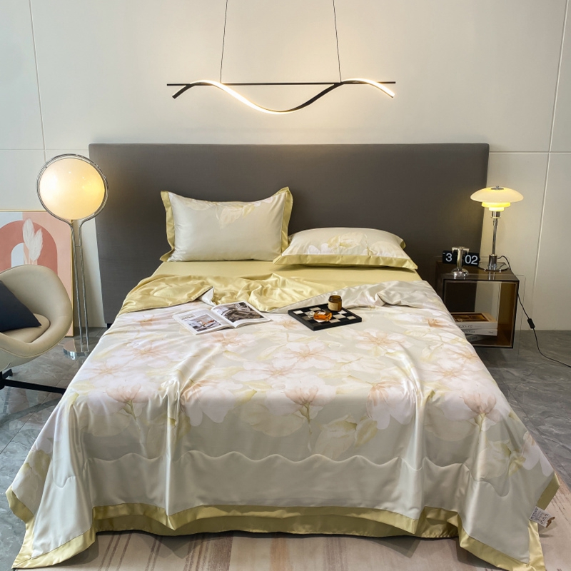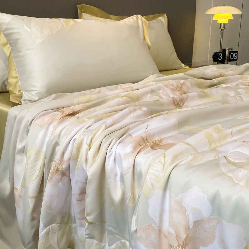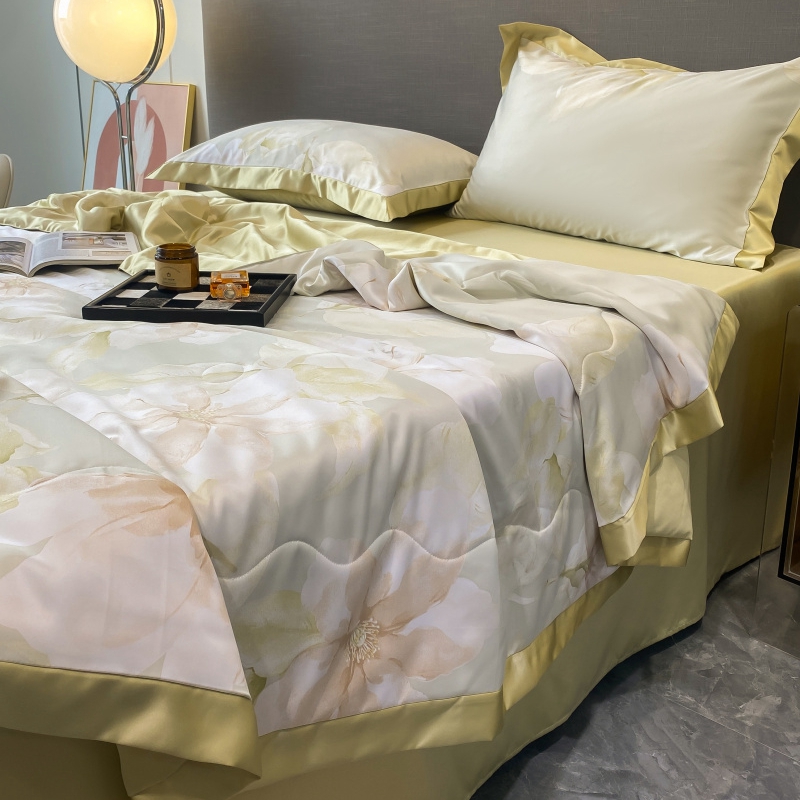 棉生活 2023新款莱赛尔天丝绣花夏被 香蜜 绿
