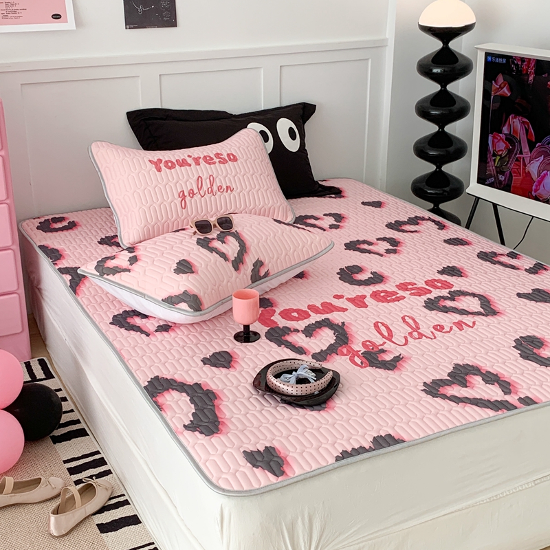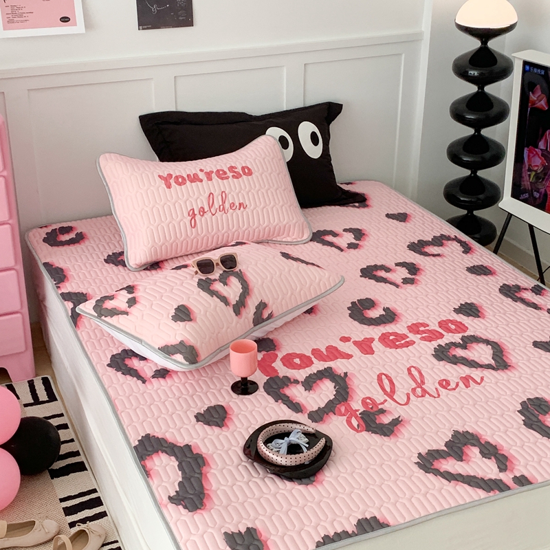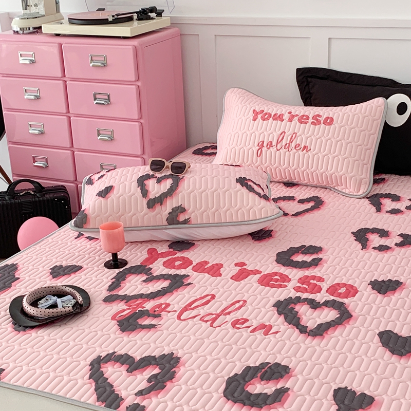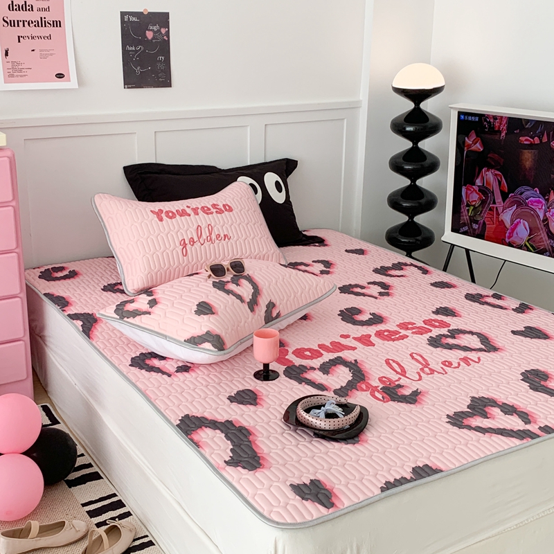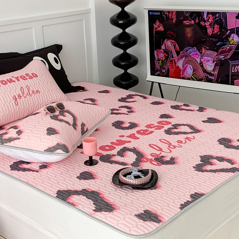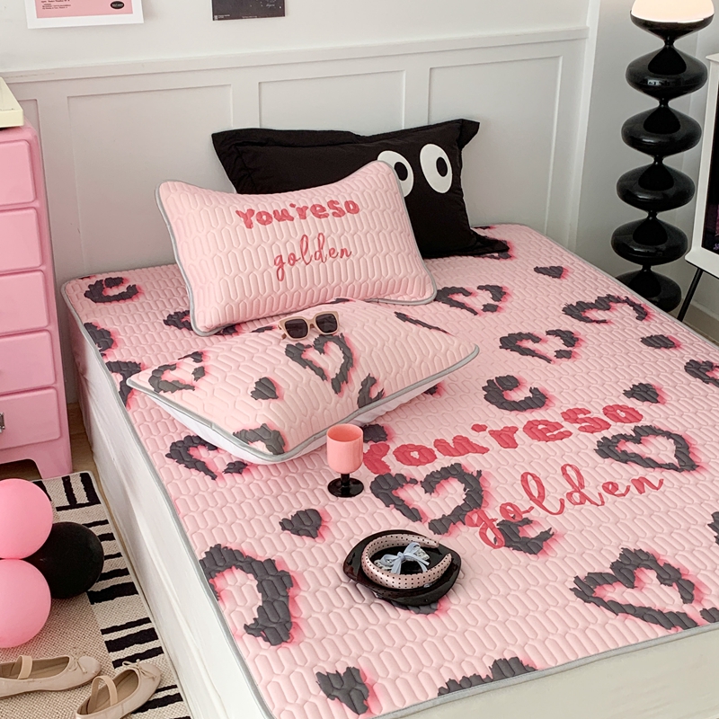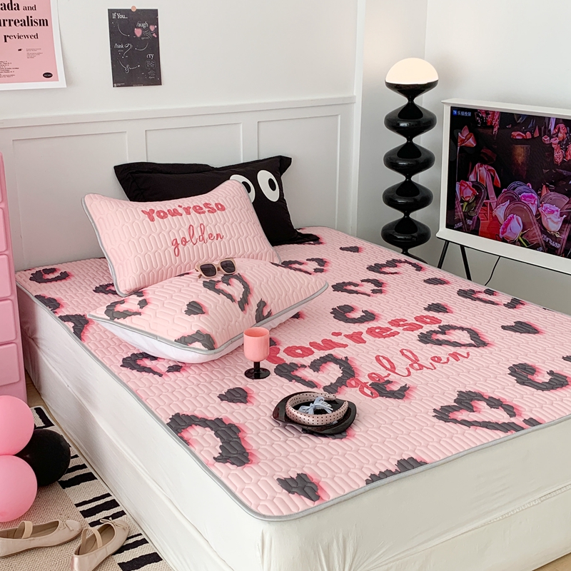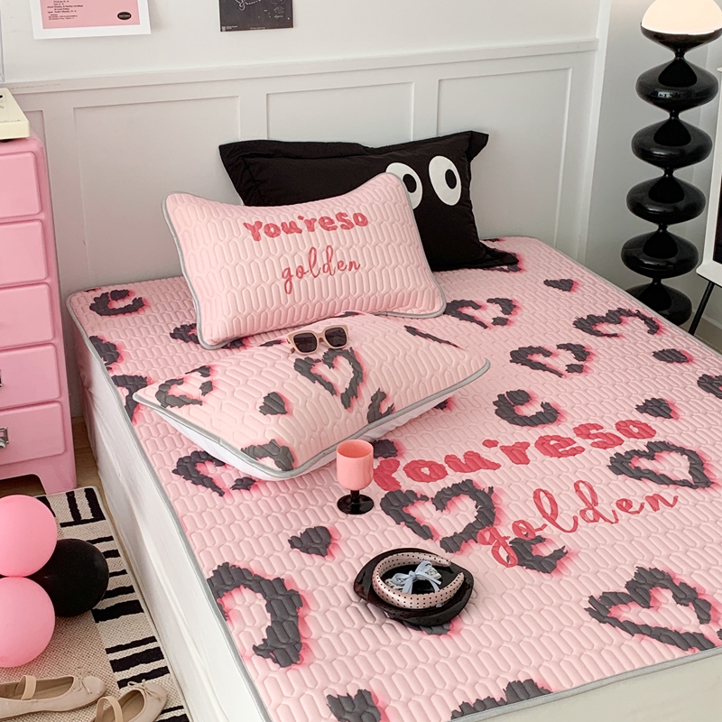 昔可家纺2023新款甜酷黑粉系列乳胶凉席 爱心豹纹