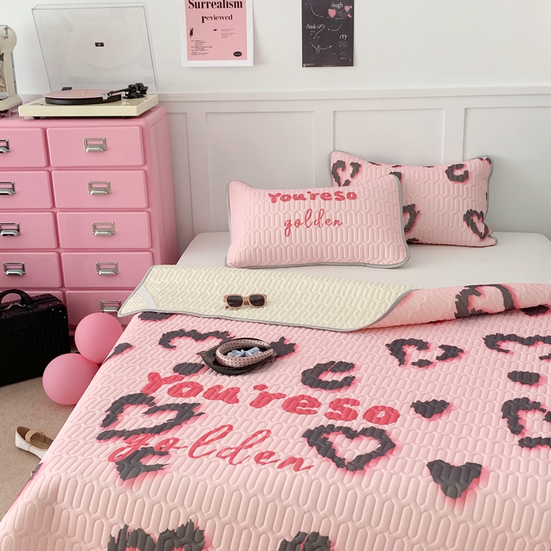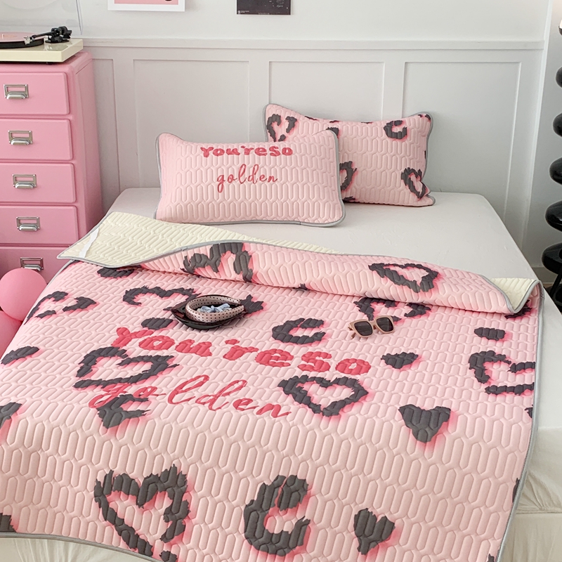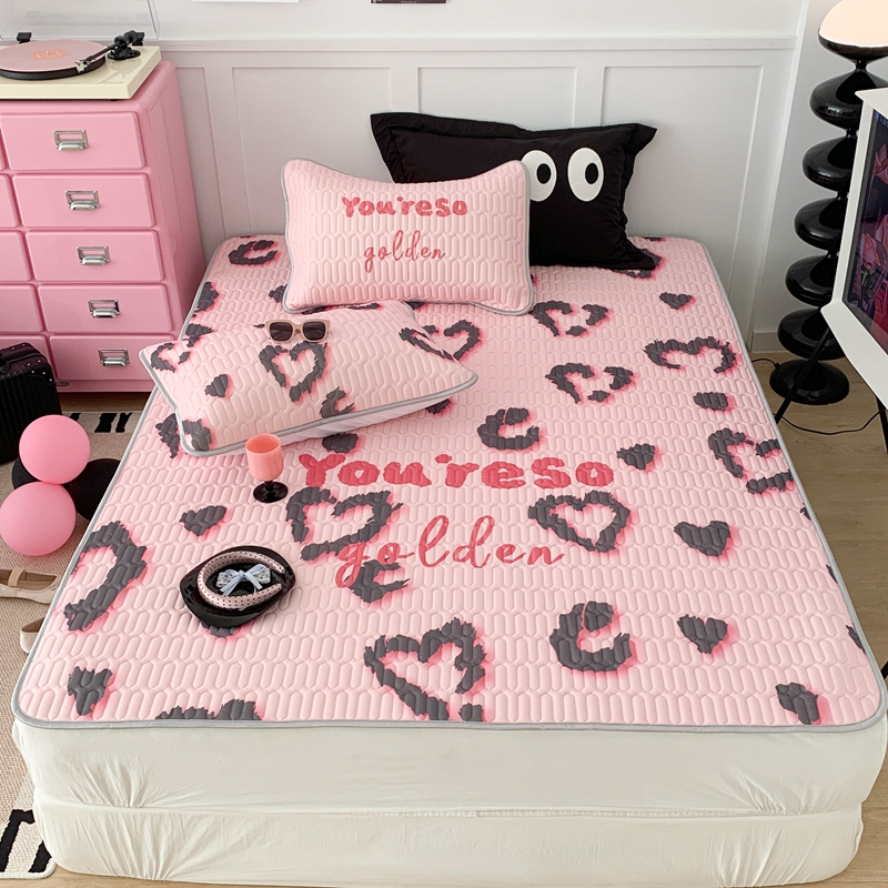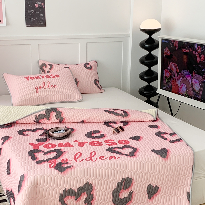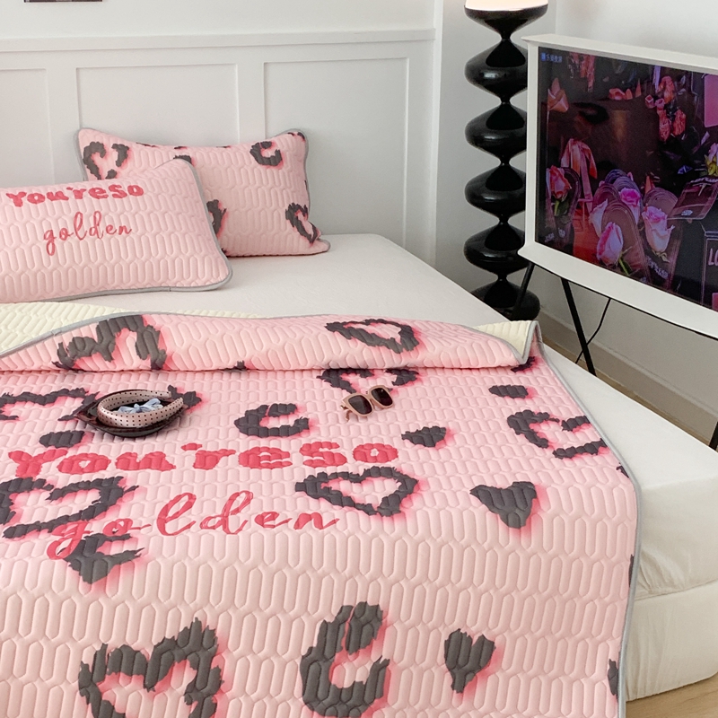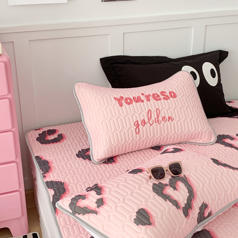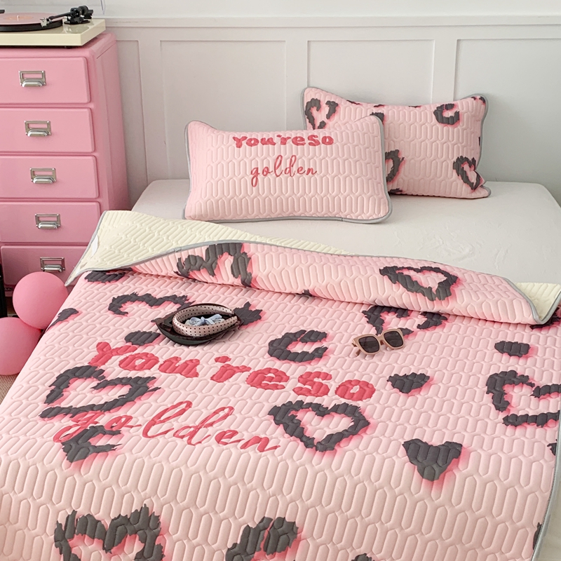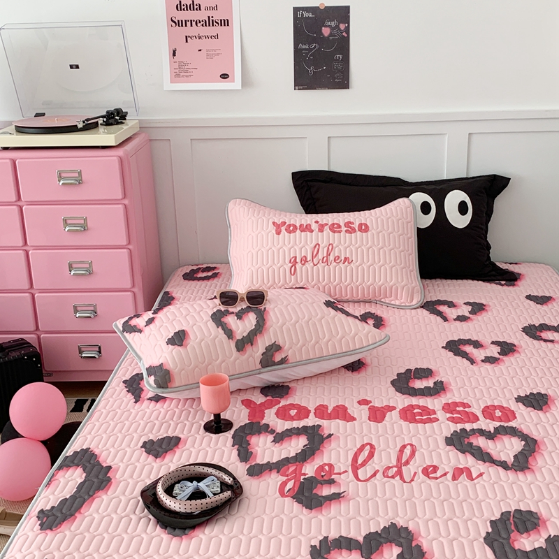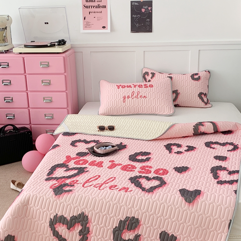 昔可家纺2023新款甜酷黑粉系列乳胶凉席 爱心豹纹