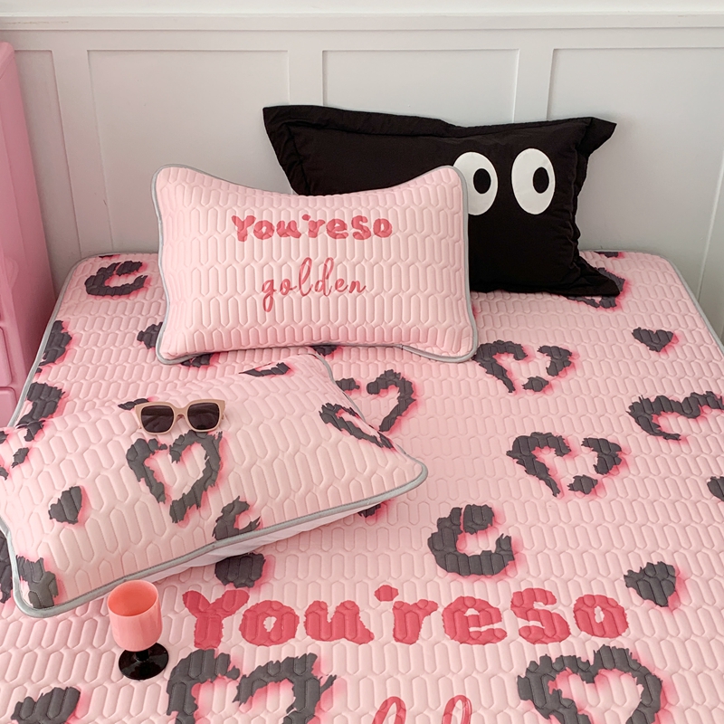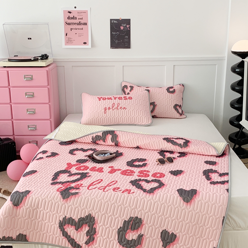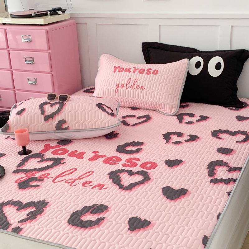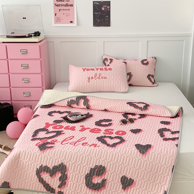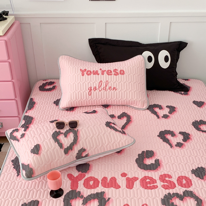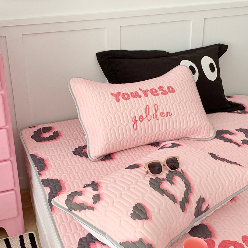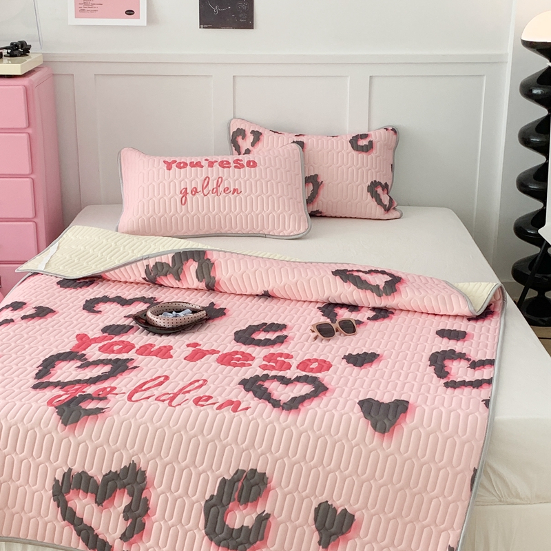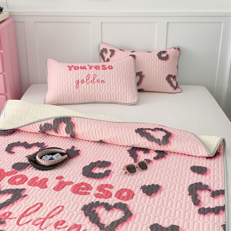 昔可家纺2023新款甜酷黑粉系列乳胶凉席 爱心豹纹