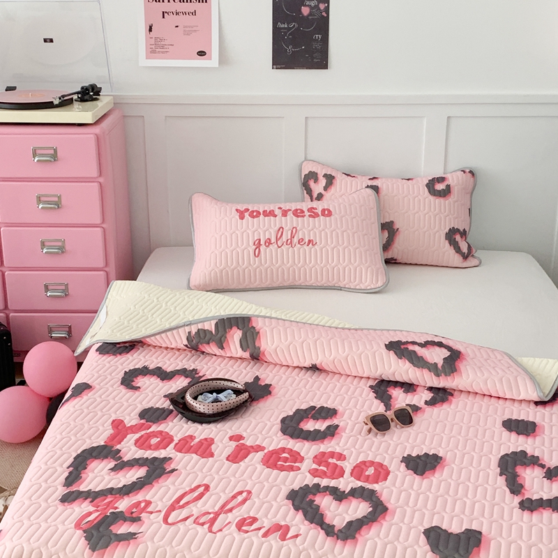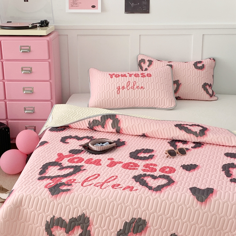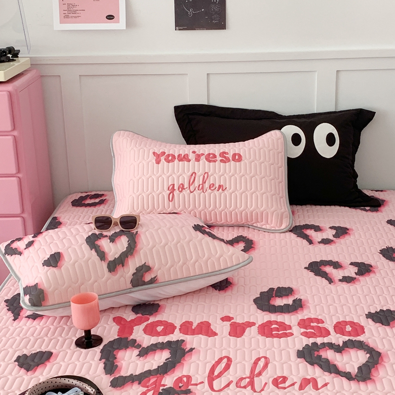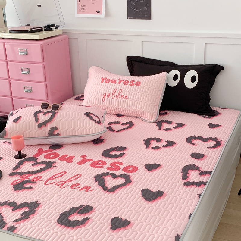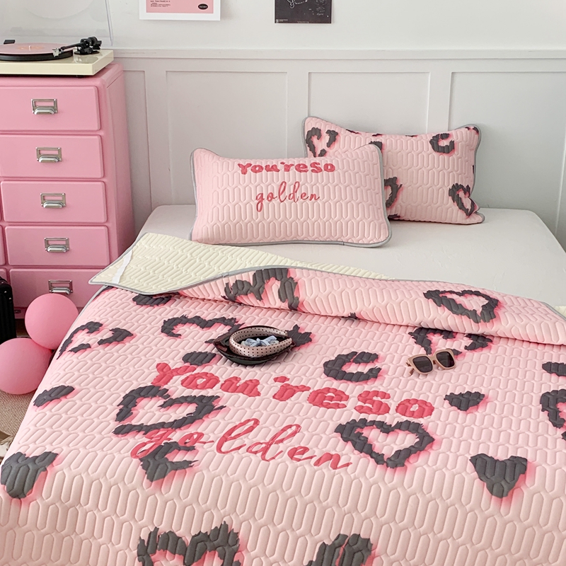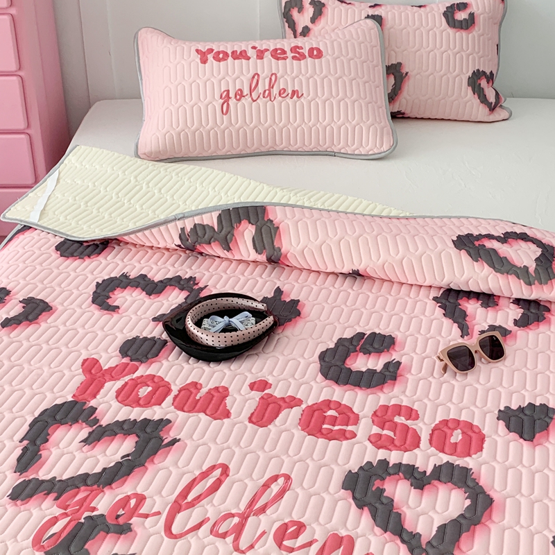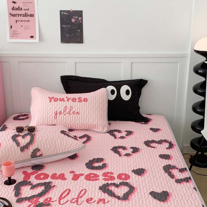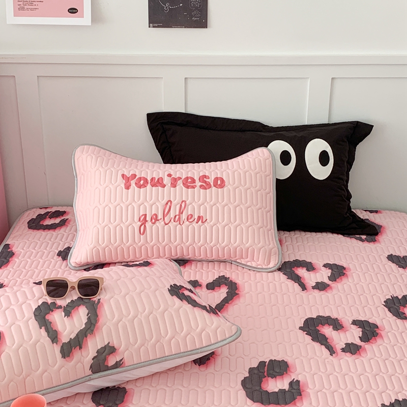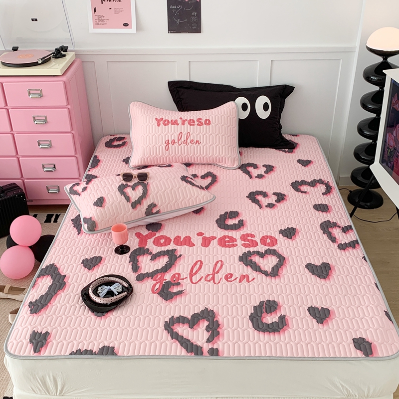昔可家纺2023新款甜酷黑粉系列乳胶凉席 爱心豹纹