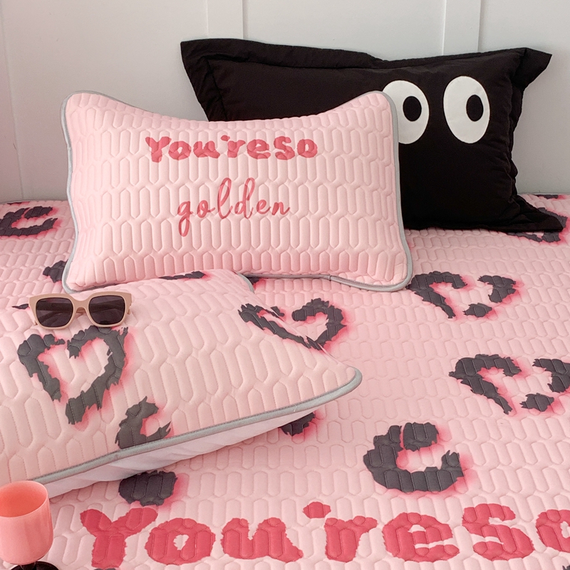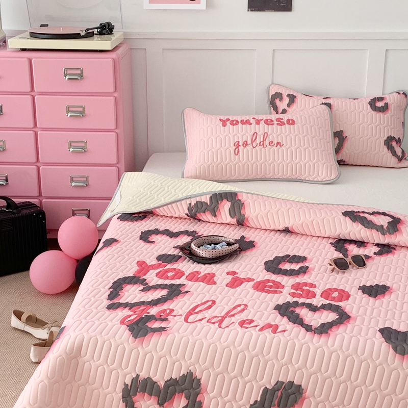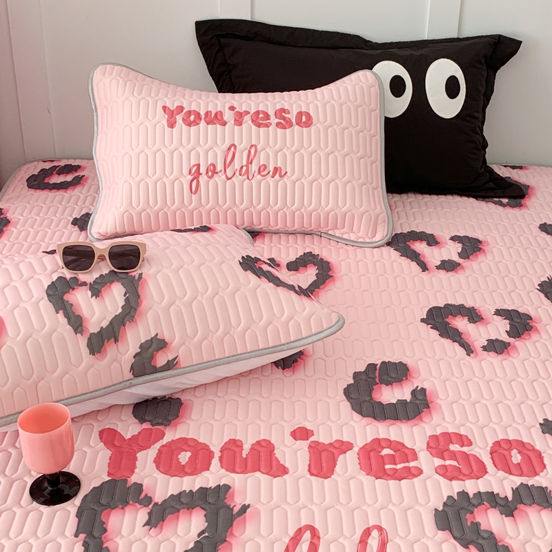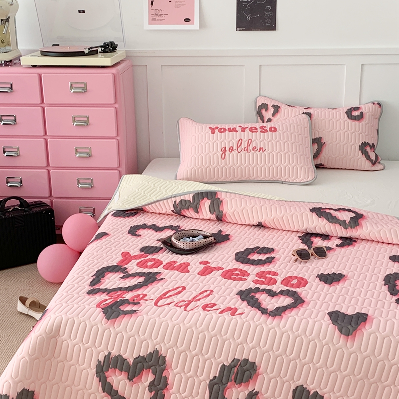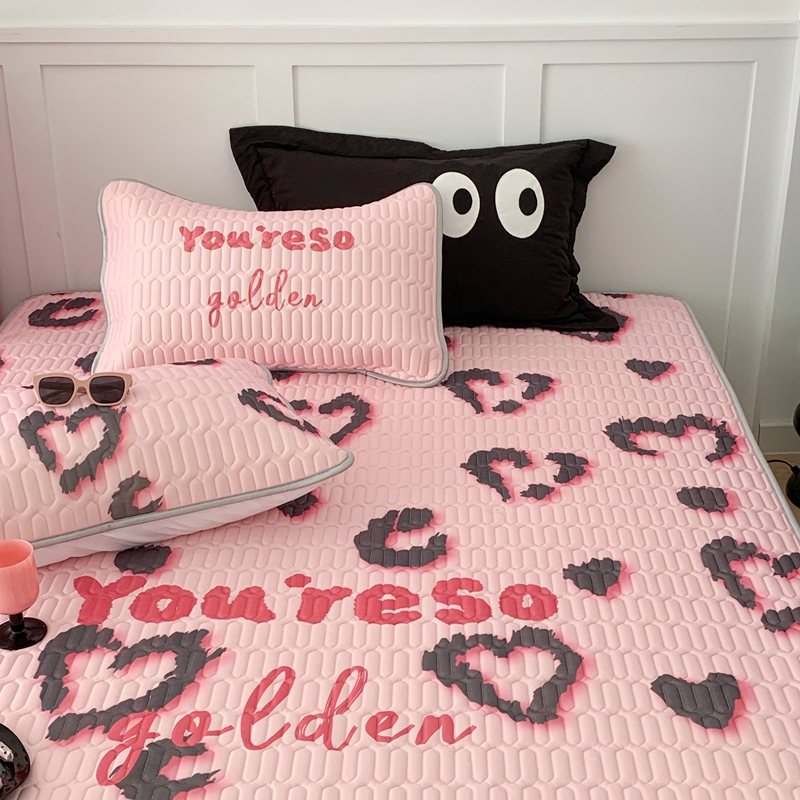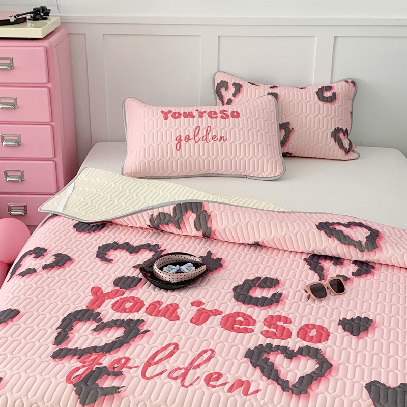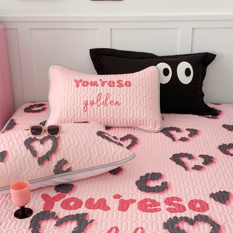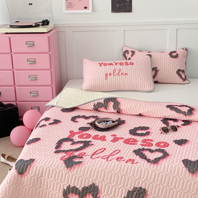 昔可家纺2023新款甜酷黑粉系列乳胶凉席 爱心豹纹