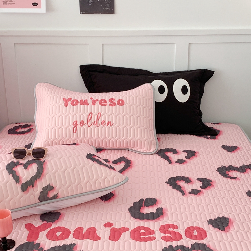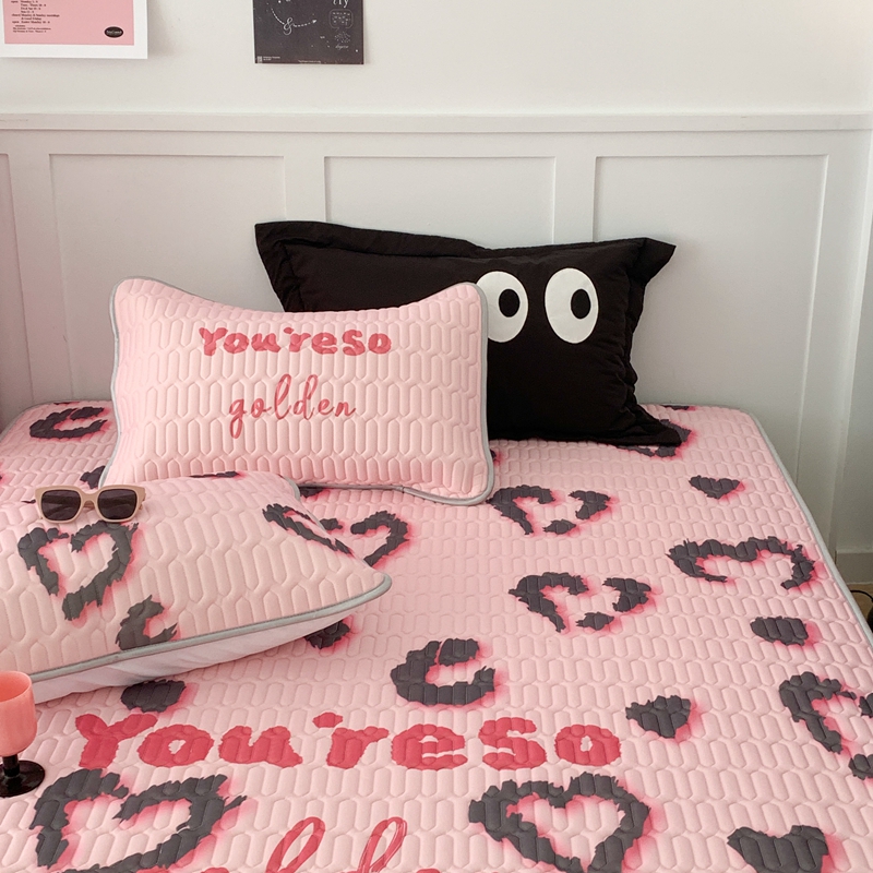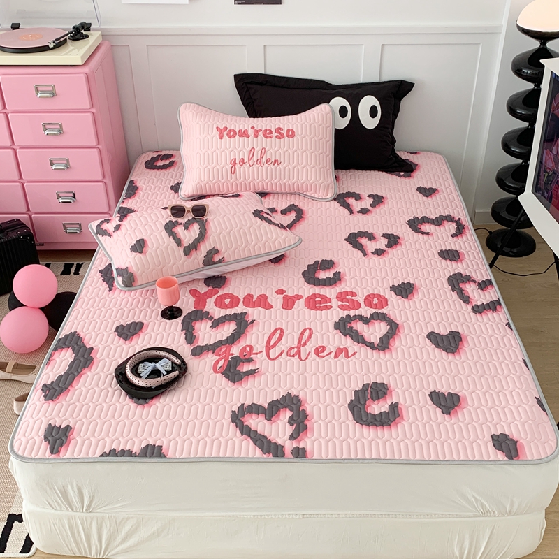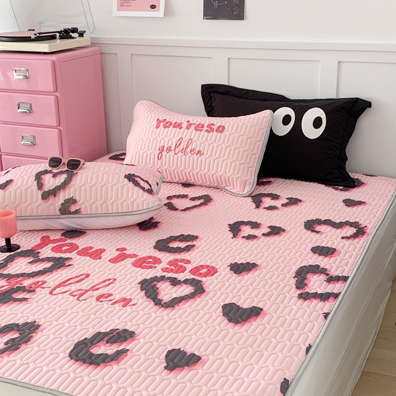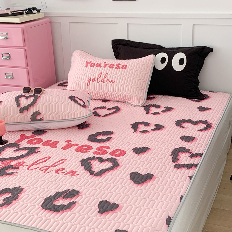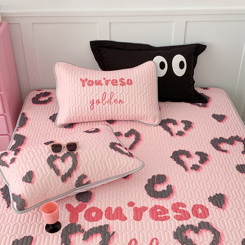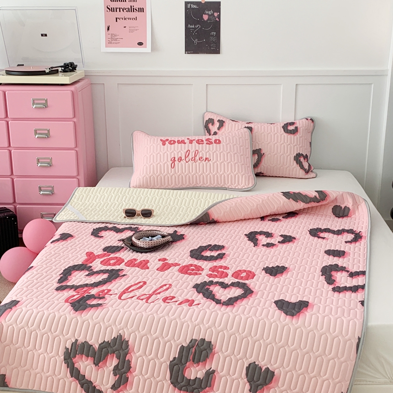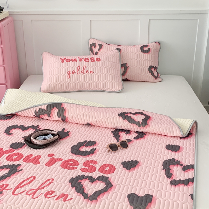 商品名称:昔可家纺2023新款甜酷黑粉系列乳胶凉席 爱心豹纹