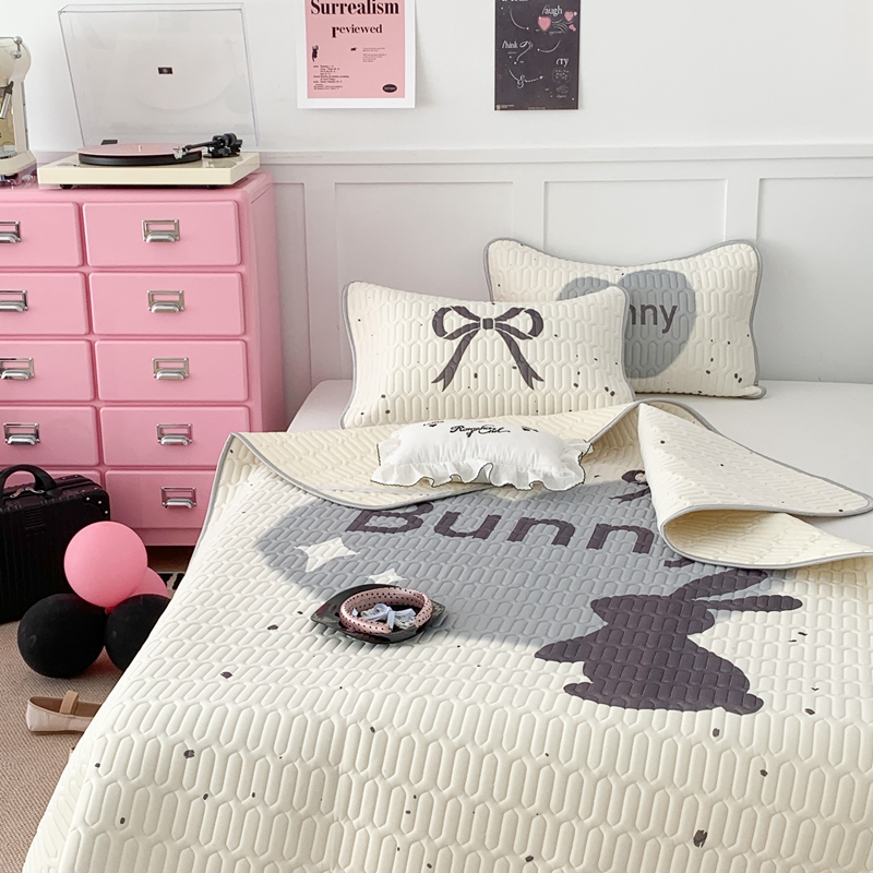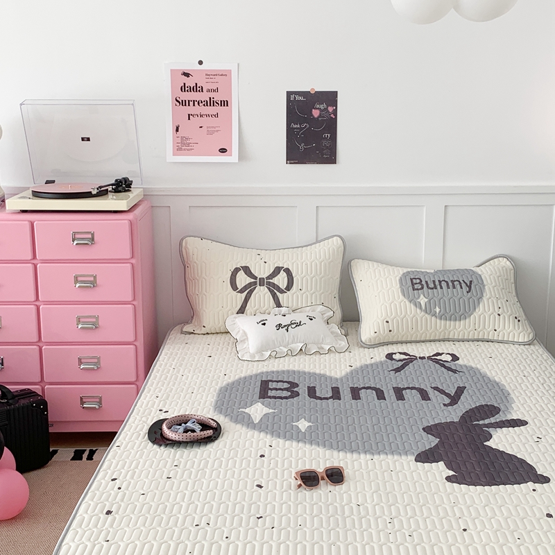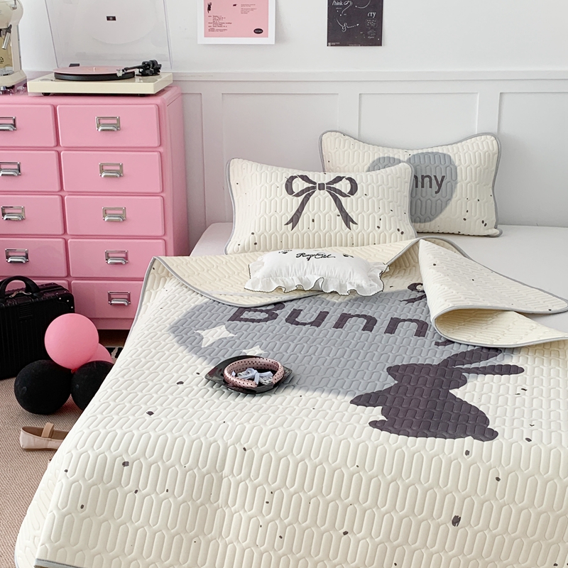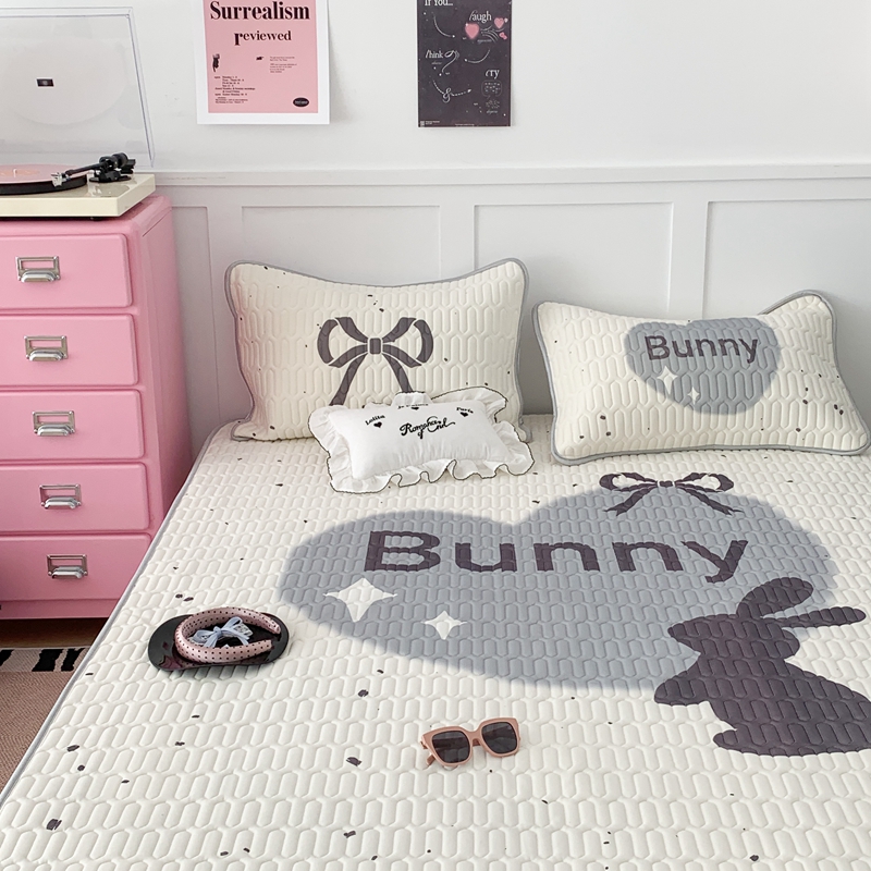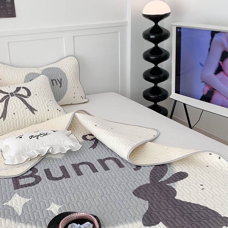 昔可家纺2023新款甜酷黑粉系列乳胶凉席 丝带黑兔