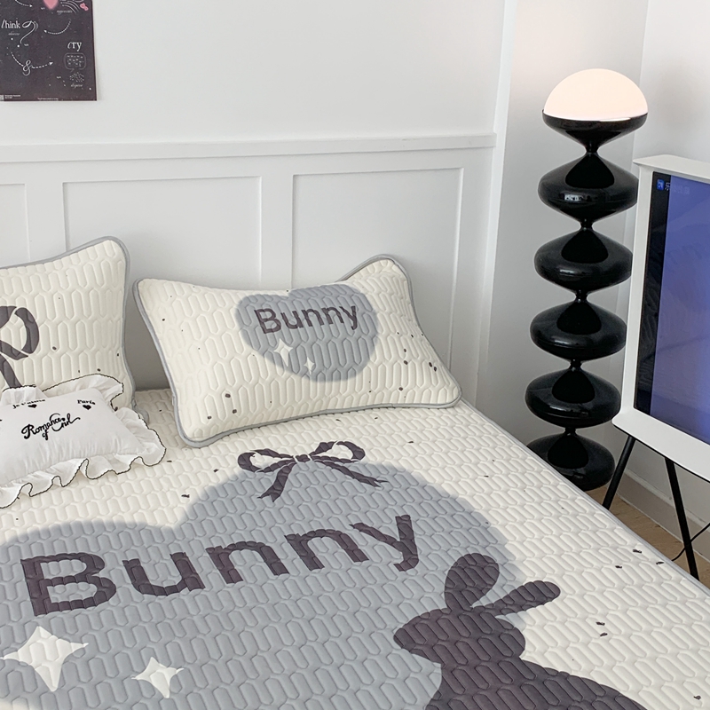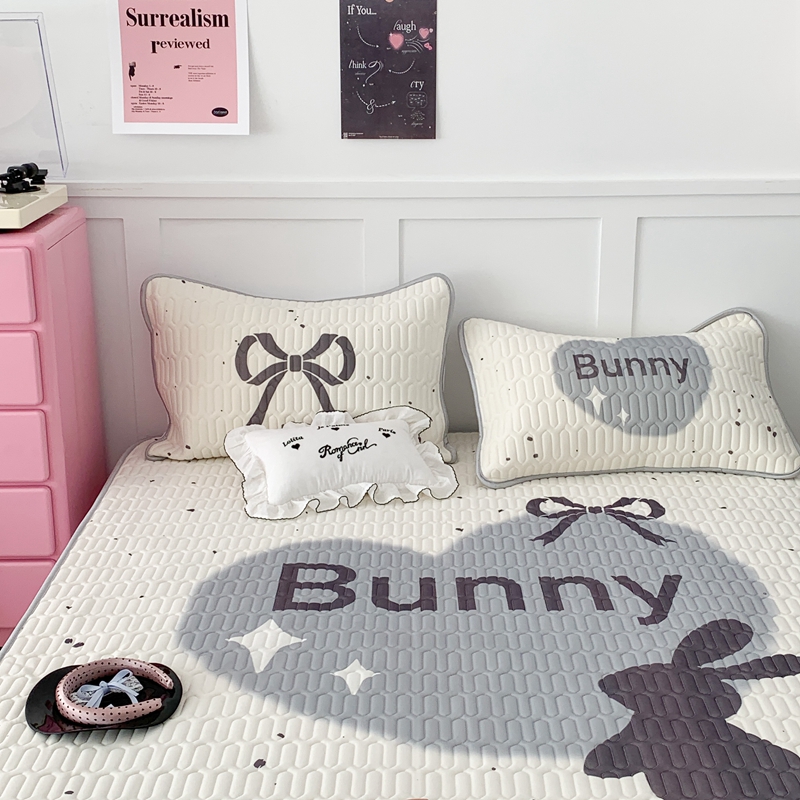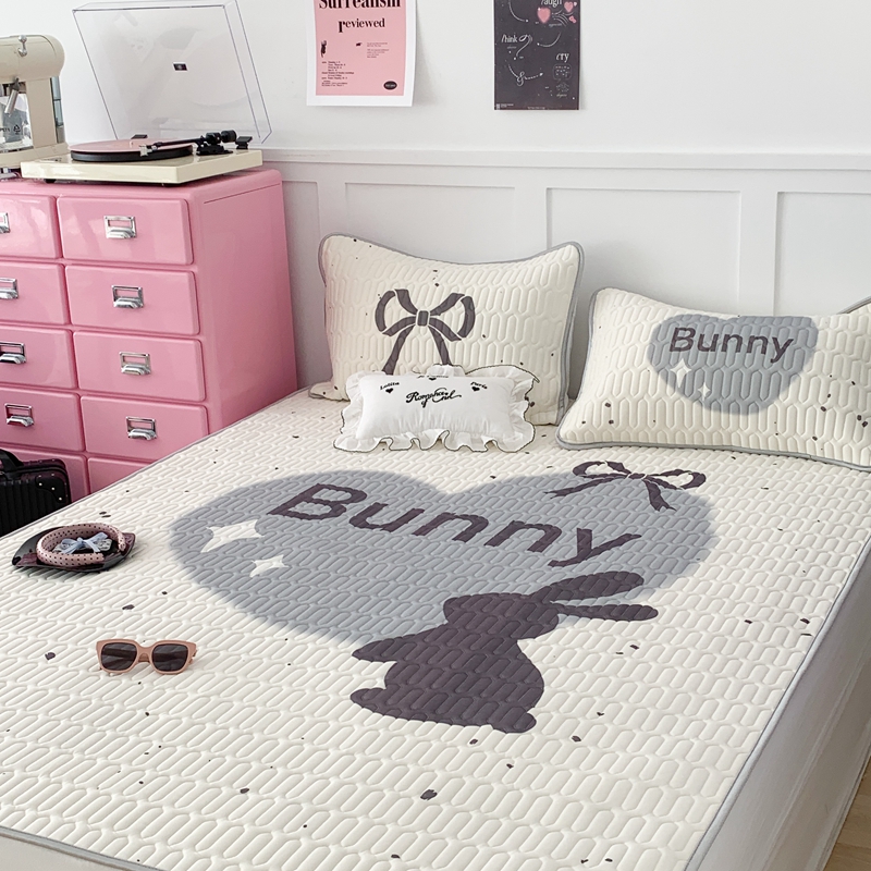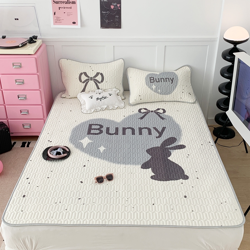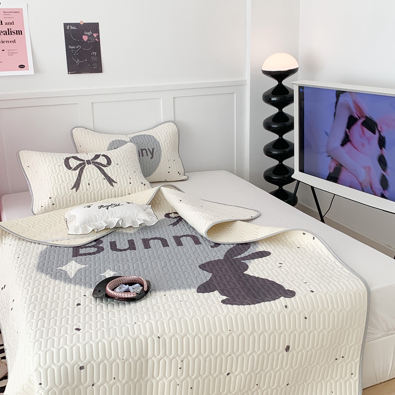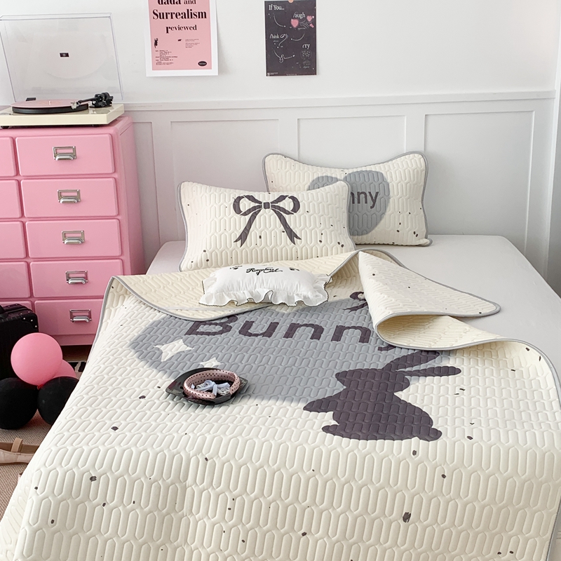 昔可家纺2023新款甜酷黑粉系列乳胶凉席 丝带黑兔