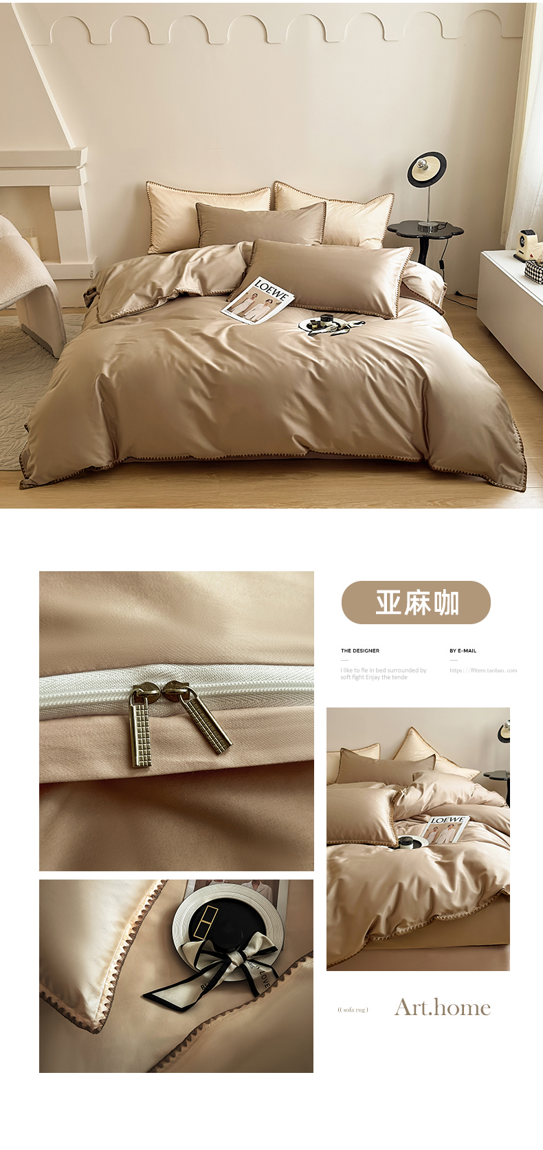 商品名称:怡家居2023新款100支长绒棉贝壳针四件套 亚麻咖