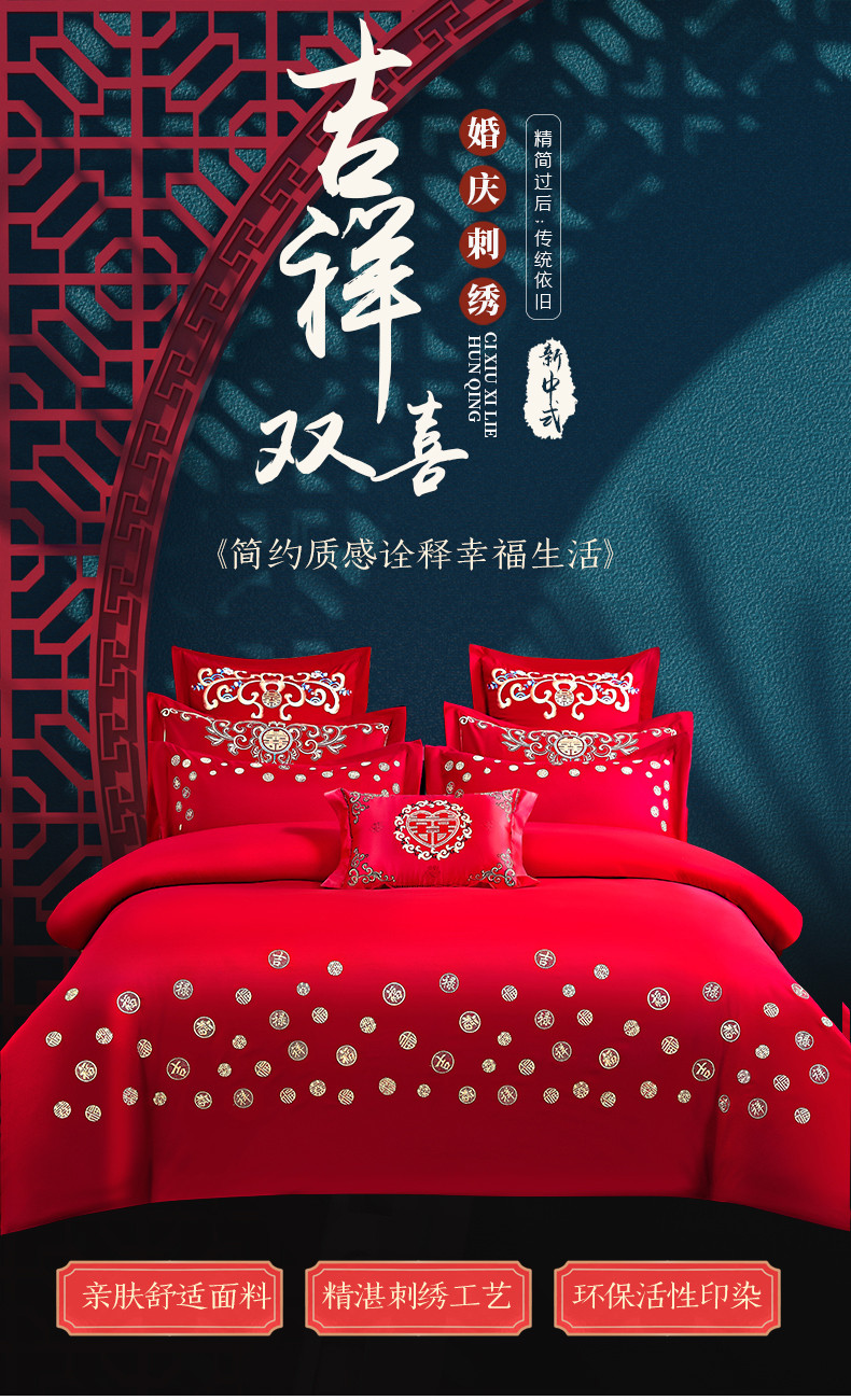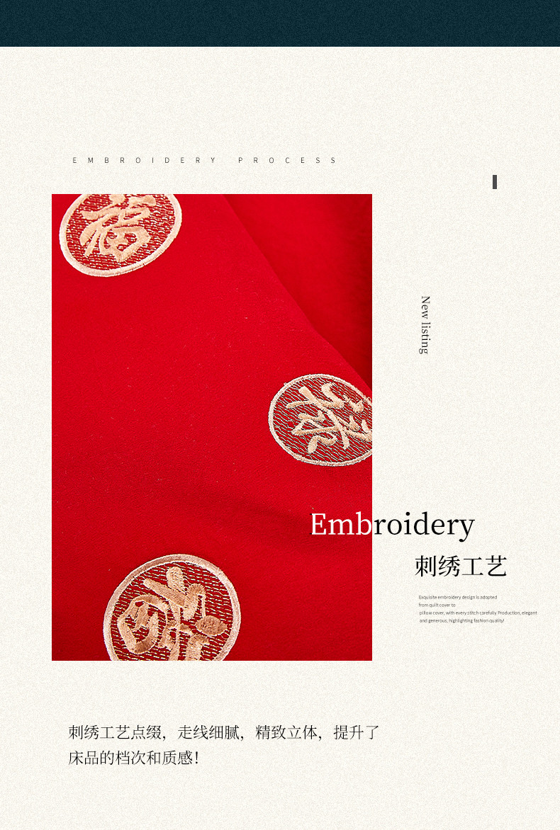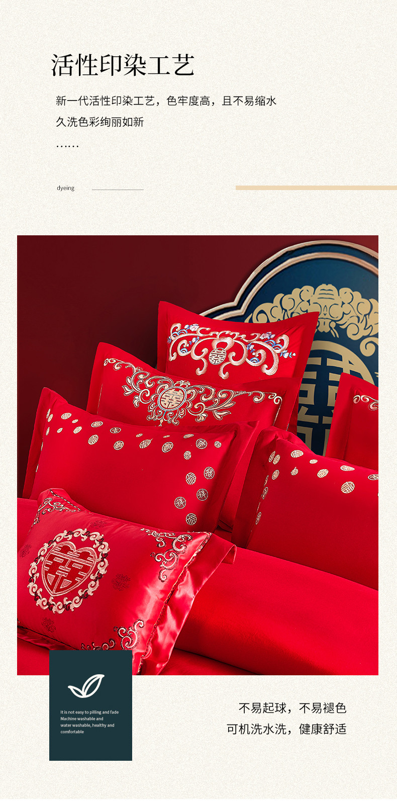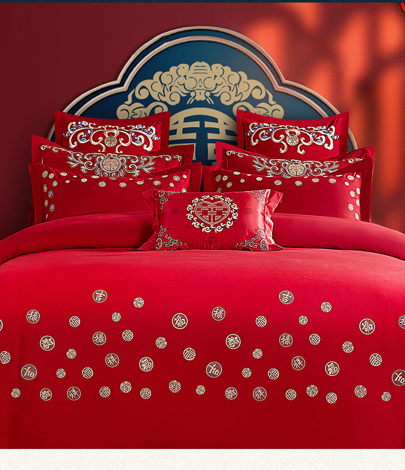 当前位置: 91家纺网 > 商品网购 > 床品套件 > 四件套 > 全棉普通四件套 > 2025新款亲肤棉绣花刺绣婚庆四件套 吉祥双喜