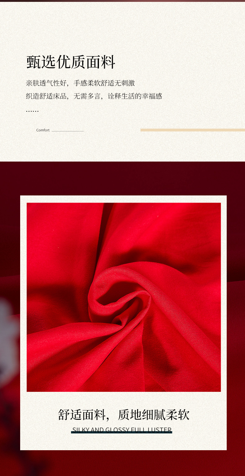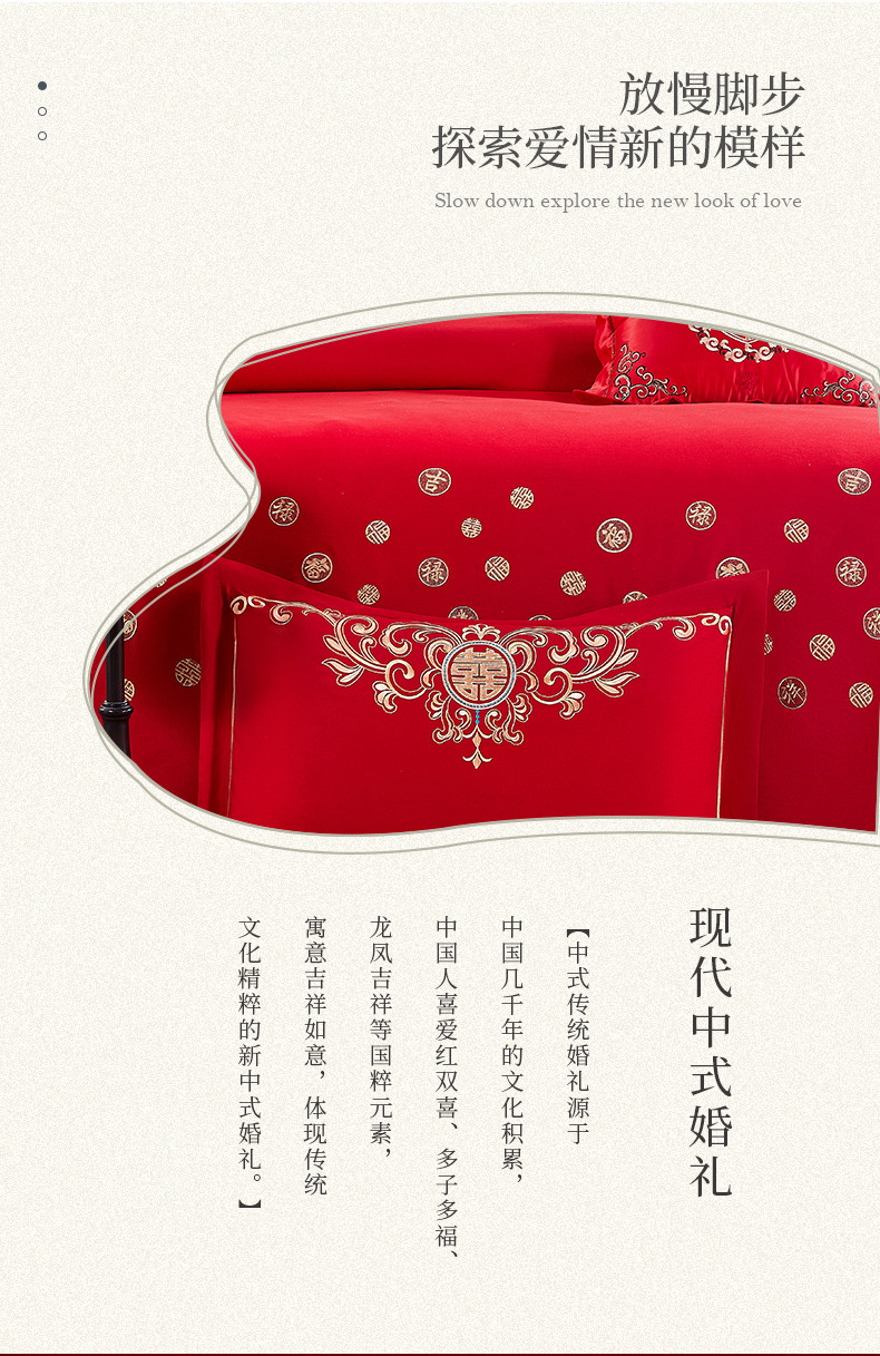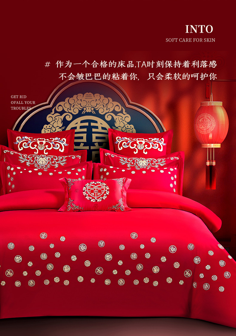 当前位置: 91家纺网 > 商品网购 > 床品套件 > 四件套 > 全棉普通四件套 > 2025新款亲肤棉绣花刺绣婚庆四件套 吉祥双喜