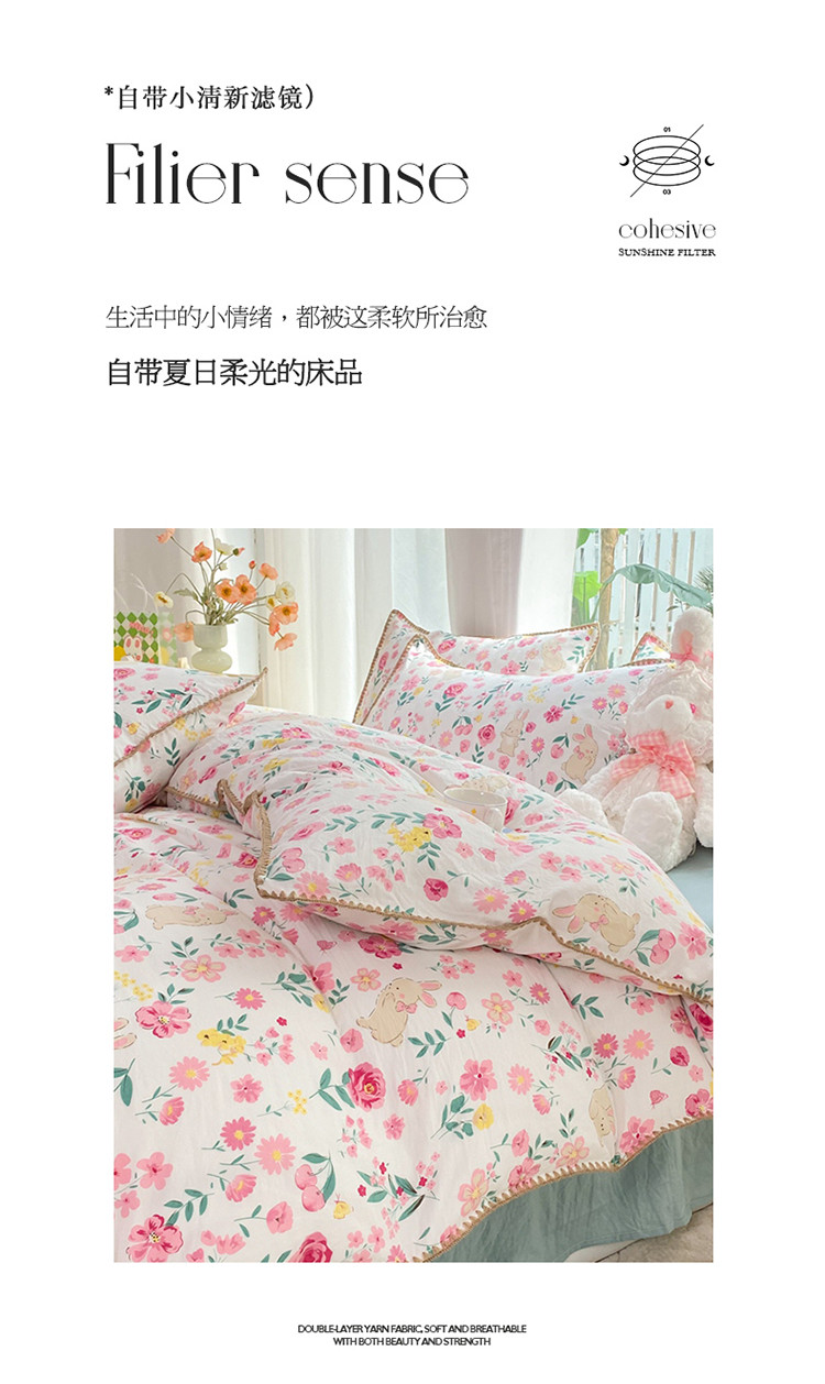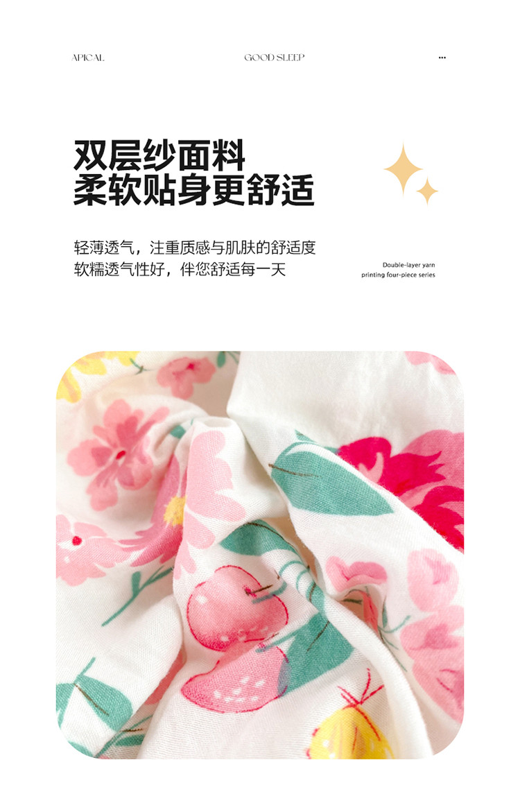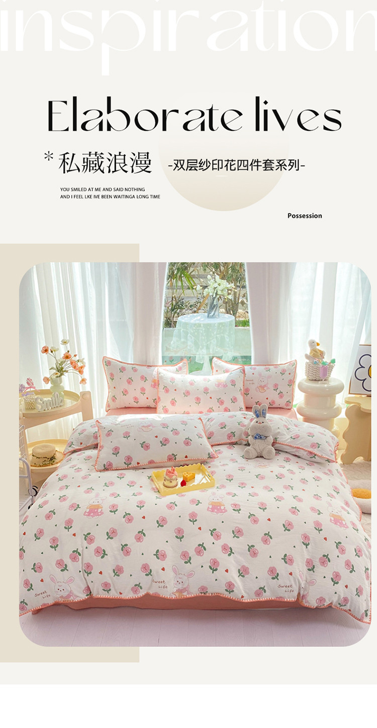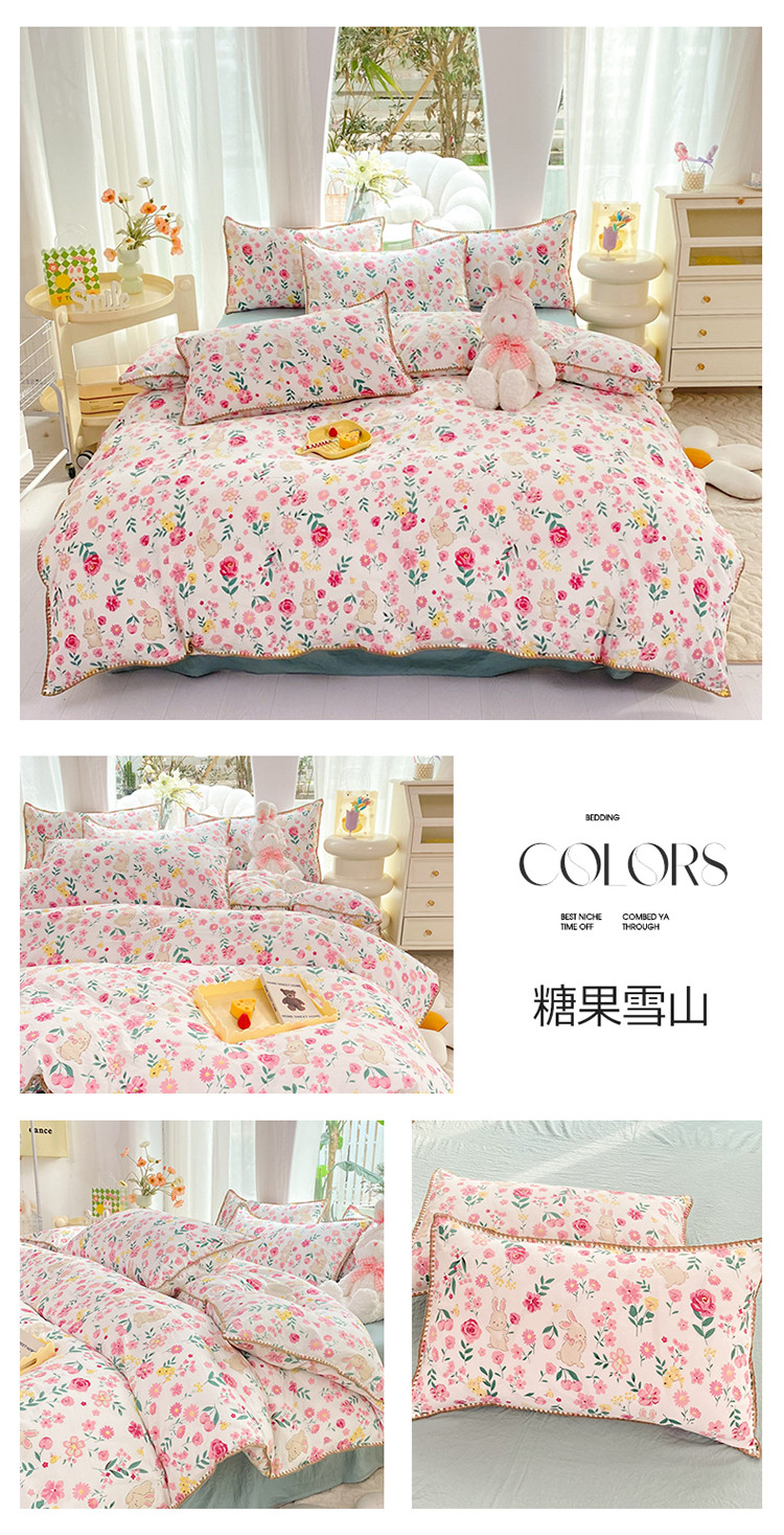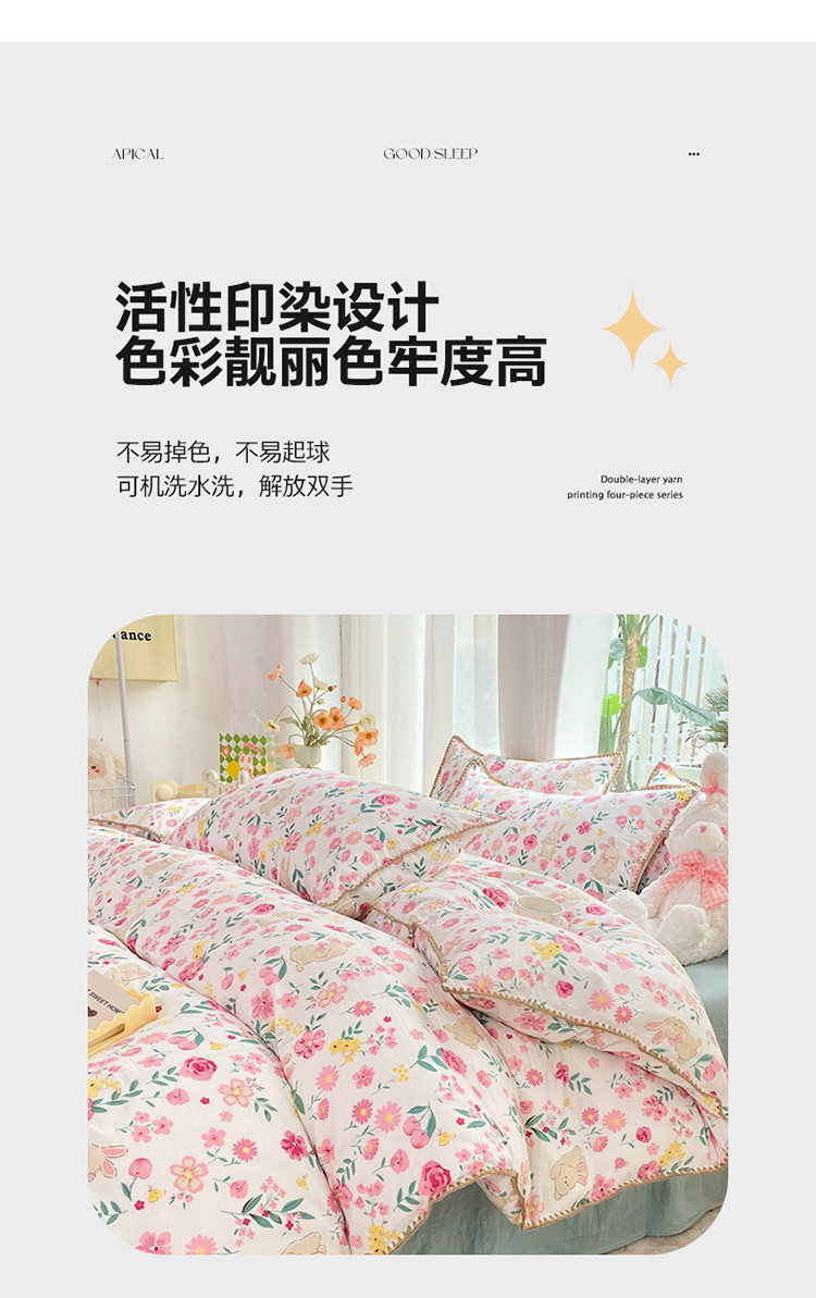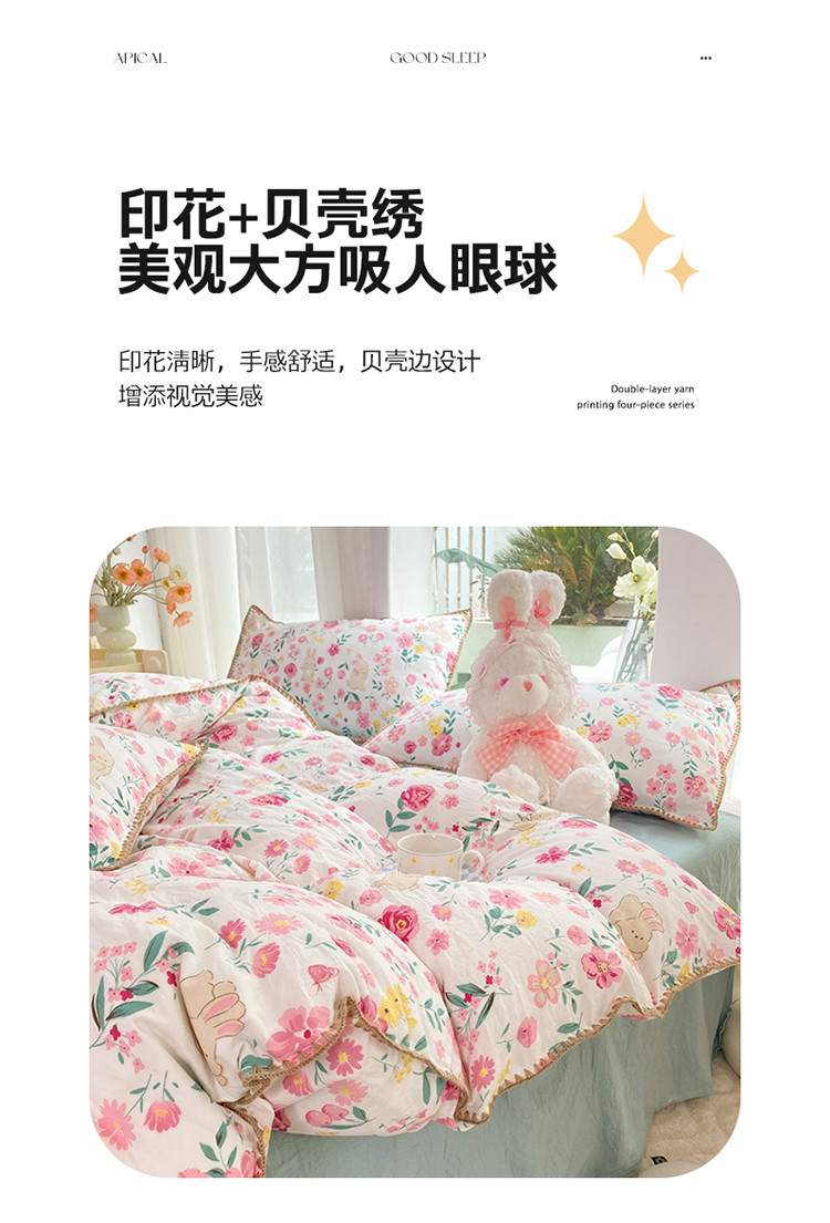 (总)秋艳家纺 2023新款直播电商爆款水洗棉麻双层纱贝壳边四件套,彩色波点,瑰丽之恋,果汁泡泡,橘色满满,萌萌奶熊,小熊不睡觉,彼得兔,草莓花藤,动物乐园,小黄鹅,莫里森记,曼塔玫瑰,莓天开心,恐龙星球,糖果雪山,西野暮色,小熊院长,樱桃萌兔