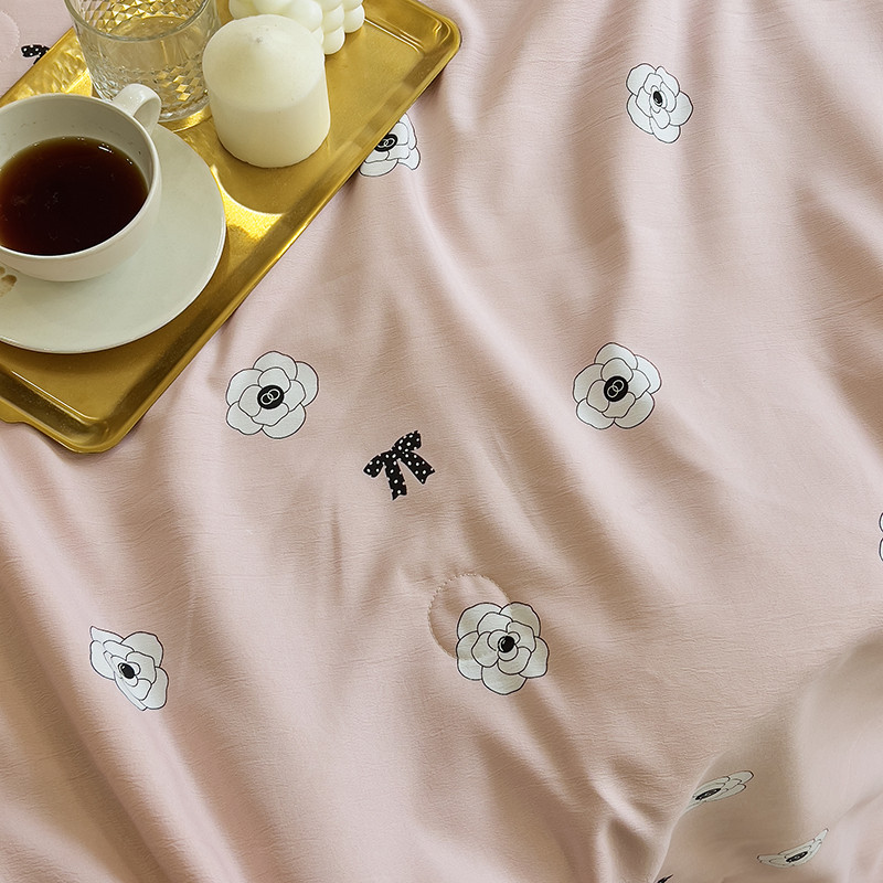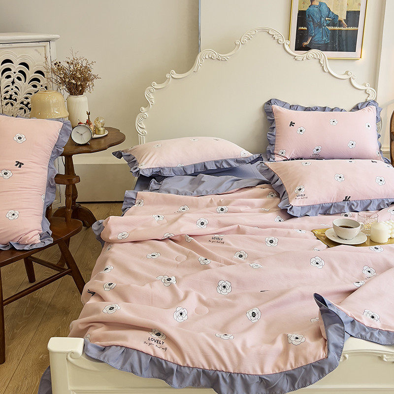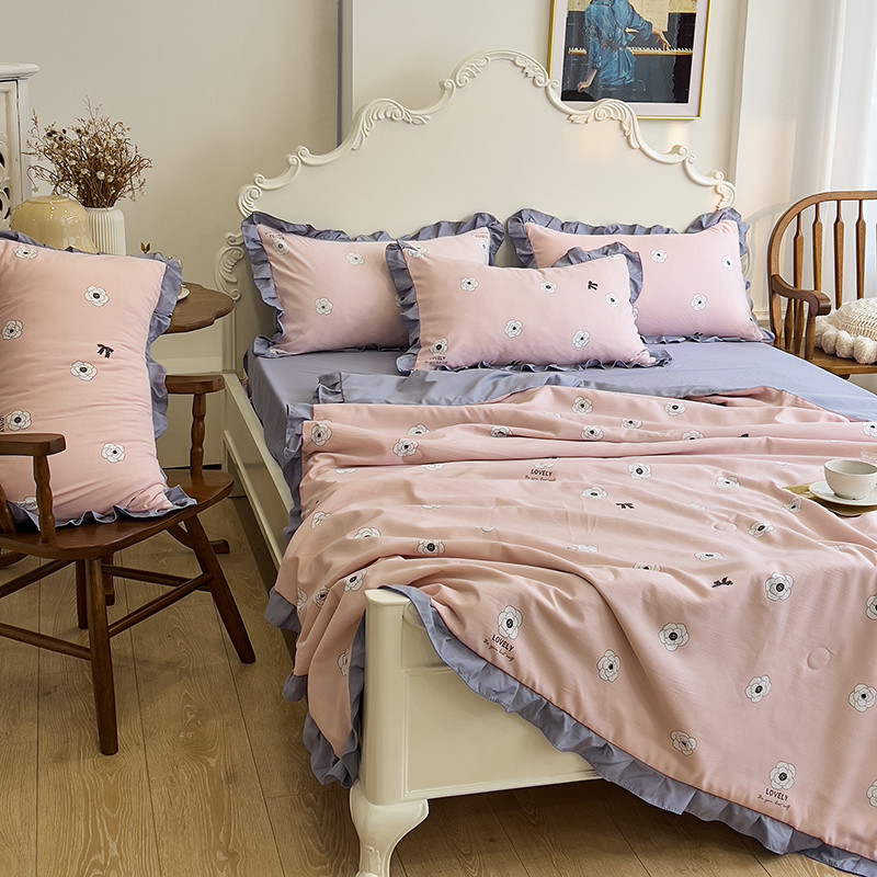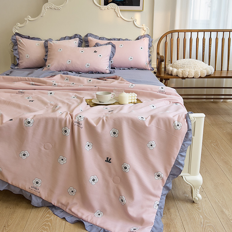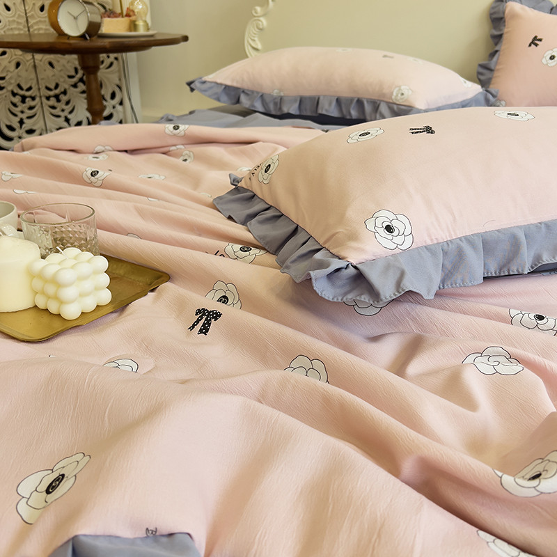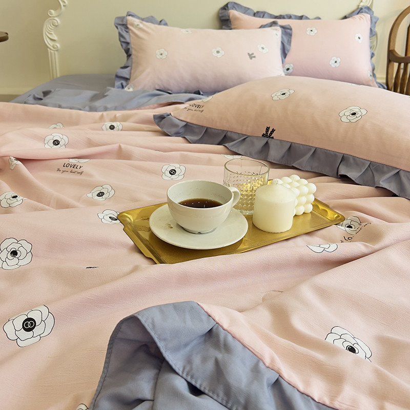 商品名称:梦莱斯 2023新款水洗棉麻印花夏被四件套 山茶花粉