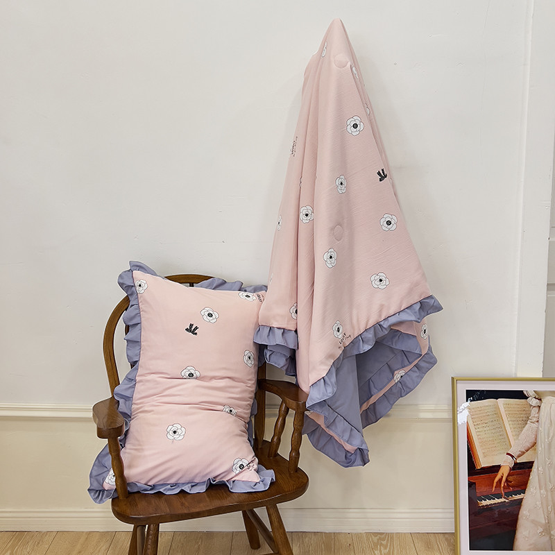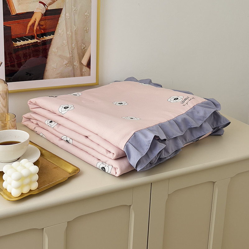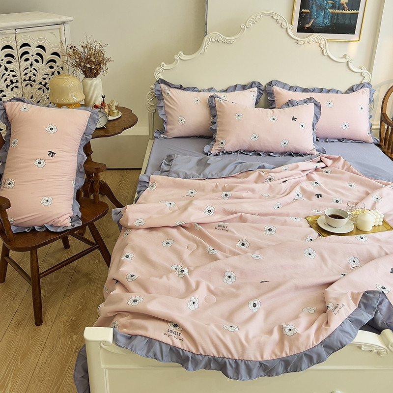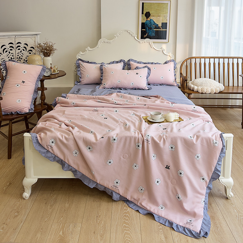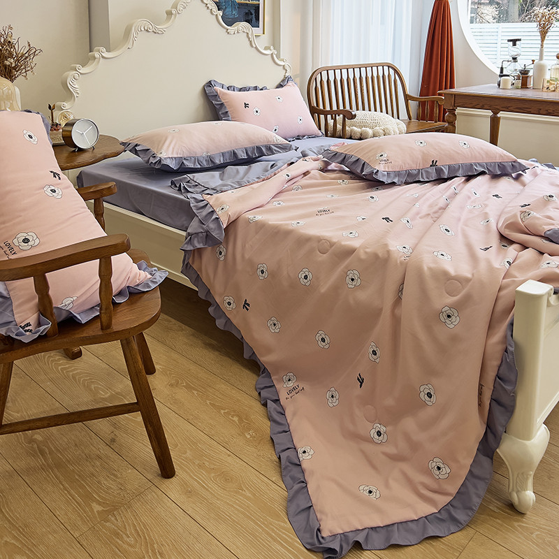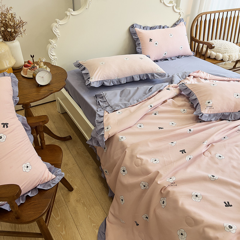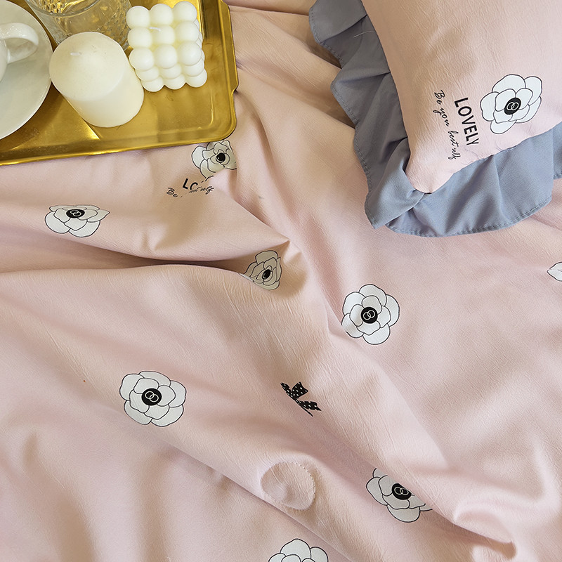 商品名称:梦莱斯 2023新款水洗棉麻印花夏被四件套 山茶花粉
