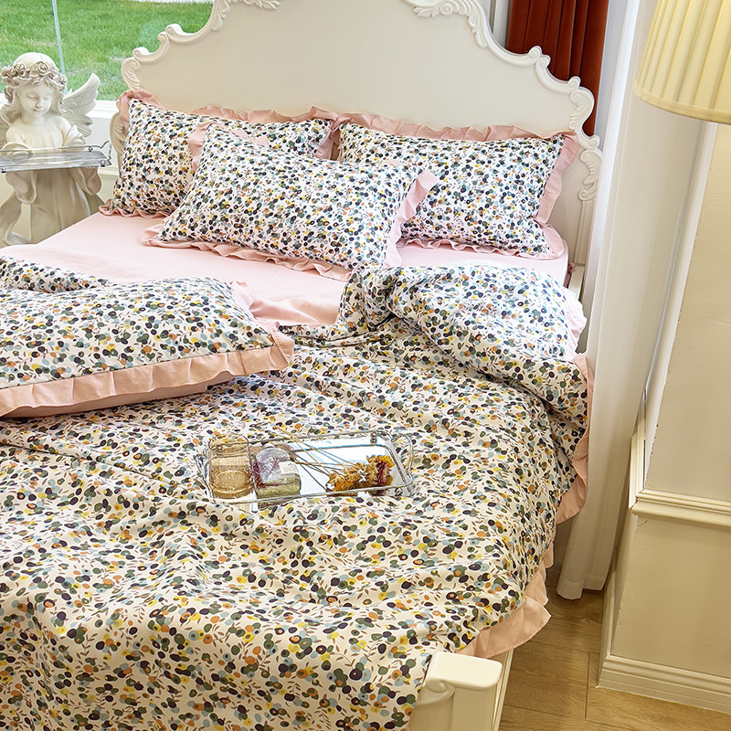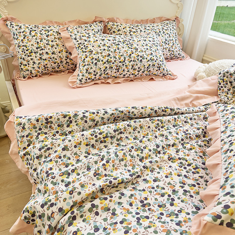 (总)梦莱斯 2025新款田园碎花纯棉花边四件套-床盖款,采薇,花精灵,花开半夏,莱茵,恋爱季,绿叶仙踪,糜花似锦,糜花熙悦,秘境花园