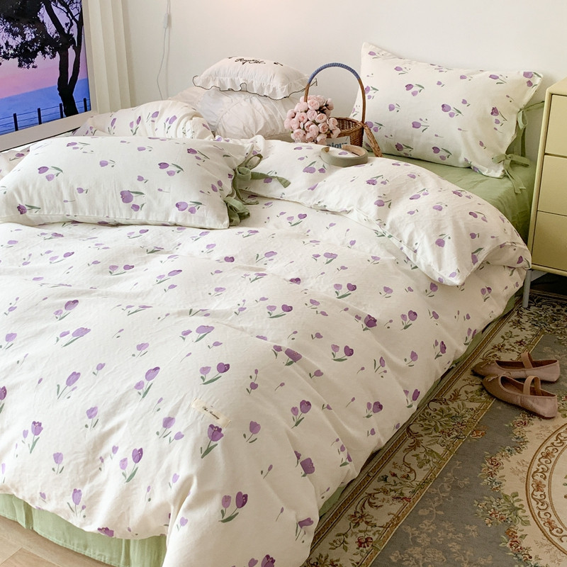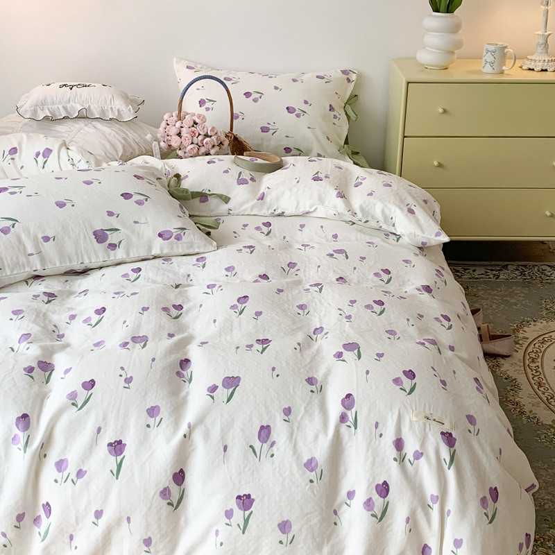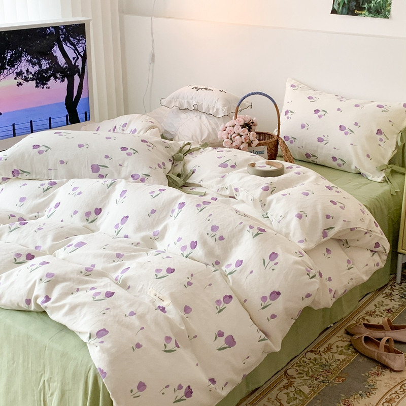 商品名称:昔可家纺 2023新款双层纱枕套带蝴蝶结四件套 浪漫紫郁金香