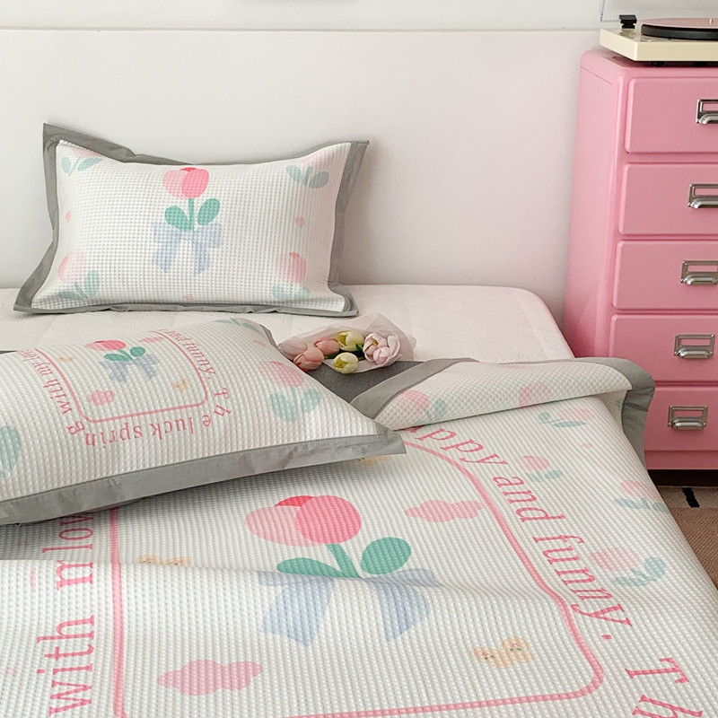 商品名称:昔可家纺 2023新款高克重加厚华夫格凉感软席 蝴蝶结郁金香