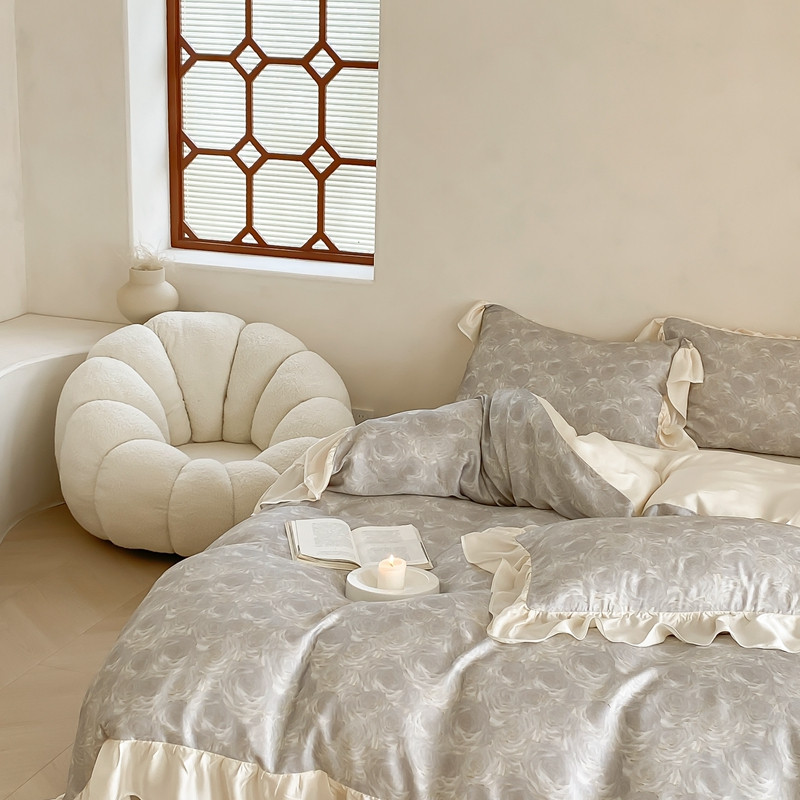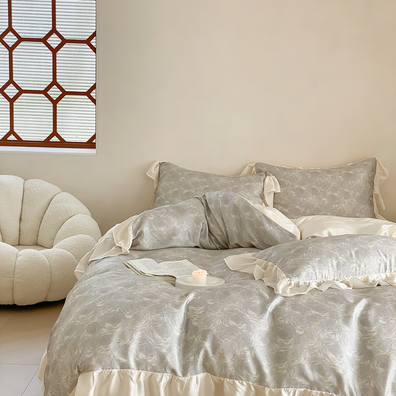 商品名称:若未家居 2023新款50S兰精天丝法式床裙款四件套-风格一 夏谧月牙灰