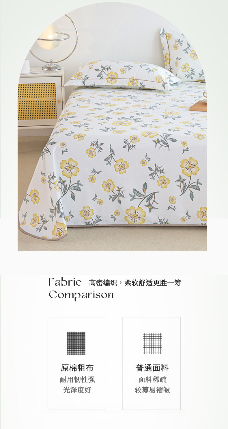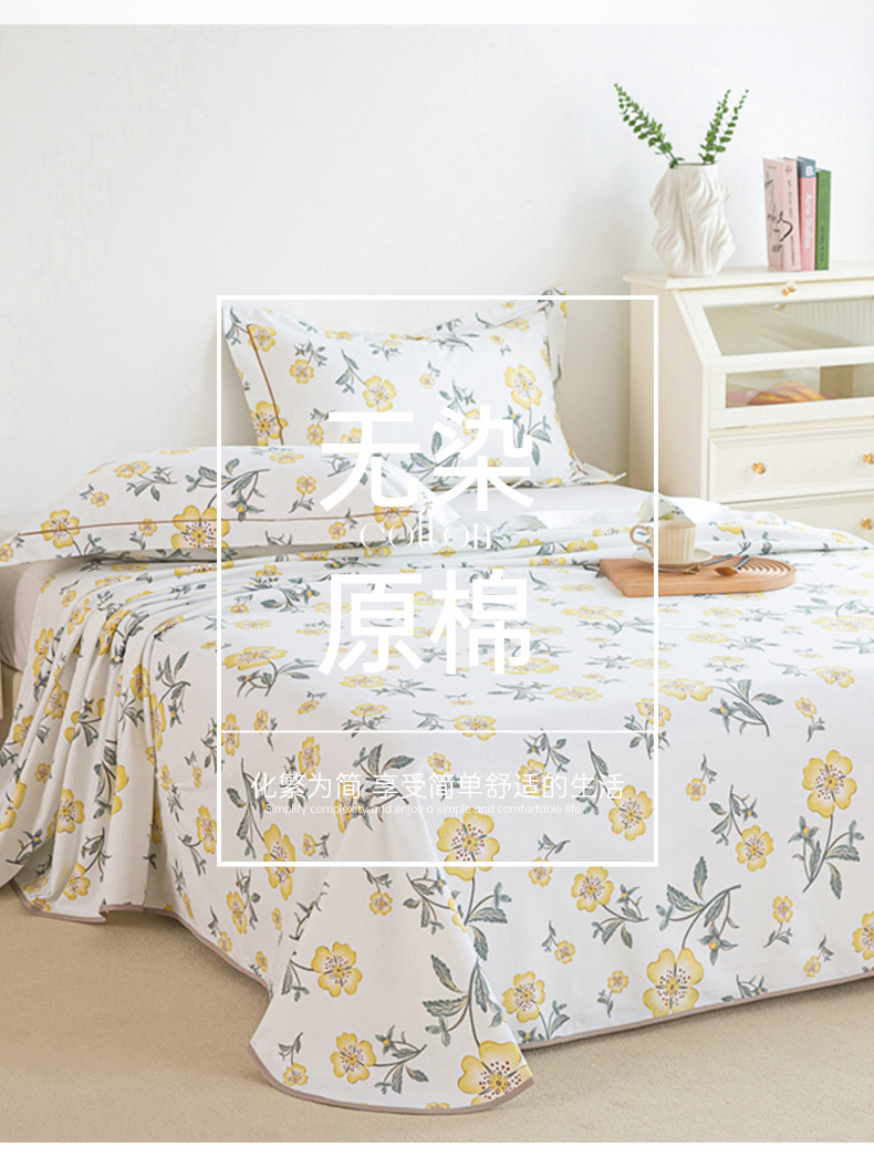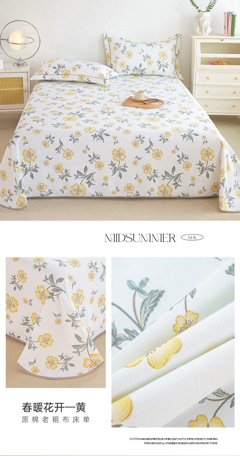 商品名称:首爱 2025新款原棉老粗布床单款三件套 春暖花开—黄