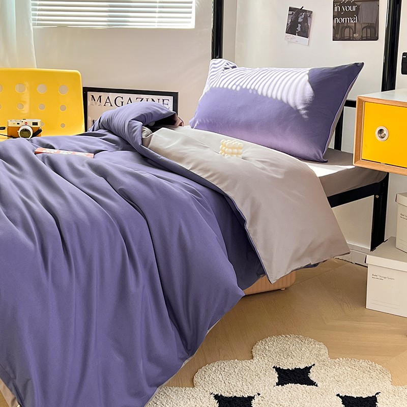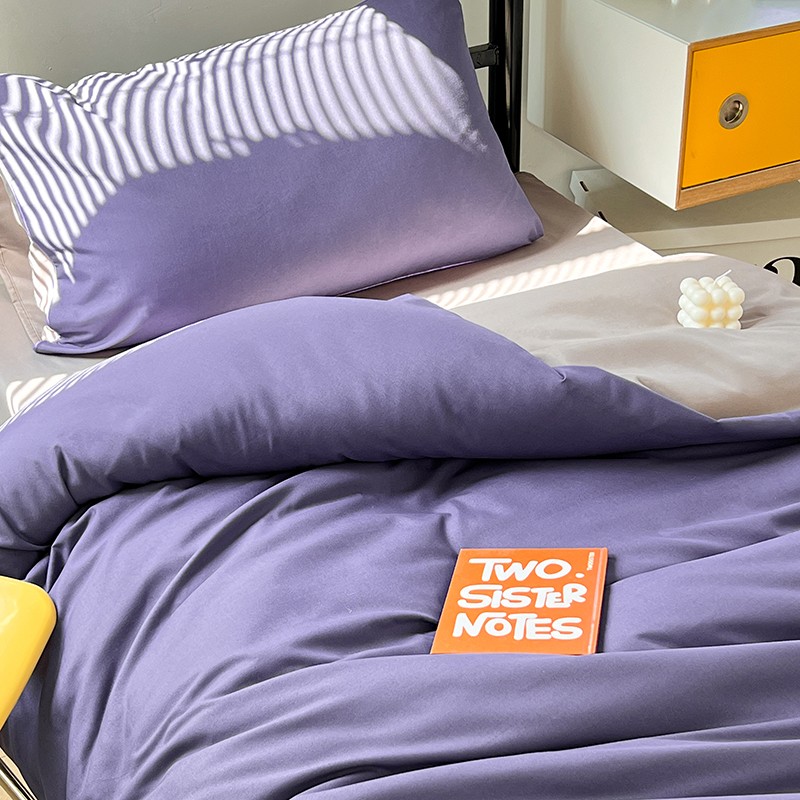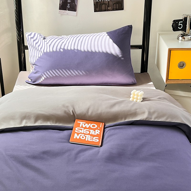当前位置: 91家纺网 > 商品网购 > 床品套件 > 四件套 > 化纤普通四件套 > 蓝淋家纺 2023新款水洗棉学生宿舍亲肤三件套四件套 烟熏紫