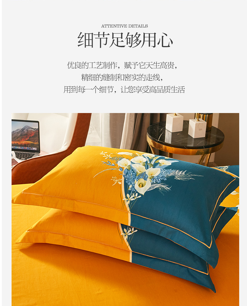 (总)雲归梦 2021新款全棉生态磨毛刺绣四件套,慕思-橙色,慕思-粉紫,慕思-灰,慕思-米黄,慕思-青绿,慕思-天蓝