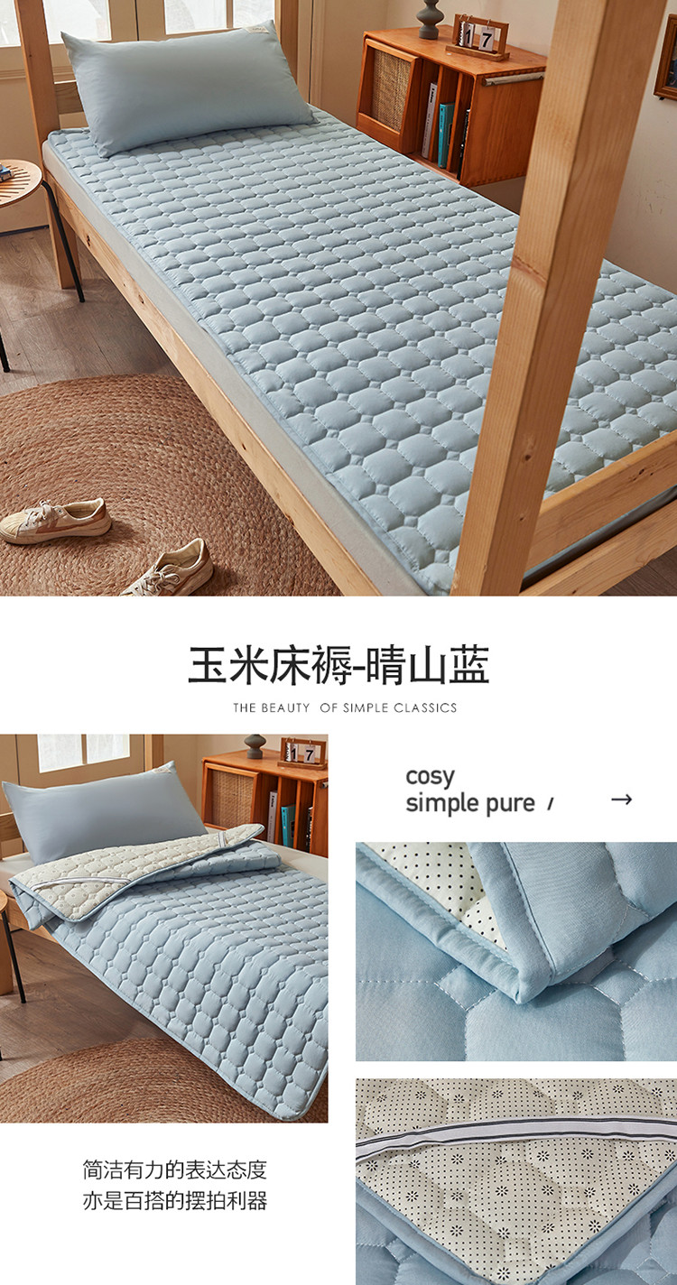商品名称:雯豆学生宿舍上下铺床护垫软垫子加厚榻榻米防滑床褥子 玉米床褥-晴山蓝