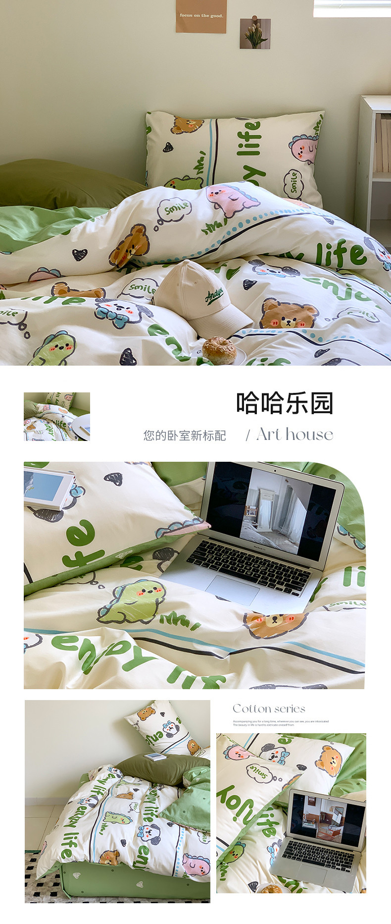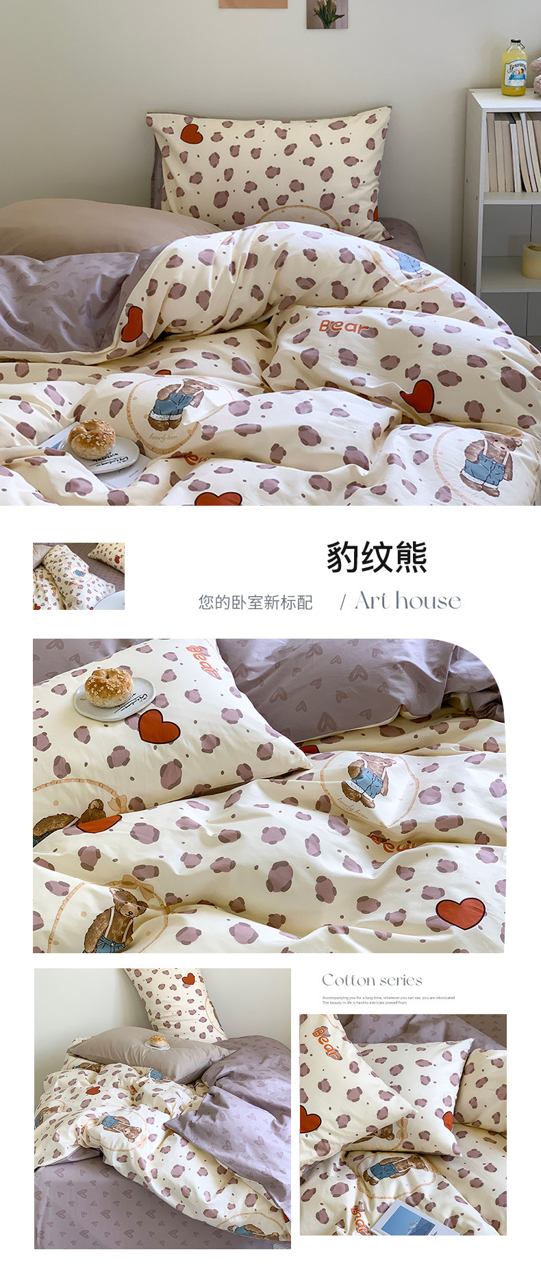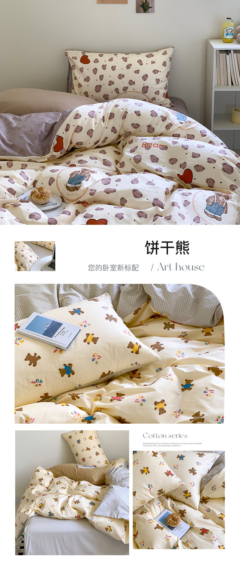 (总)桃喜 2025新款学生季全棉13070混搭系列四件套,班尼熊,薄荷汪汪,动物乐园,格子小狗,乖乖兔,哈基米,花小兔,快乐时光,萌宠乐园,苹果派,甜品软熊,完美假日,晚安猫