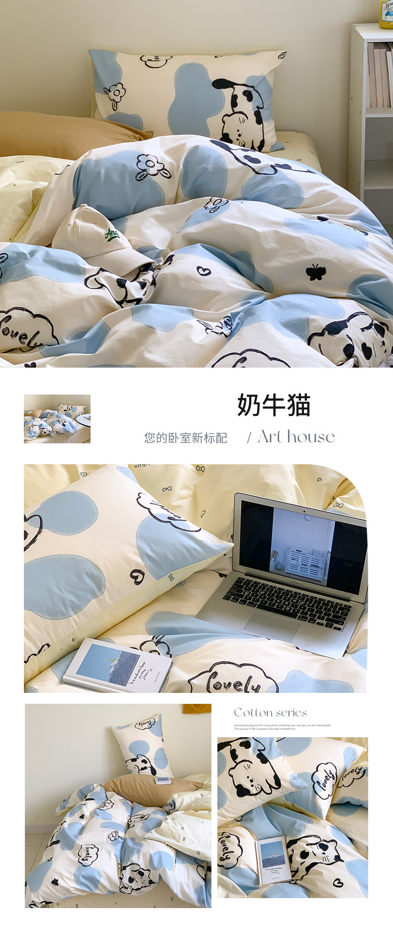 (总)桃喜 2024新款13372学生季全棉宿舍三件套,比熊小狗,波点动物园,波点西高地,狗狗家族,蝴蝶结小兔,蓝色小狗,喵星人,茉莉兔,潘多拉,晚安宝贝,小熊派对