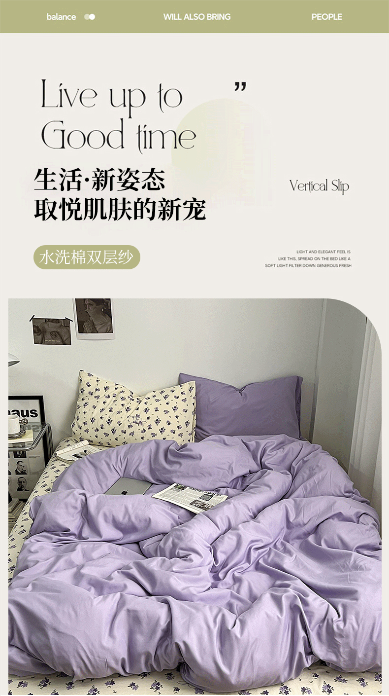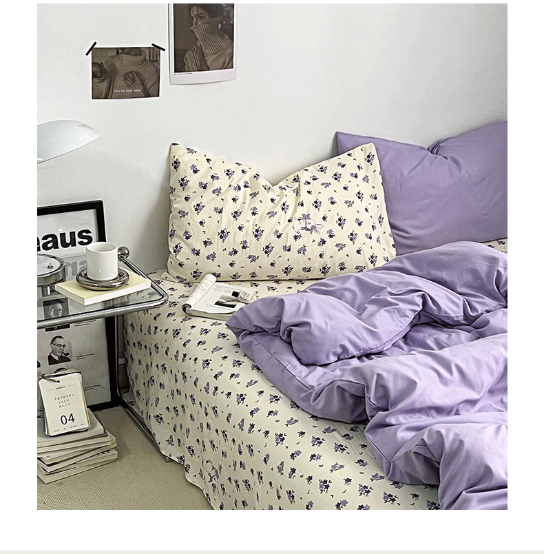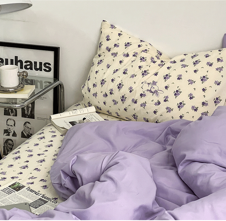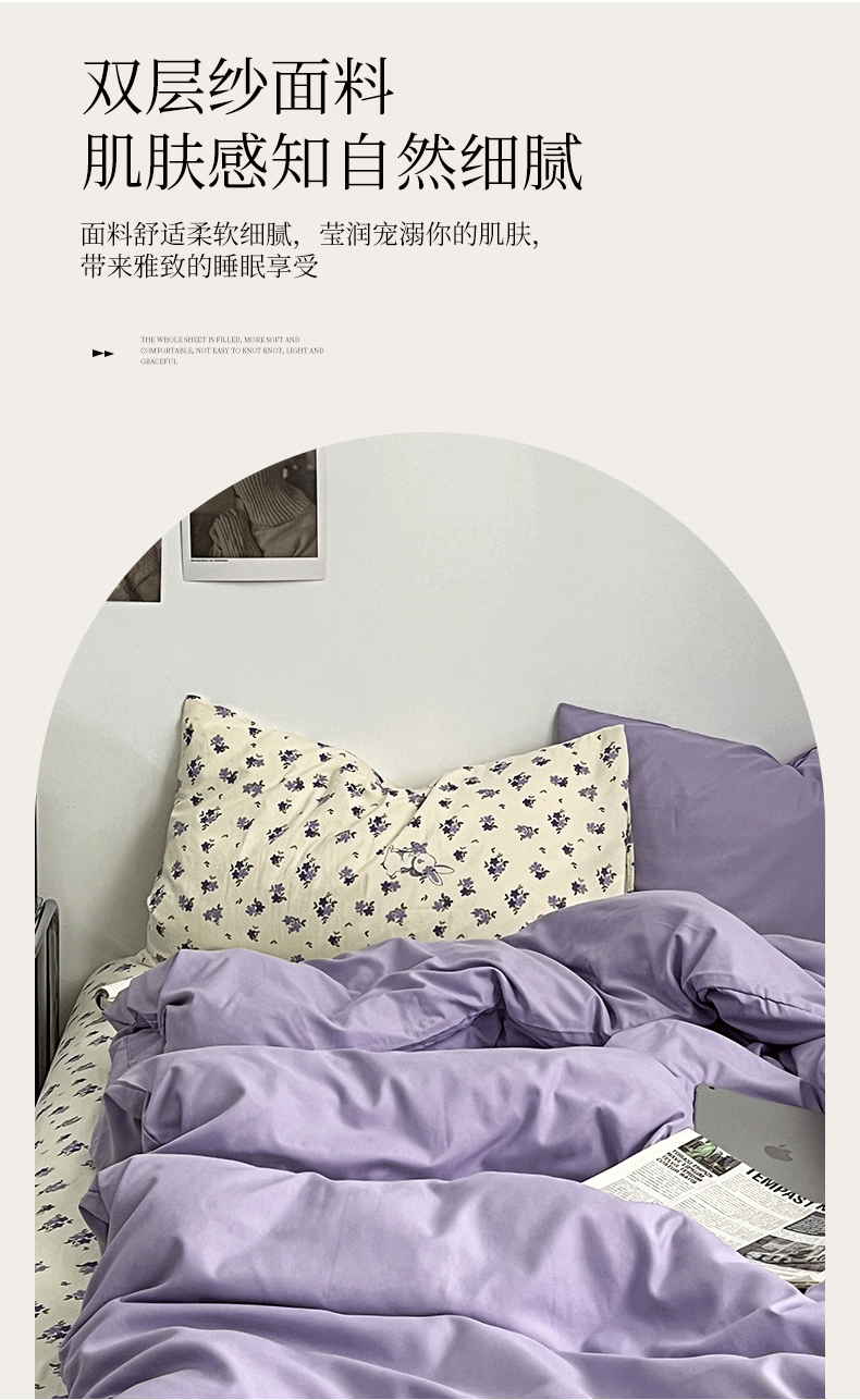 当前位置: 91家纺网 > 商品网购 > 床品套件 > 四件套 > 水洗棉四件套 > 直播热款A类水洗棉双层纱四件套纯色小碎花被套床笠三件套 浅紫+花园兔