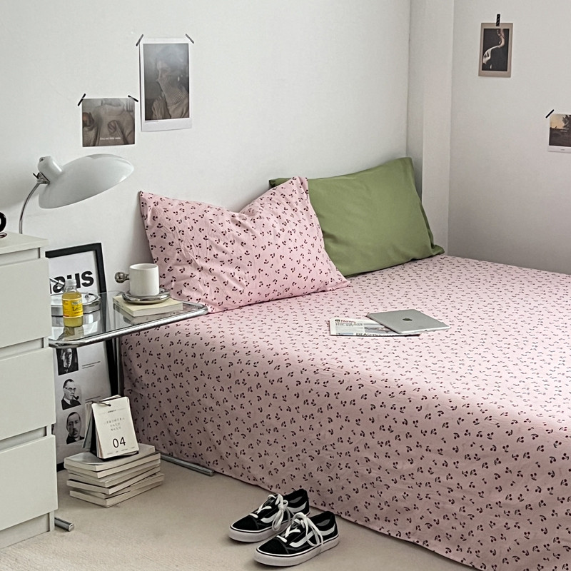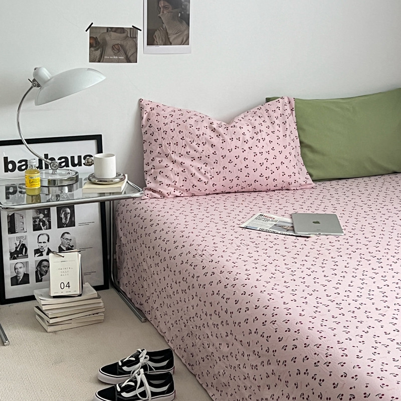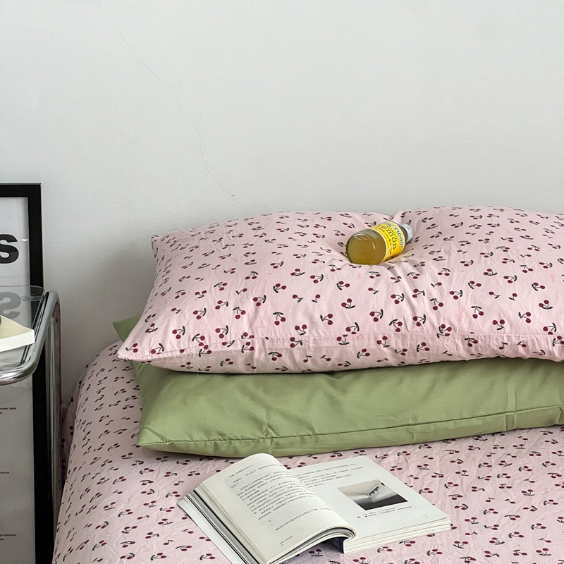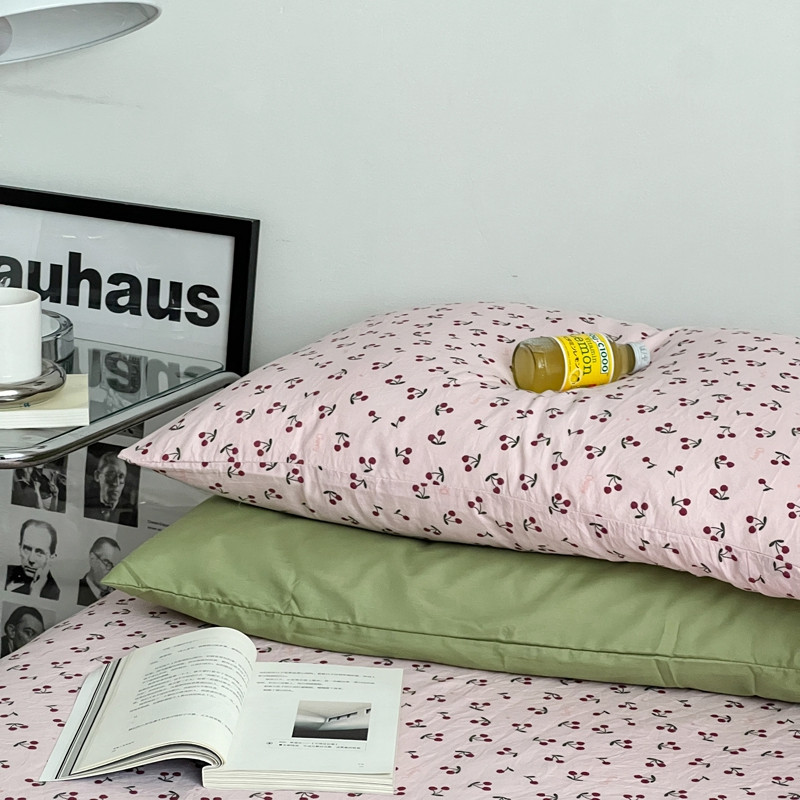 直播热款水洗棉双层纱四件套碎花简约风床单单品单件 抹茶绿+小樱桃