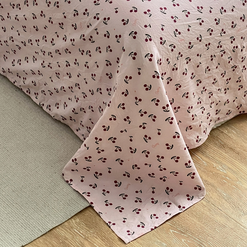 商品名称:直播热款水洗棉双层纱四件套碎花简约风床单单品单件 抹茶绿+小樱桃