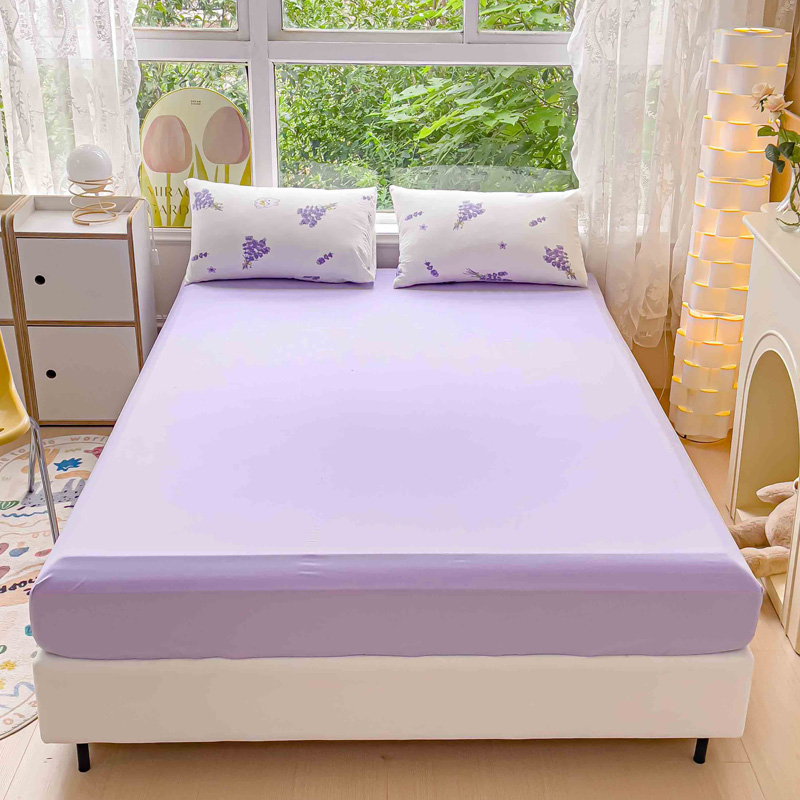 优选良品 2025新款韩版轻奢皱皱纱水洗棉拼色床单床笠四件套三件套-芋泥紫,芋泥紫