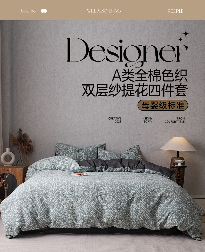 当前位置: 91家纺网 > 商品网购 > 床品套件 > 四件套 > 水洗棉四件套 > (总)安莱生活 2023新款水洗棉双层纱四件套-弥香