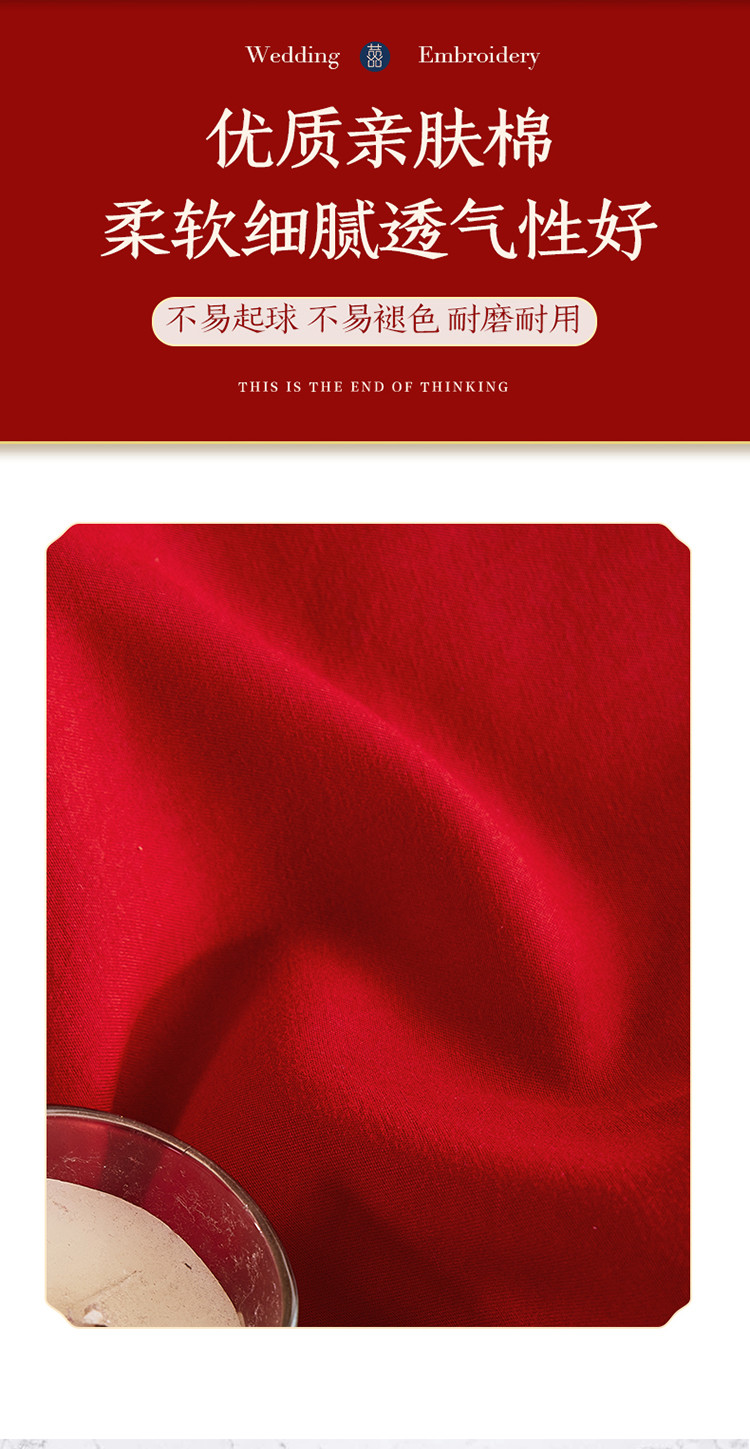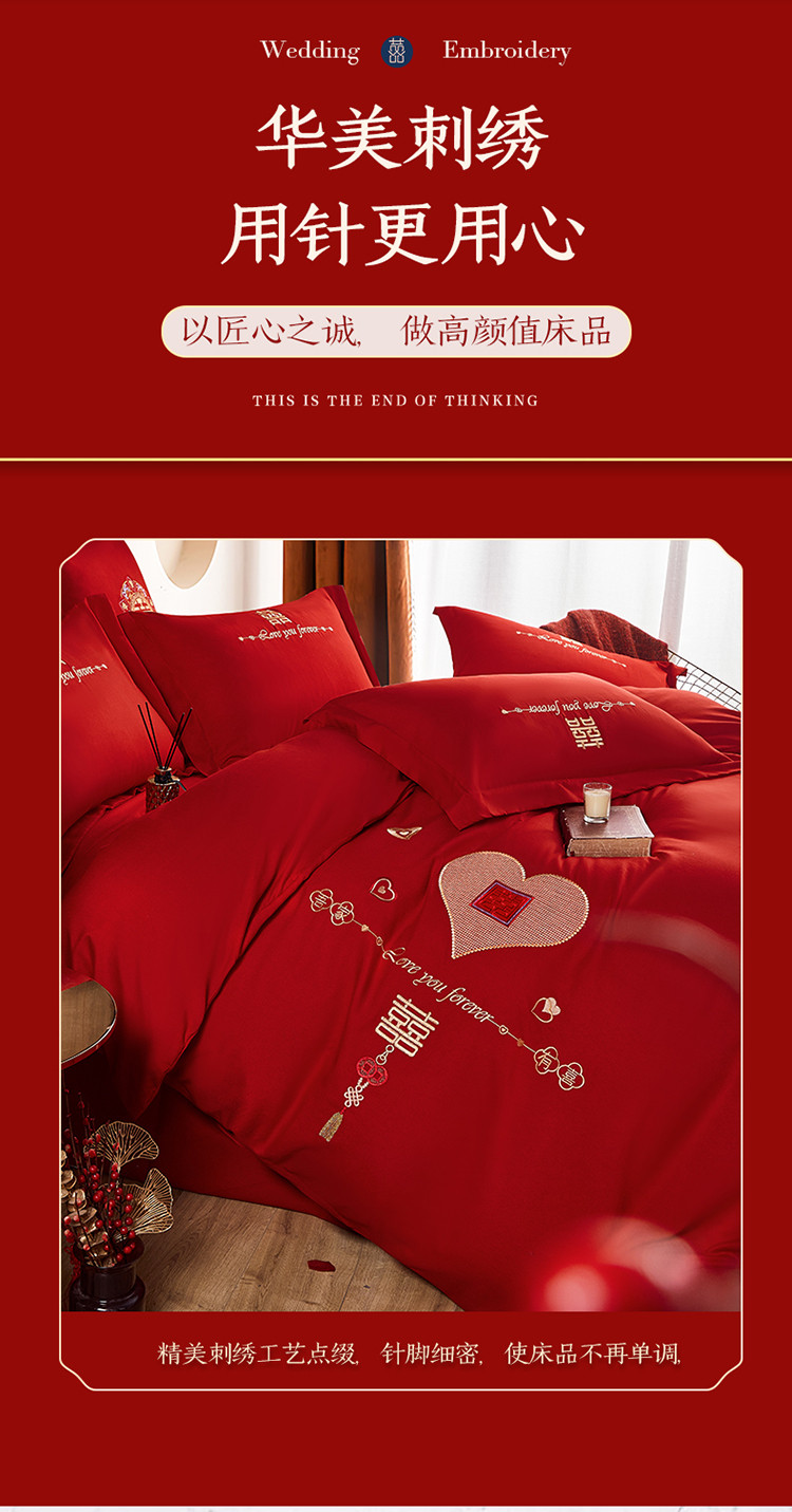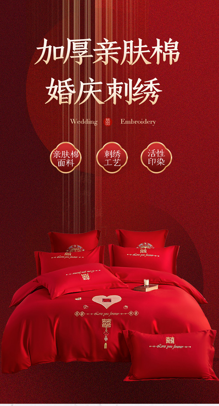 当前位置: 91家纺网 > 商品网购 > 床品套件 > 四件套 > 婚庆四件套 > 玉雅家纺 2025新款亲肤刺绣婚庆四件套 唯一