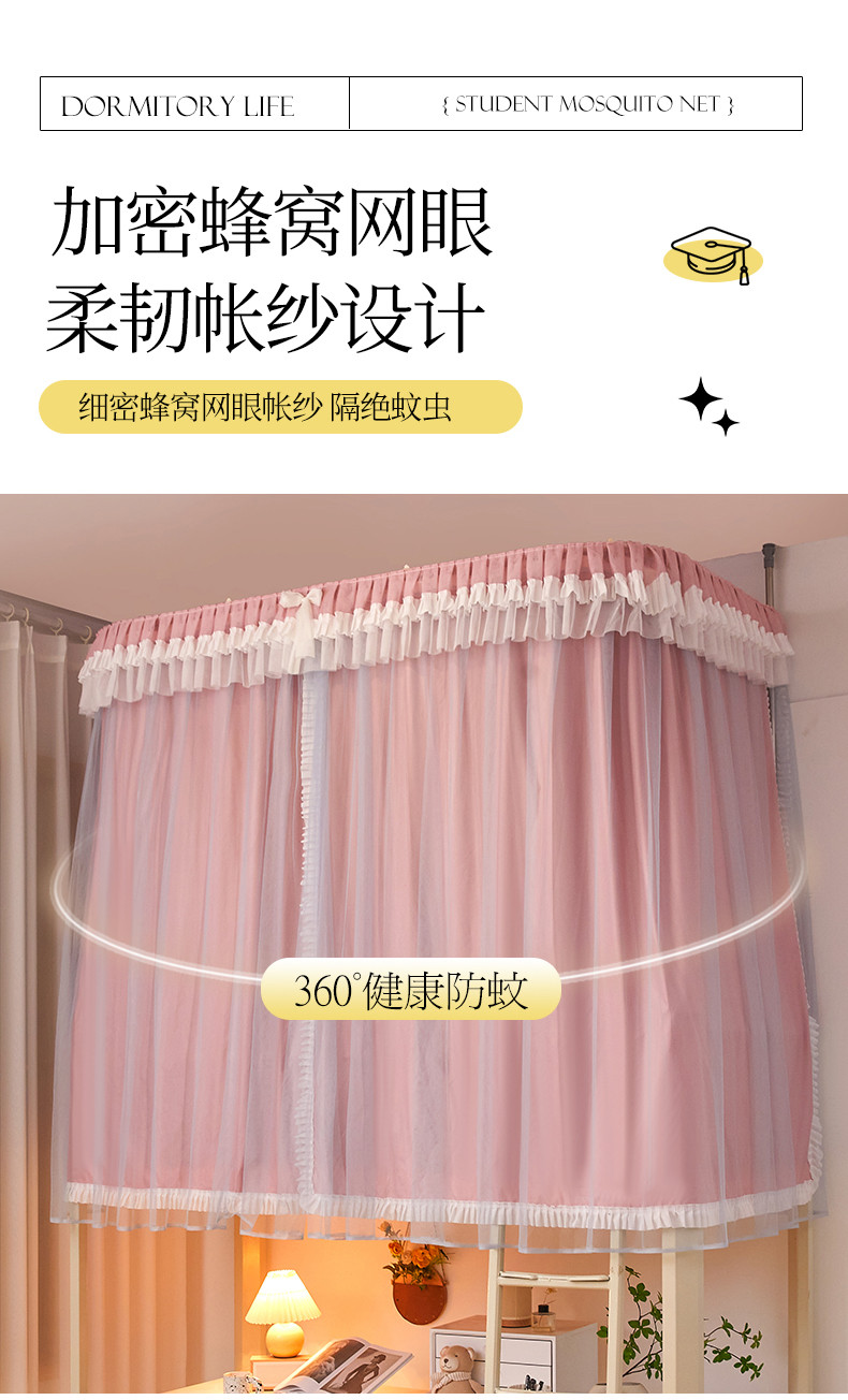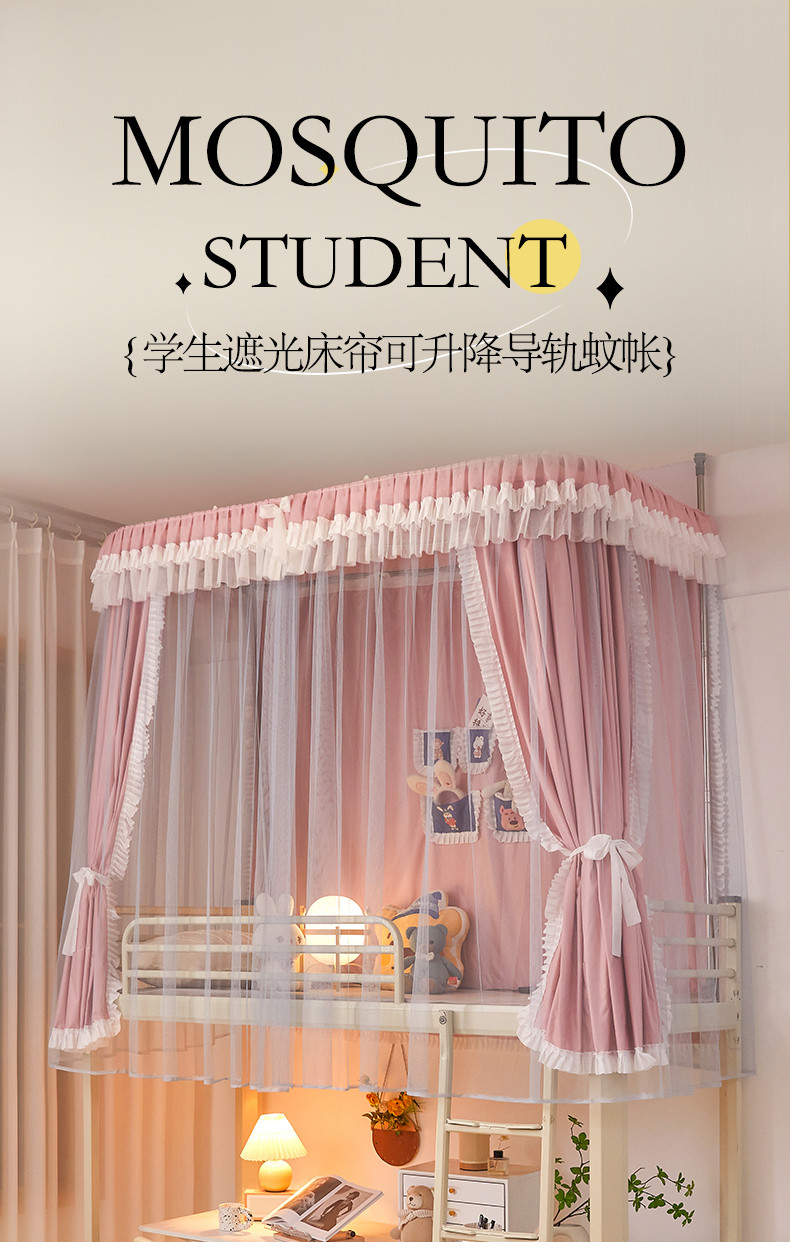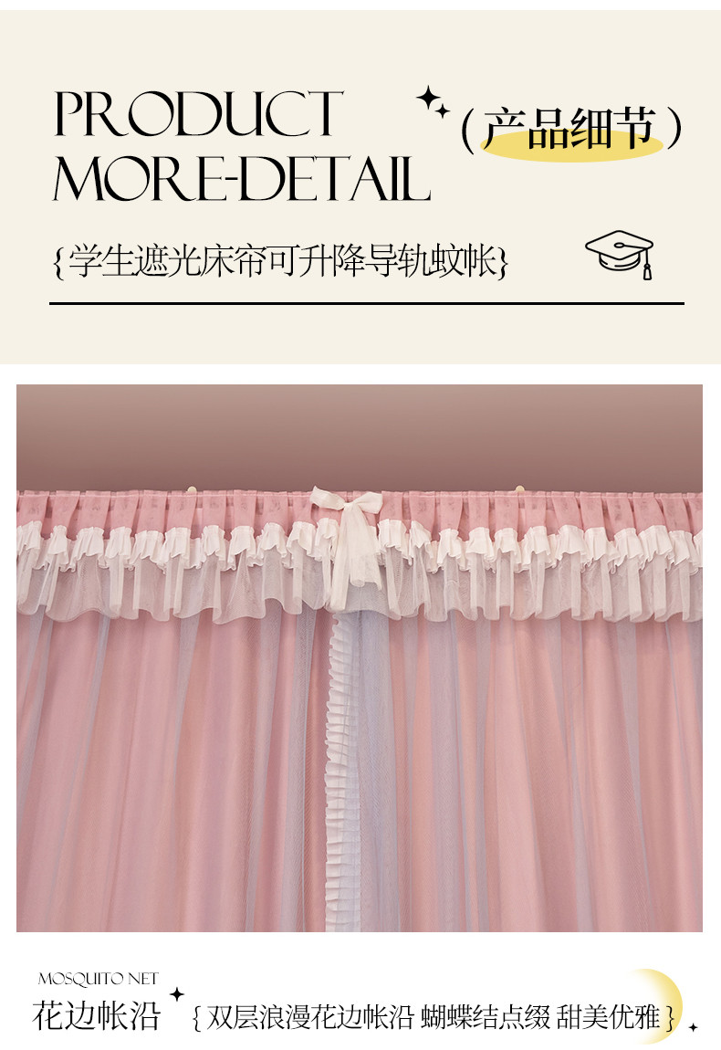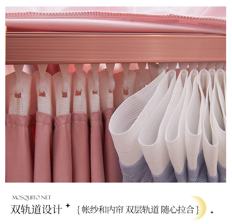 商品名称:迪凡保罗 2025新款2323天地杆铝合金导轨涂银强遮光学生蚊帐 樱花粉